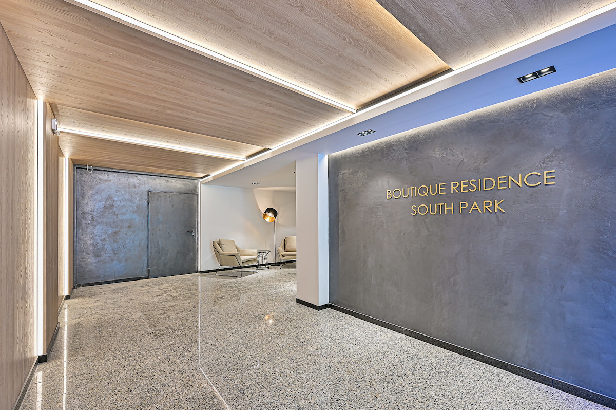 “Boutique Residence - Южен парк” е първата сграда от новата серия проекти на ТАСКОВ & СТОЯНОВ, позиционирани в най-високия сегмент на жилищното строителство. В строителството са вложени материали и технологии от най-висок клас, в т.ч. тухли Wienerberger, окачена фасада HPL, алуминиева дограма с троен стъклопакет, общи части с полиран гранит, луксозен асансьор KONE и други модерни решения от световно известни производители.