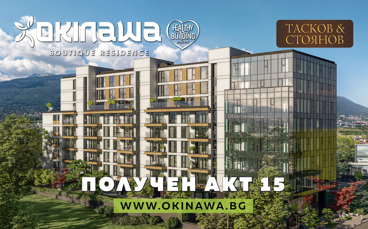 Първата Healthy Building сграда в България вече притежава АКТ 15! OKINAWA Boutique Residence от строително-инвестиционната компания ТАСКОВ & СТОЯНОВ се очаква да бъде завършена през април 2025!