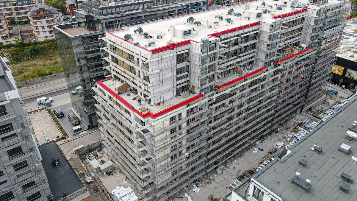 • Продължаваме с фасадното остъкляване на офисната секция на сградата;