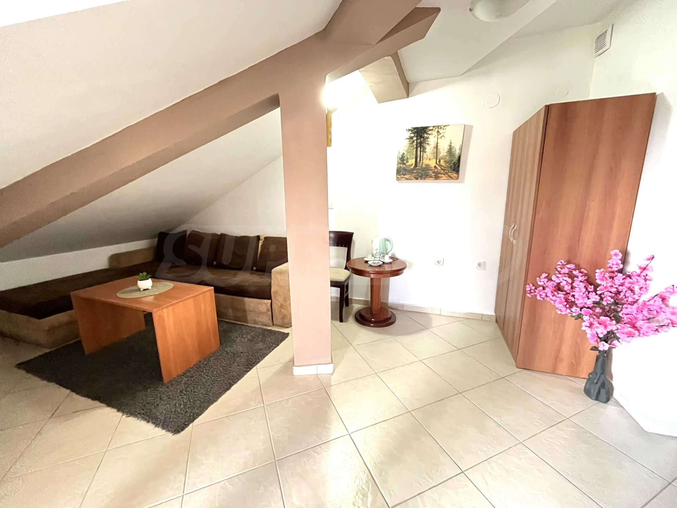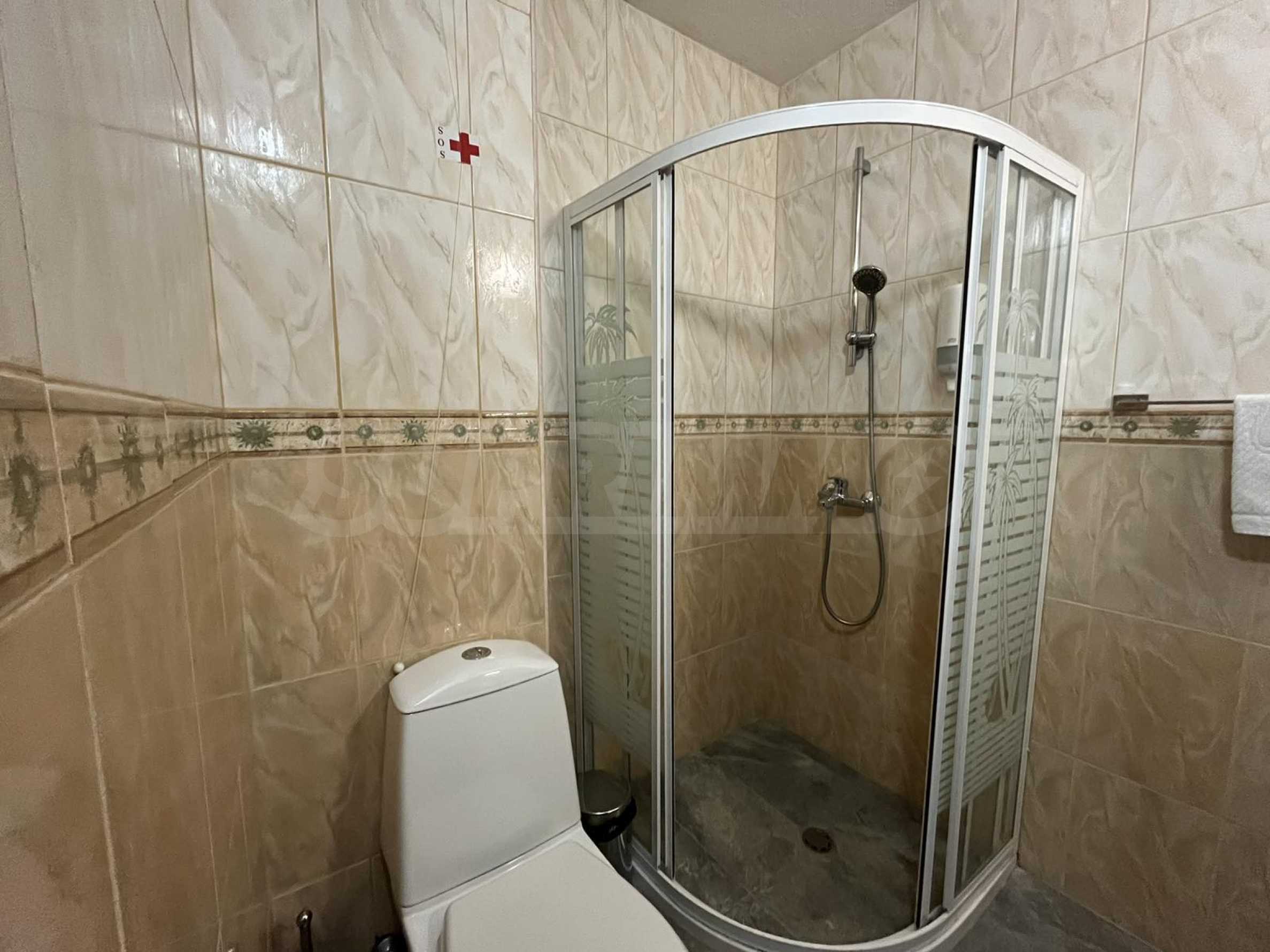 Апартаментът за продажба е 56.53 кв.м. и се състои от дневна с единично легло, една голяма спалня, баня с душ кабина и тоалетна, както и тераса със северно изложение.