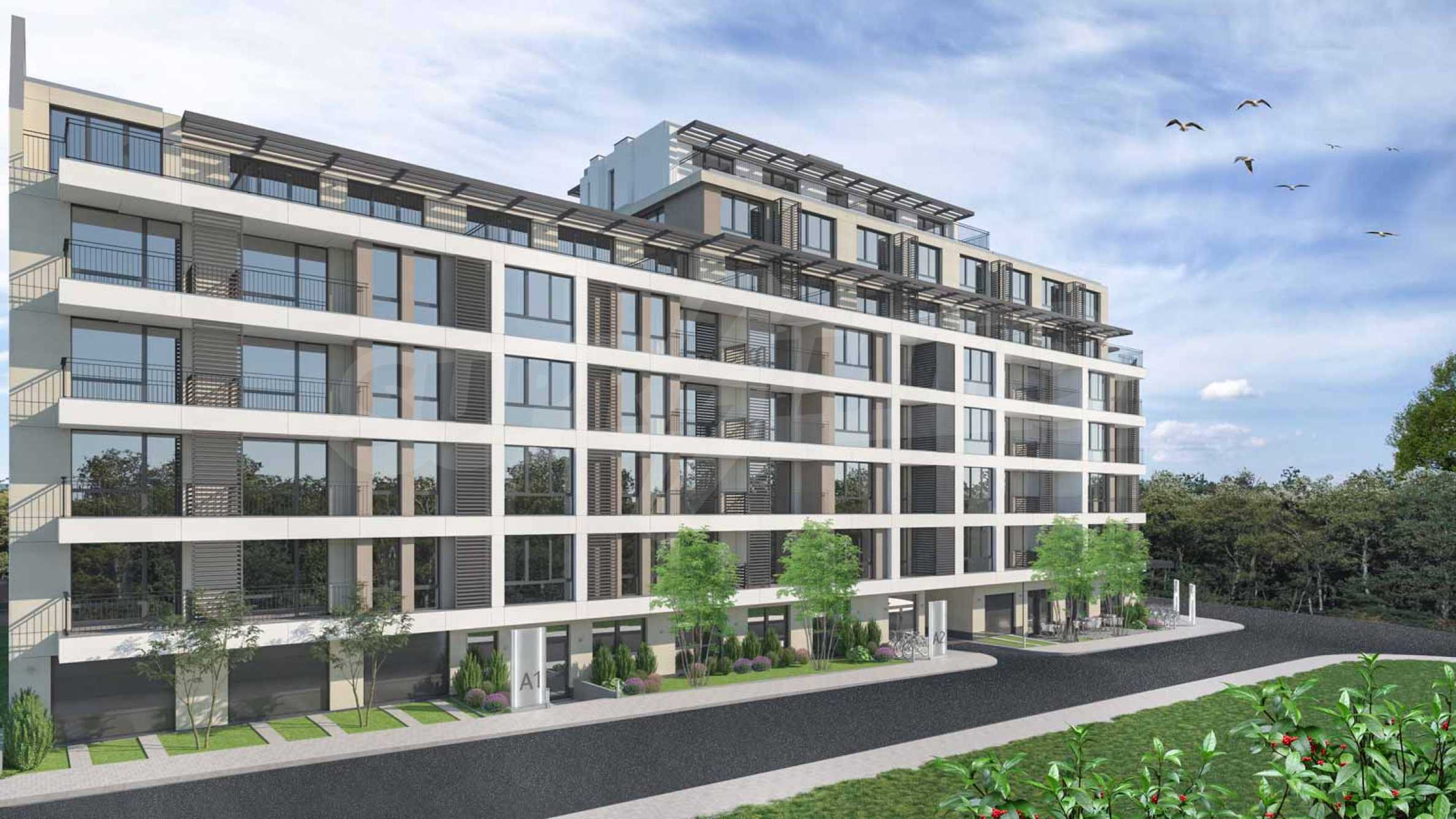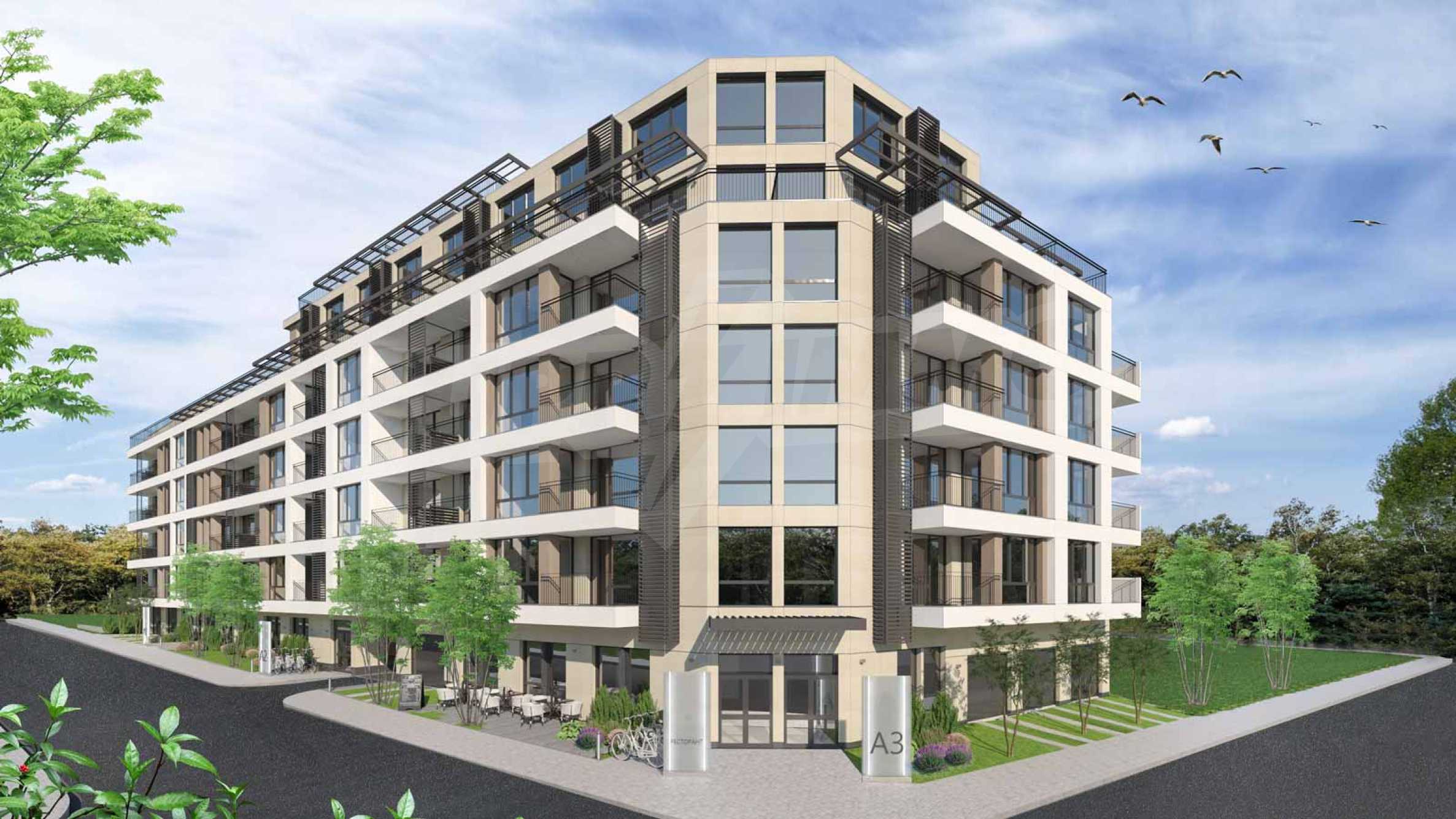 Комплексът се състои от две сгради с пространство за озеленяване, алеи за разходка и пространство за детски игри.