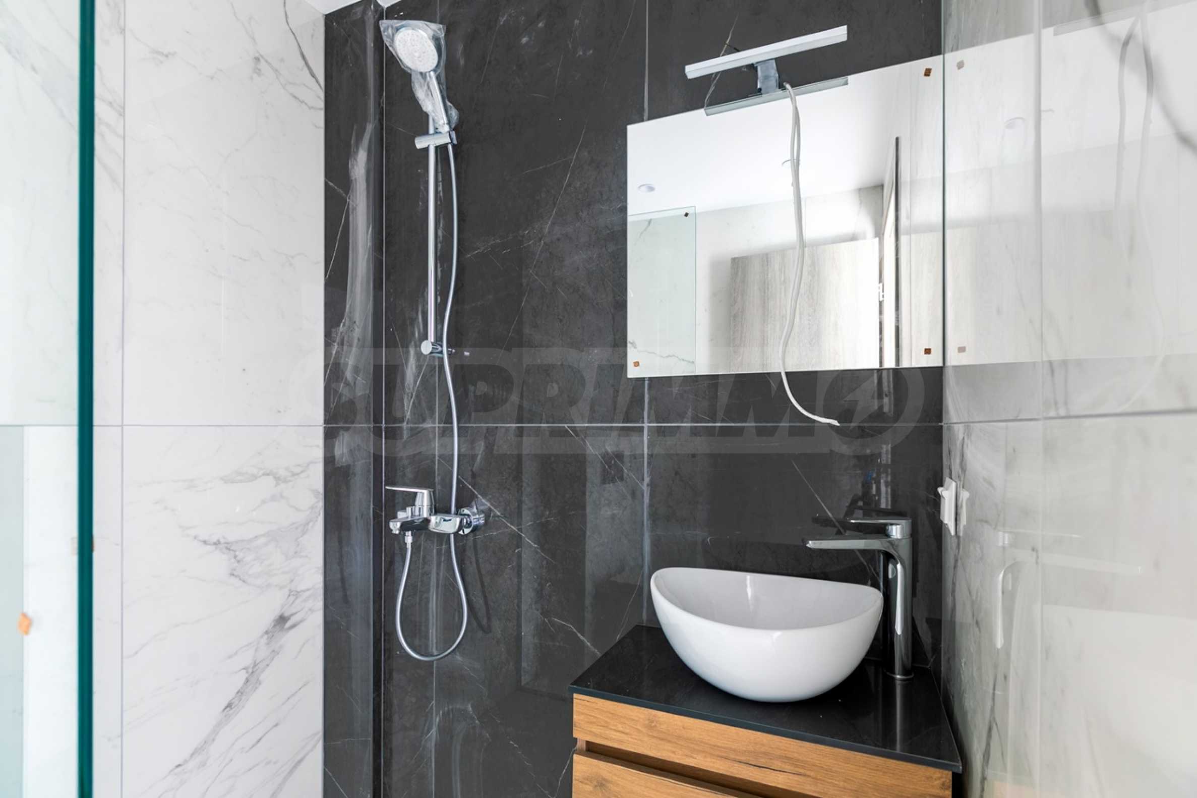 Апартаментите се предават завършени „до ключ“, с подови настилки, входни и интериорни врати, преинсталация за климатици.