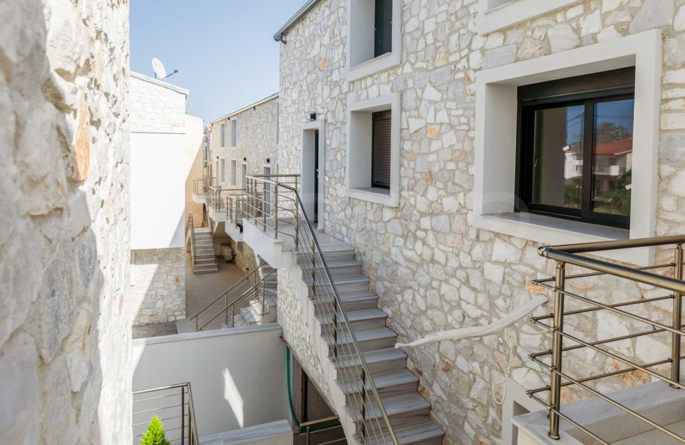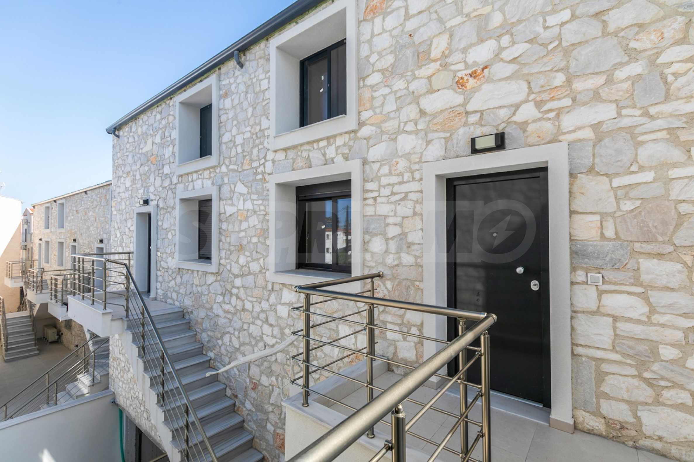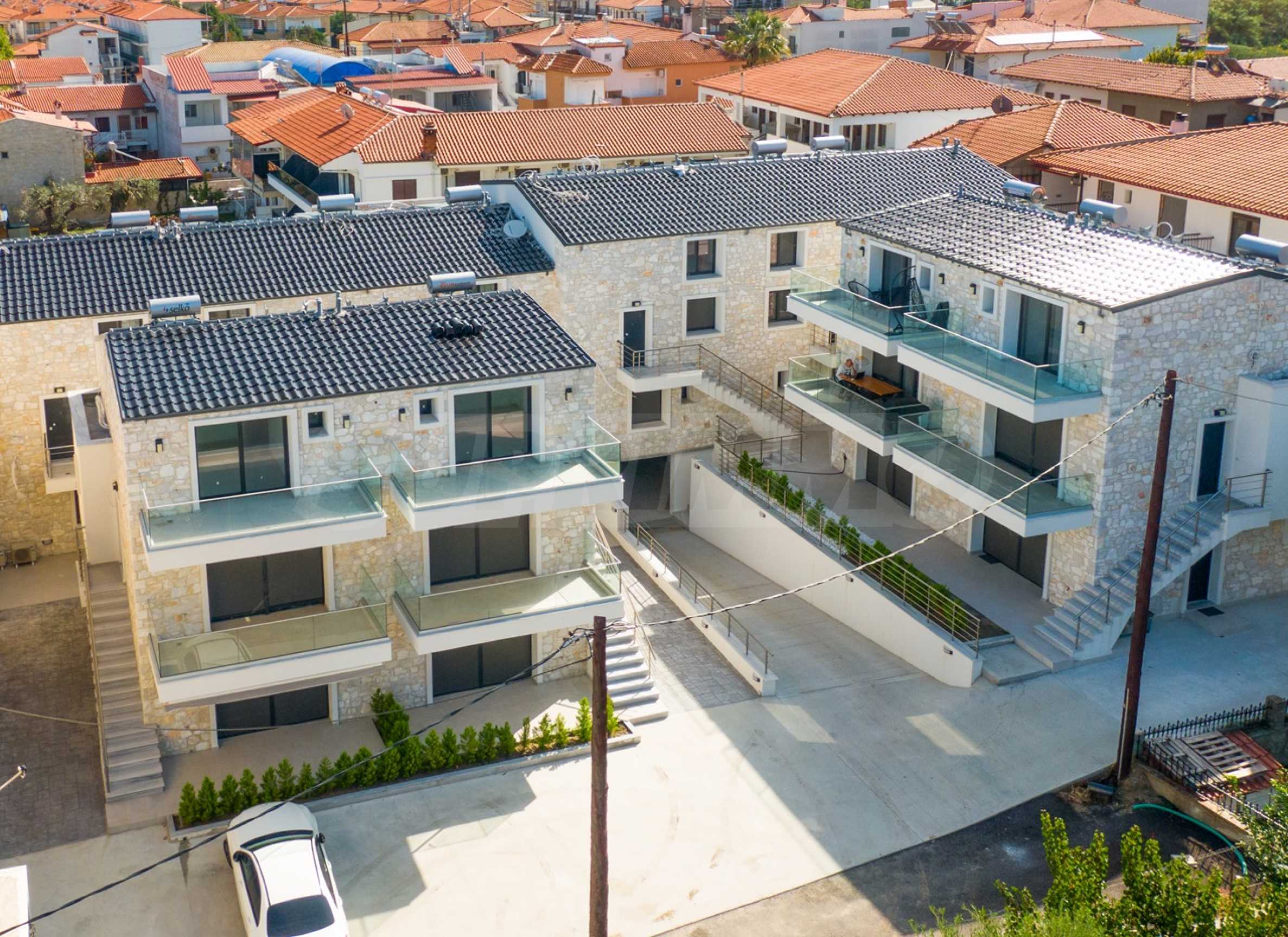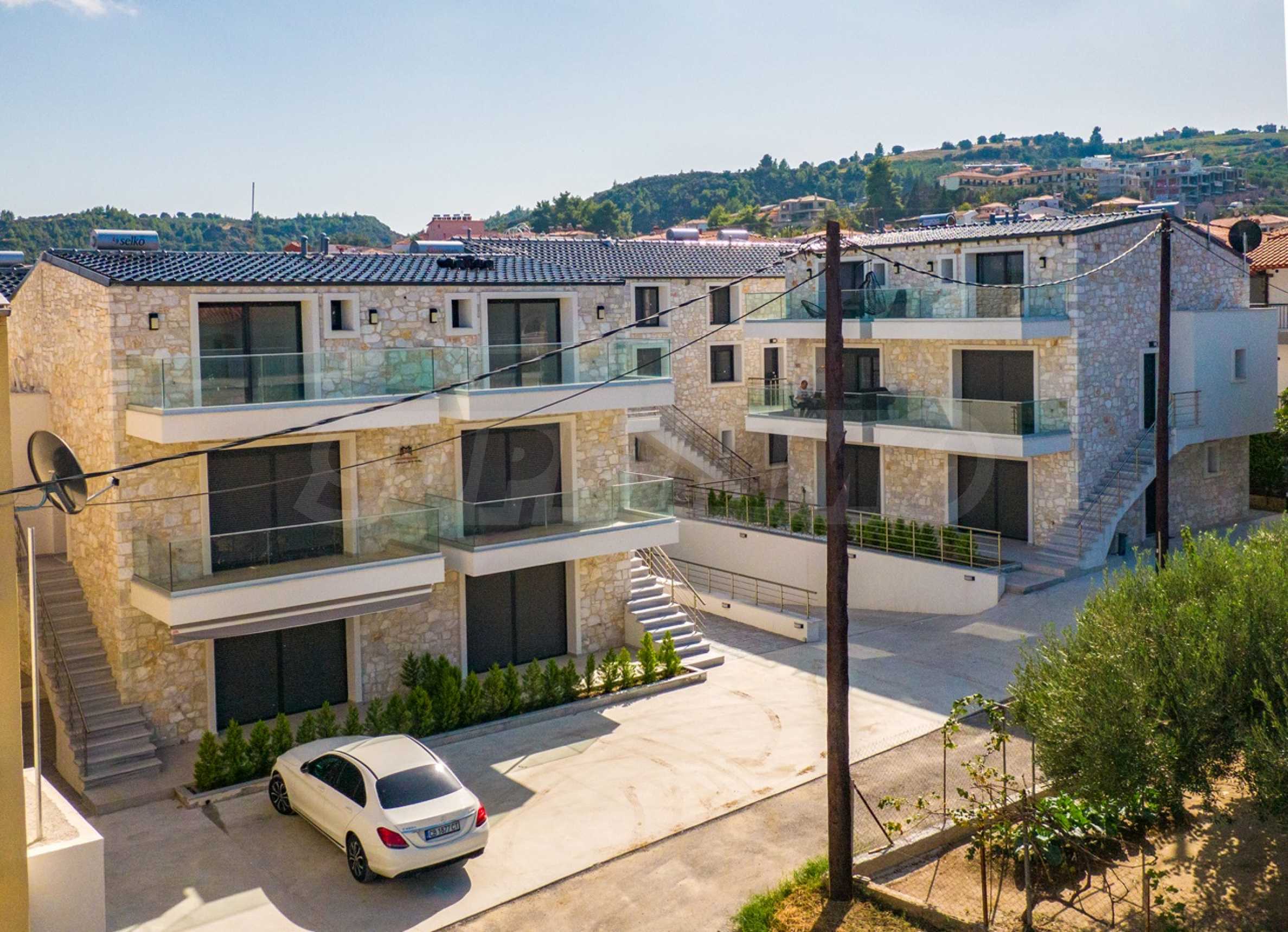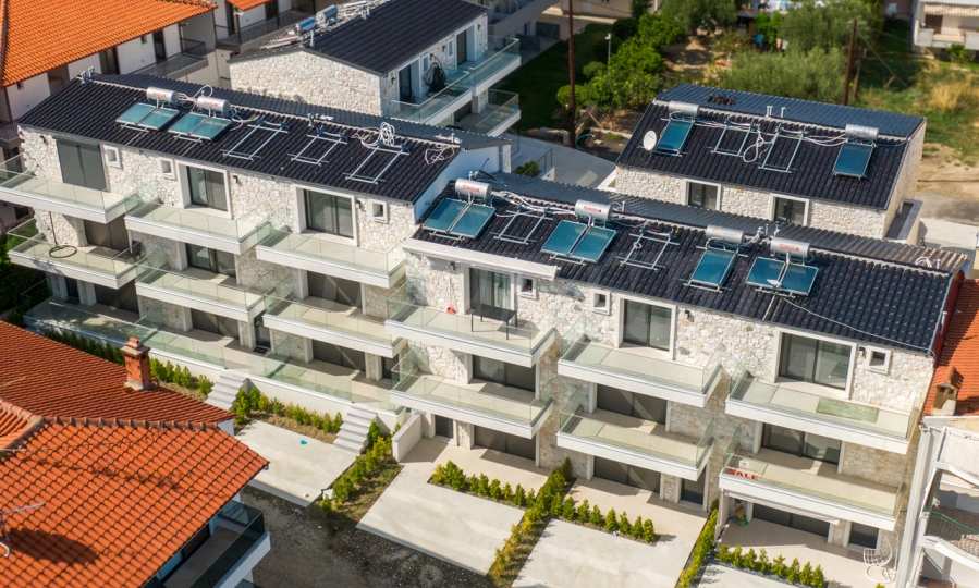 Представяме нов комплекс от четири сгради с изгодни за инвестиция жилища - четиристайни апартаменти тип мезонет, на по-малко от 100 м от центъра и на 50 м от плажа на един от най-популярните и предпочитани курорти на полуострова Касандра, Халкидики, Гърция.