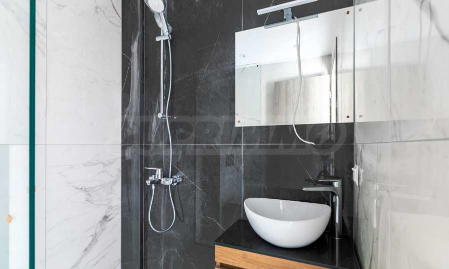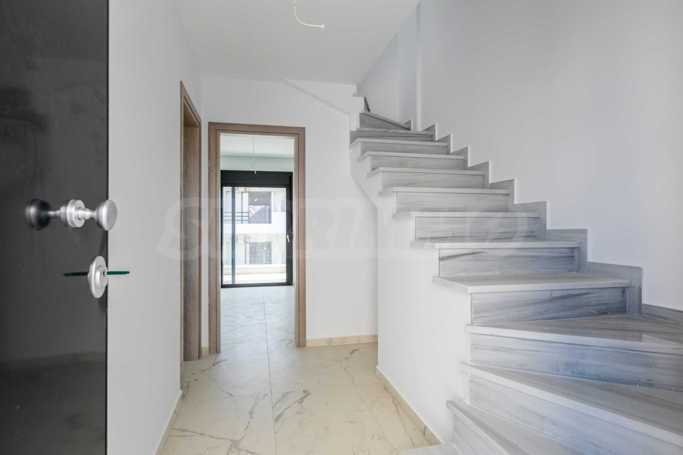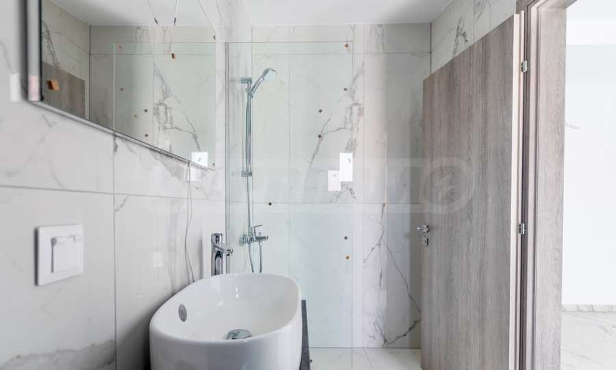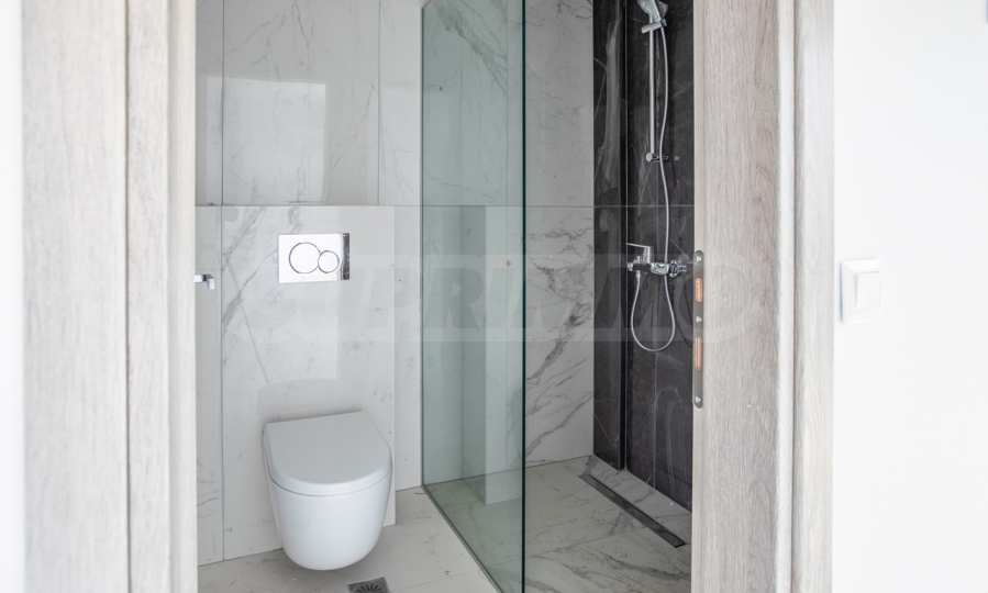 Апартаментът е разположен на 2-ро и 3-то (мансардно) ниво и е с обща площ 126.32 кв.м. (чиста площ 98.70 кв.м), удобно разпределена във всекидневна, три спални и две бани с тоалетна. Към имота има тераса с площ 10.80 кв.м. Апартаментът се предава завършен „до ключ“, с подови настилки, входни и интериорни врати, преинсталация за климатици.