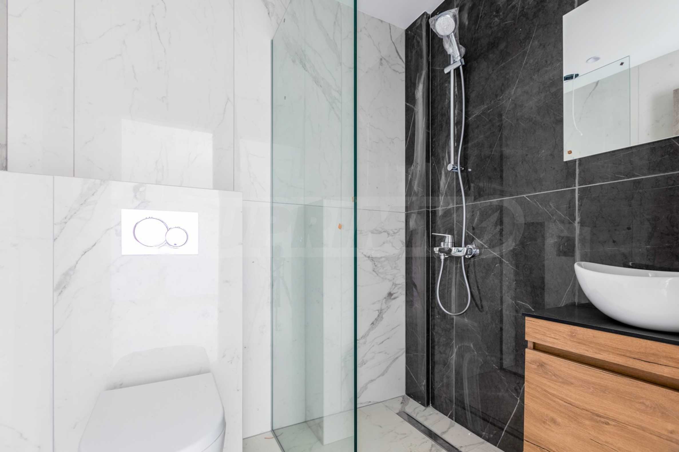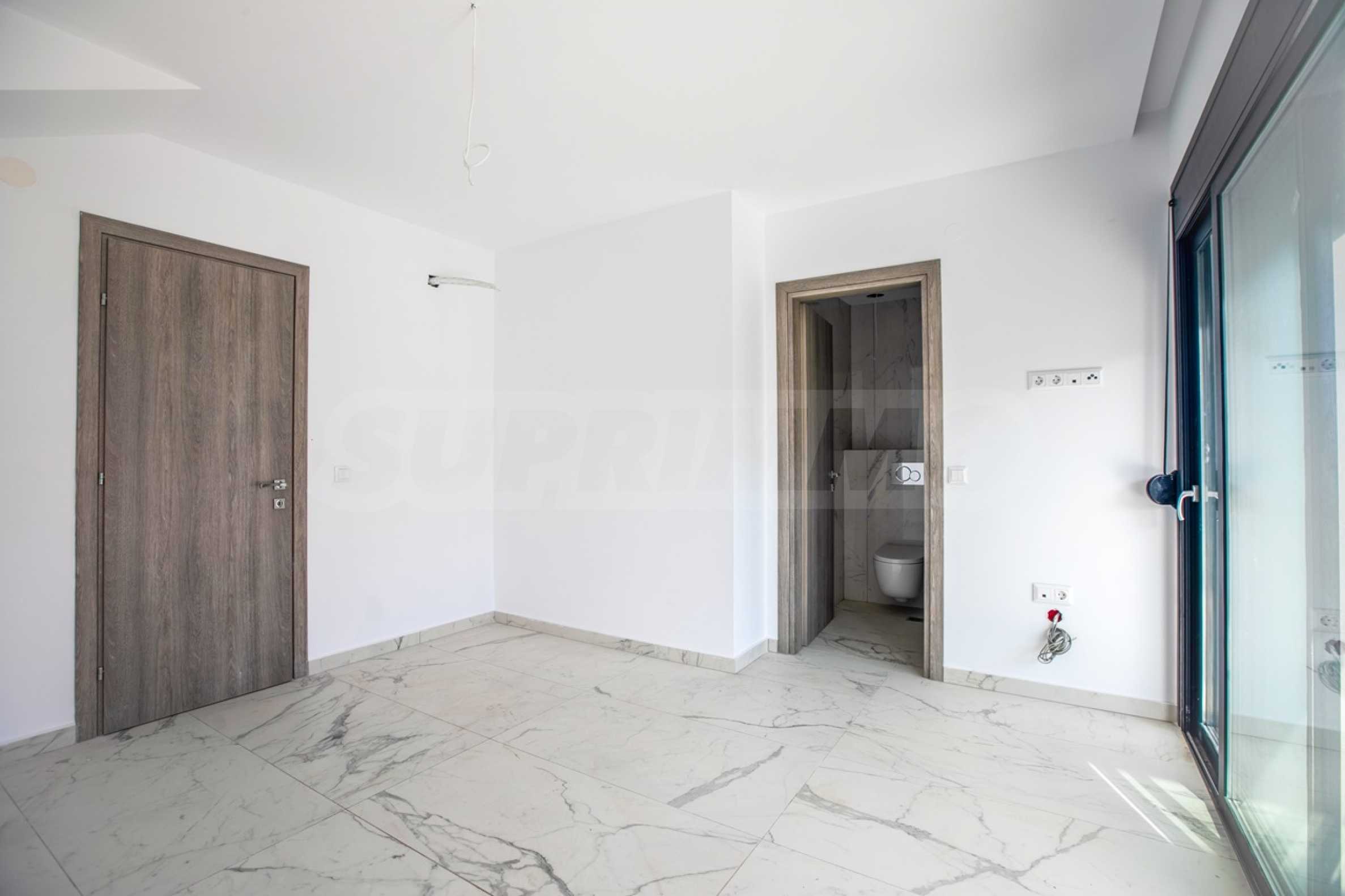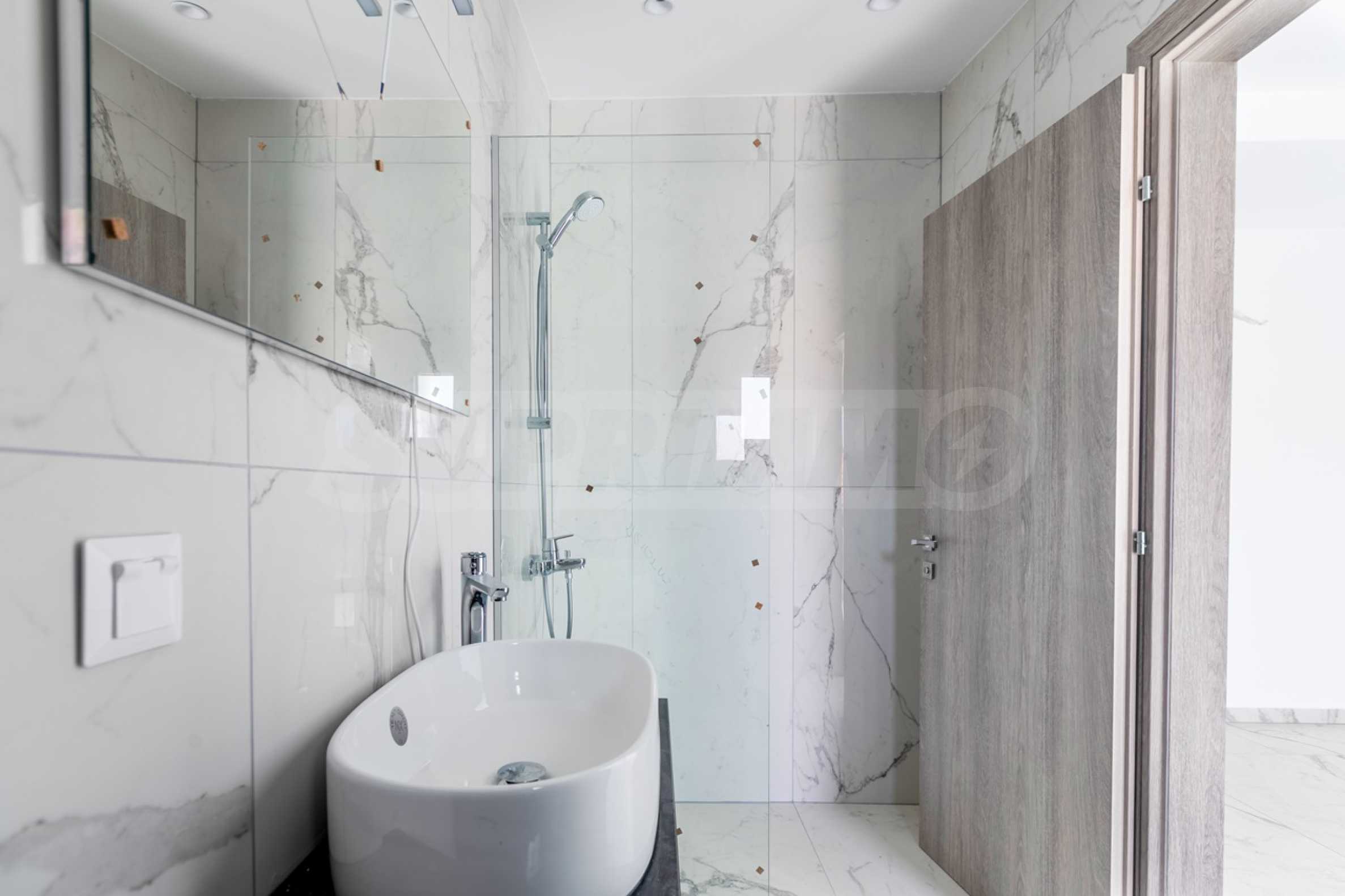 Апартаментът е разположен на 2-ро и 3-то (мансардно) ниво и е с обща площ 126.32 кв.м. (чиста площ 98.70 кв.м), удобно разпределена във всекидневна, три спални и две бани с тоалетна. Към имота има тераса с площ 10.80 кв.м. Апартаментът се предава завършен „до ключ“, с подови настилки, входни и интериорни врати, преинсталация за климатици.