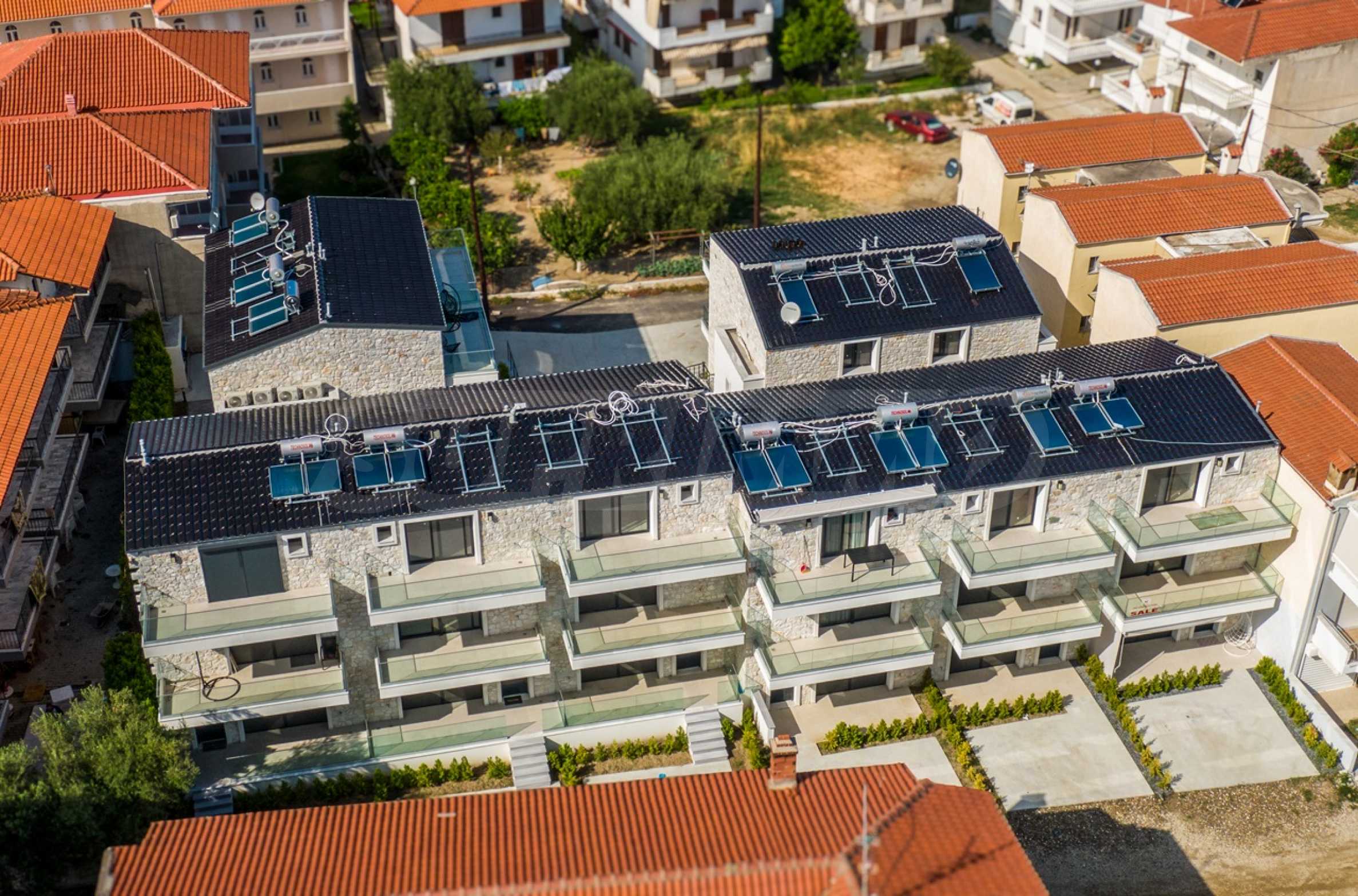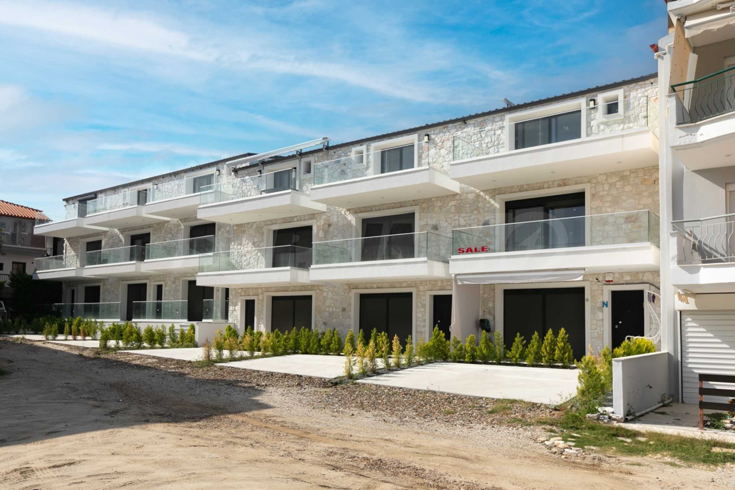 Представяме тристаен апартамент тип мезонет в нов комплекс, разположен на по-малко от 100 м от центъра и на 50 м от плажа на един от най-популярните и предпочитани курорти на полуострова Касандра, Халкидики, Гърция.