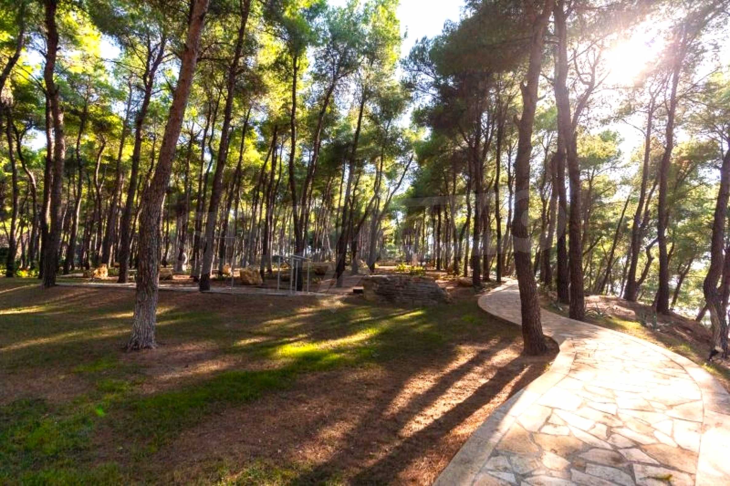 Резиденцията се състои от общо 1000 кв.м РЗП жилищнии площи, основна вила и допълнителни постройки за гости, и помощен персонал , разположени на 18 декара перфектно подържани частна гора-парк. Резиденцията е на около 200 метра от плажовете на "Sani Resort" и всичките удобства на комплекса, както се ползва и от доста привилегии, предлагани от "Sani Resort".