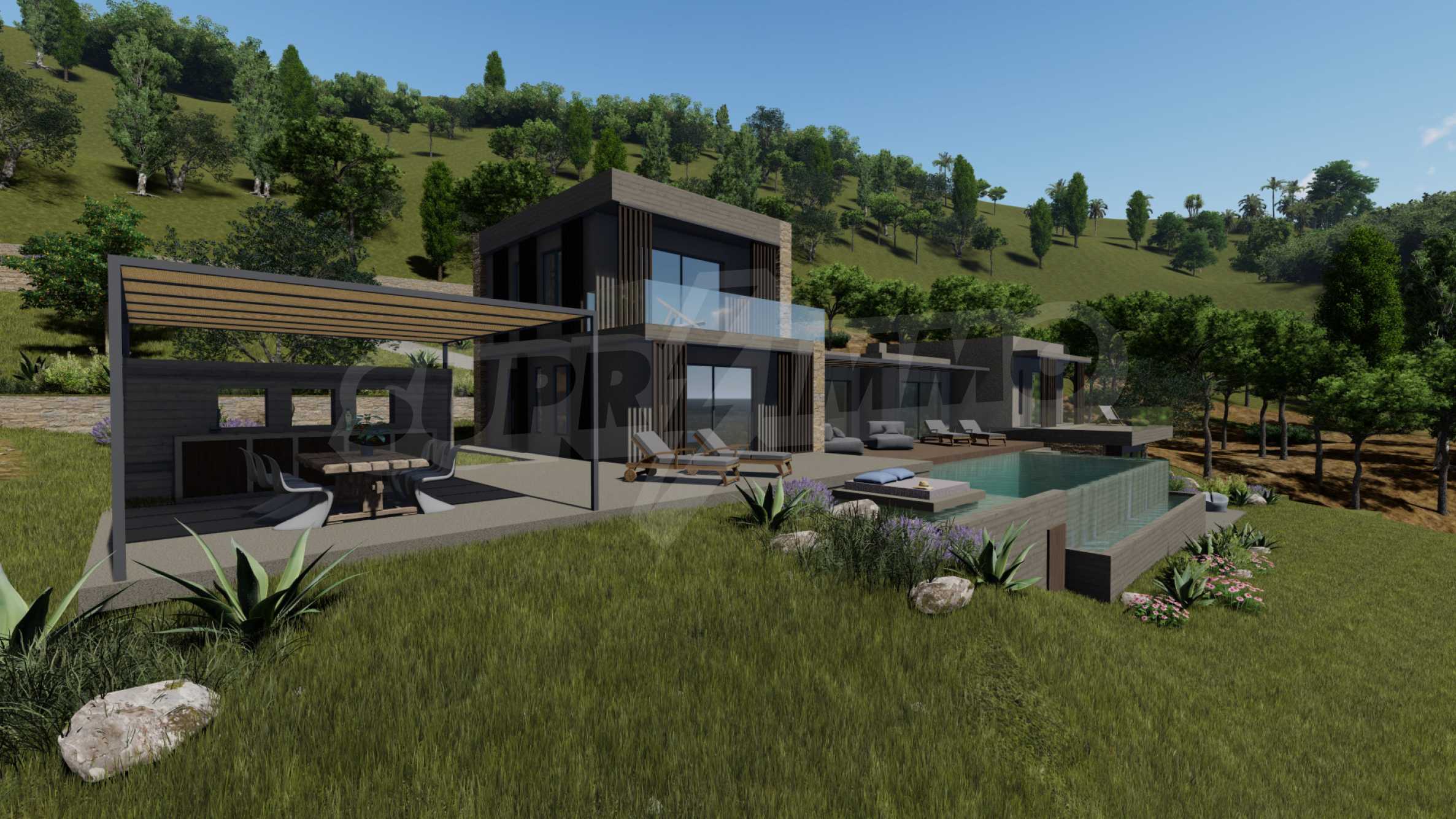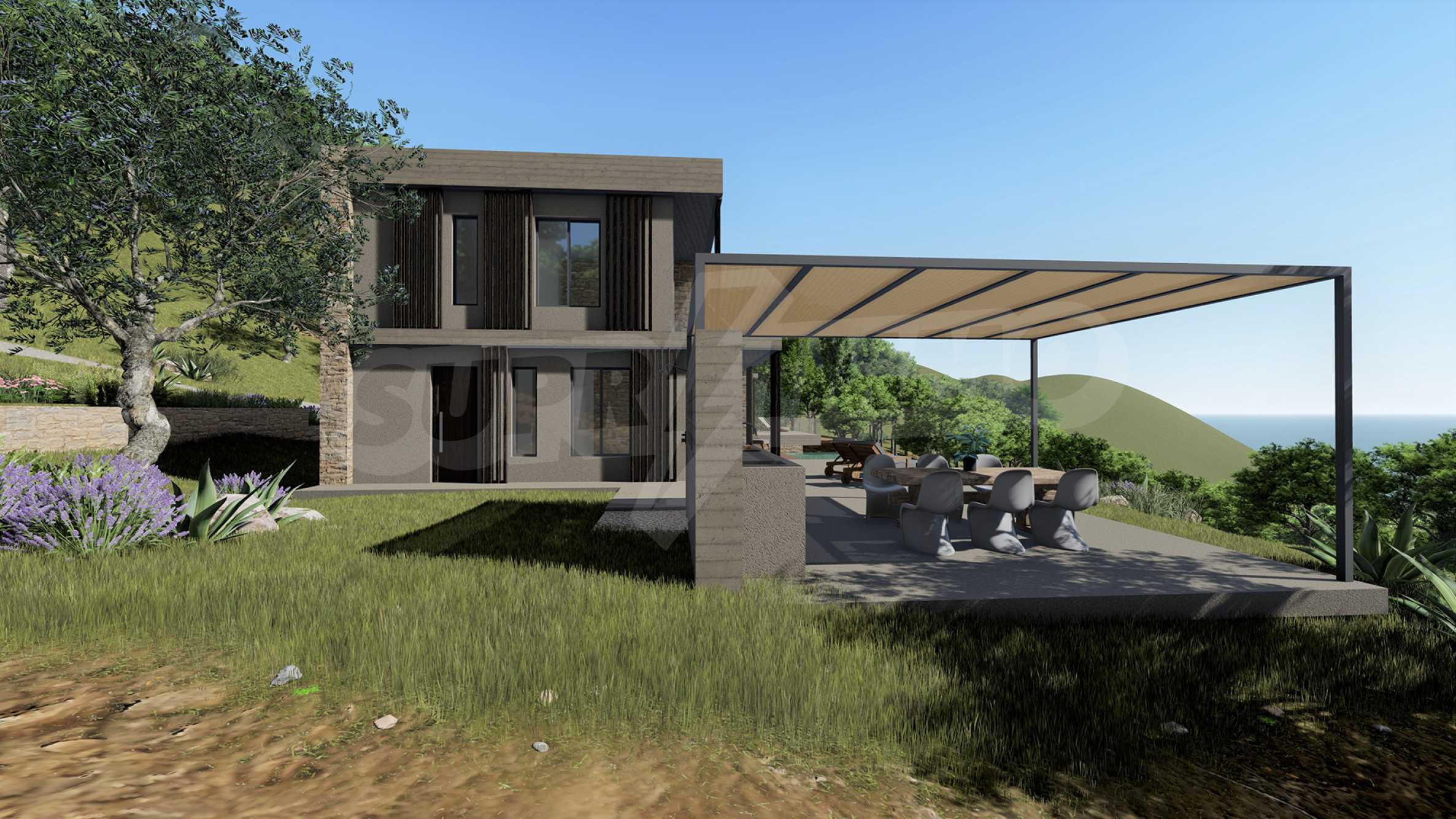 Вилата е проектирана и построена според възможно най-високите стандарти. Изчистените линии и комфортът са в основата на нейния дизайн. Използваните строителни материали са от най-високо клас. Според нашата визия архитектурата на къщата е вдъхновена от местния стил, използвайте доколкото е възможно местни материали – предимно камък, дърво и пясък. Ние уважаваме природата и желанието ни е да съжителстваме в хармония с нея. Част от функционалните решения разчитат на възобновяеми източници – слънчеви панели, резервоари за дъждовна вода и термопомпи. Ние се грижим за това, което е съществувало стотици години преди нас и затова в някои случаи преместваме и пресаждаме стари маслинови дървета, когато е възможно и необходимо.
