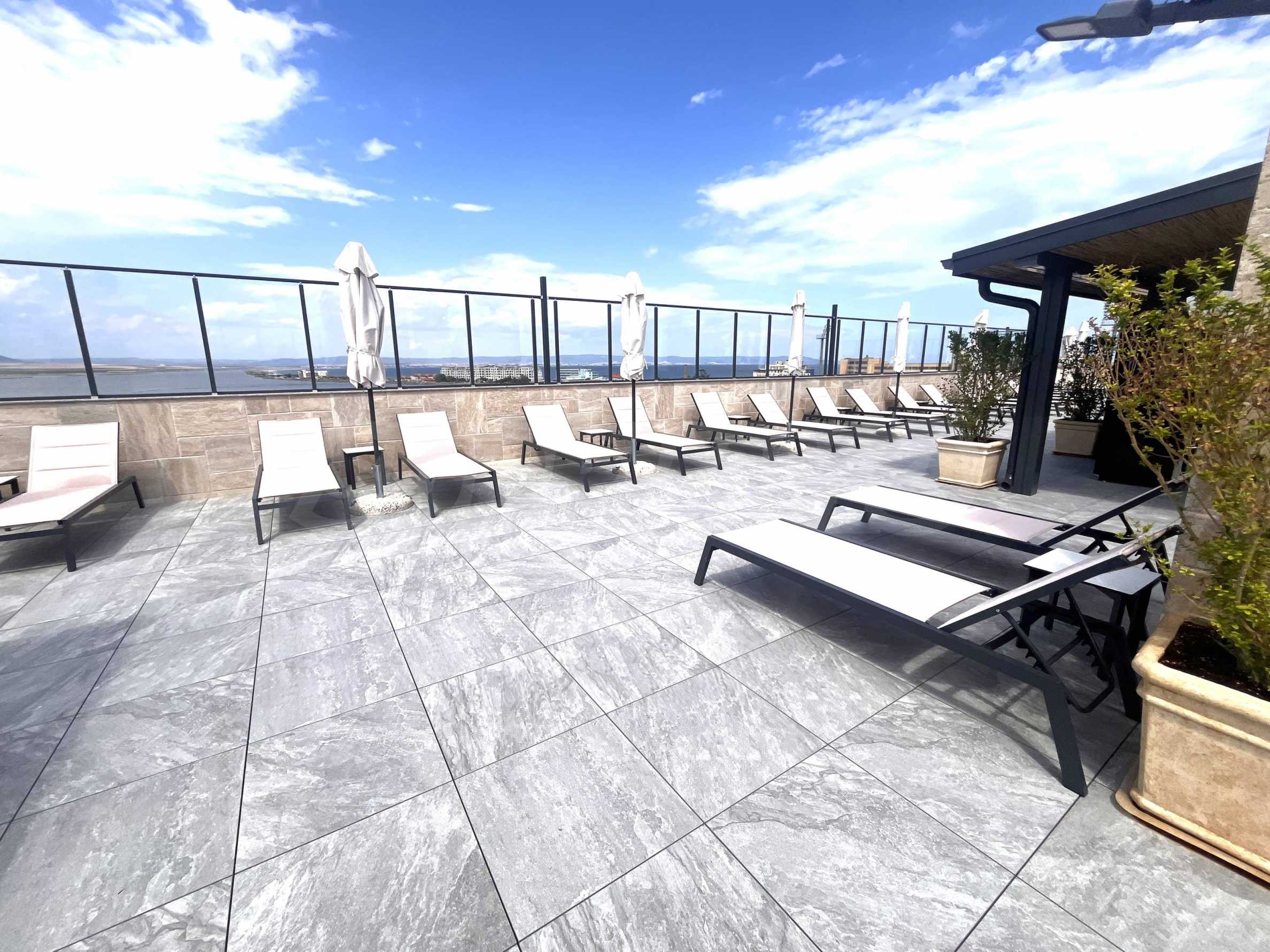 Сградата е въведена в експлоатация (с Акт 16) през януари 2022 г. Разполага с луксозно завършени общи части, голям паркинг, лоби бар, рецепция, басейн, шезлонги, чадъри и скай-бар на покрива.