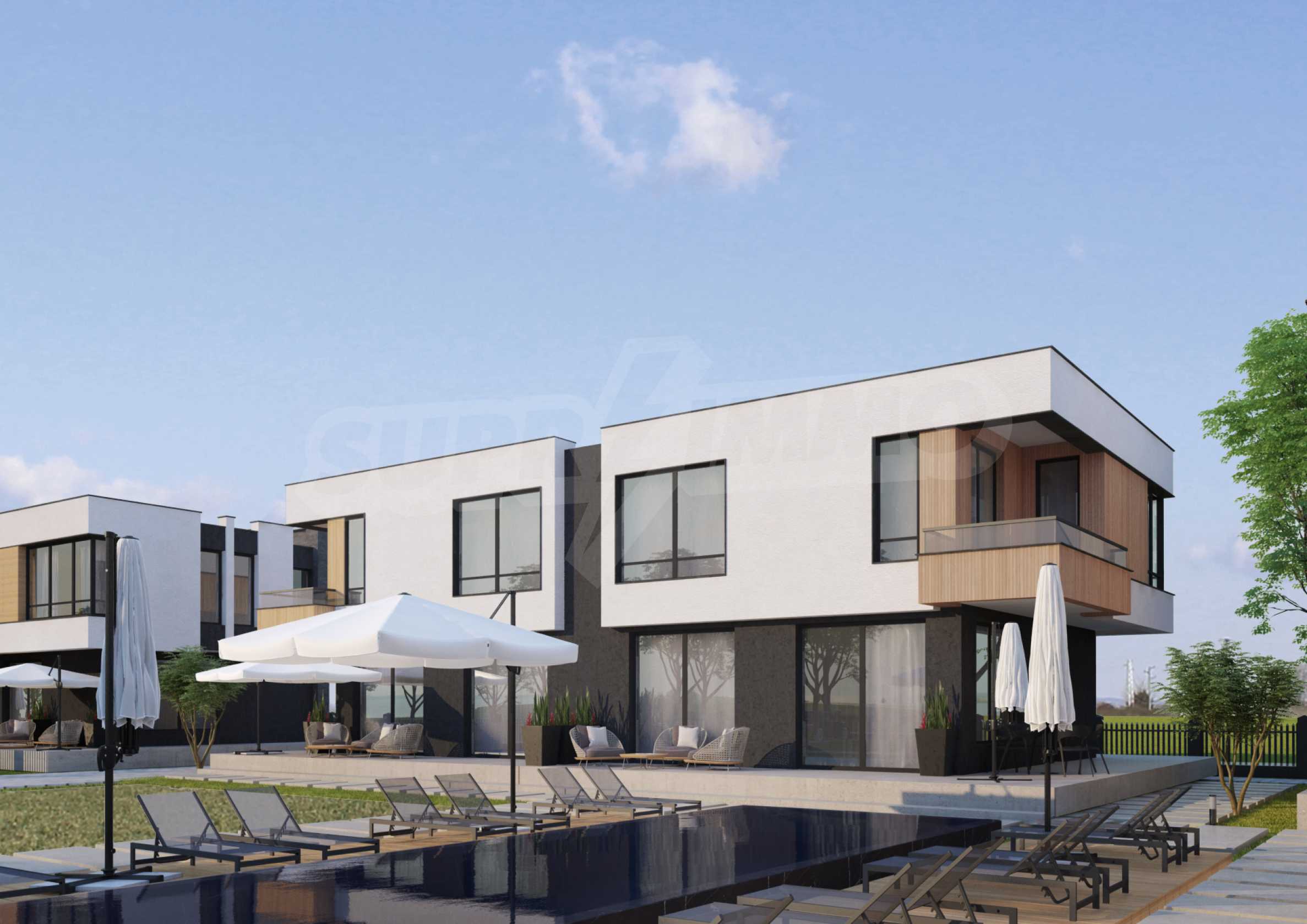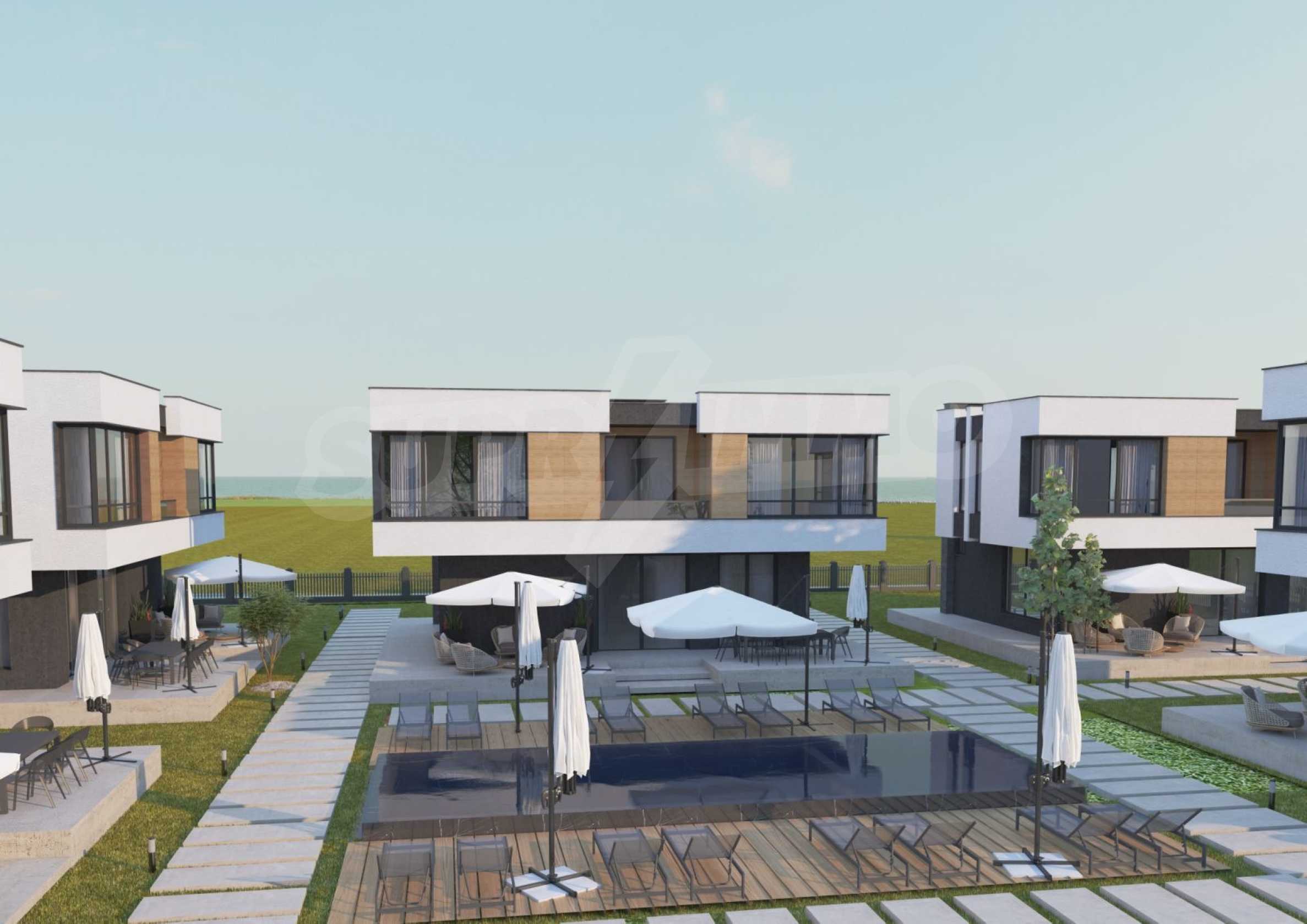 Представяме за продажба къщи модерно ново строителство, в комплекс с целогодишен достъп в курорт Равда.