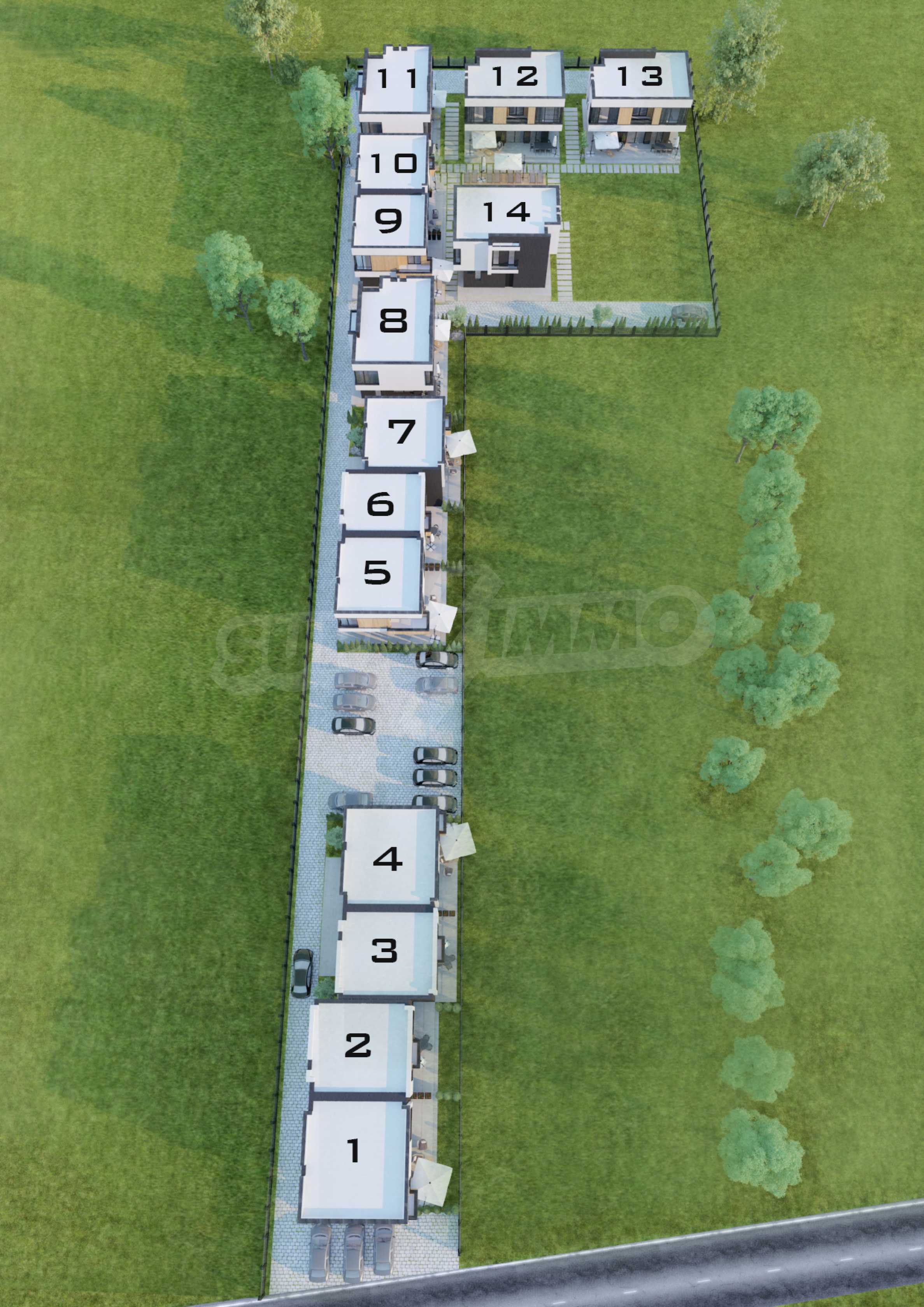 Проектът тип вилно селище включва 8 редови къщи тип таунхаус и 7 самостоятелни вили. За всяка къща е предвидено паркомясто. Достъпът до комплекса е през широк асфалтов път.