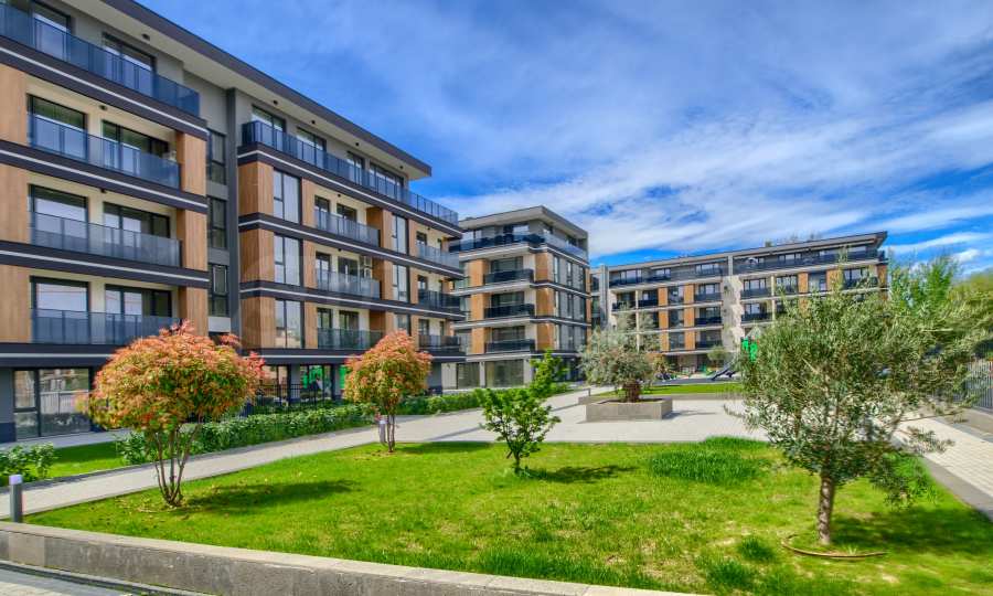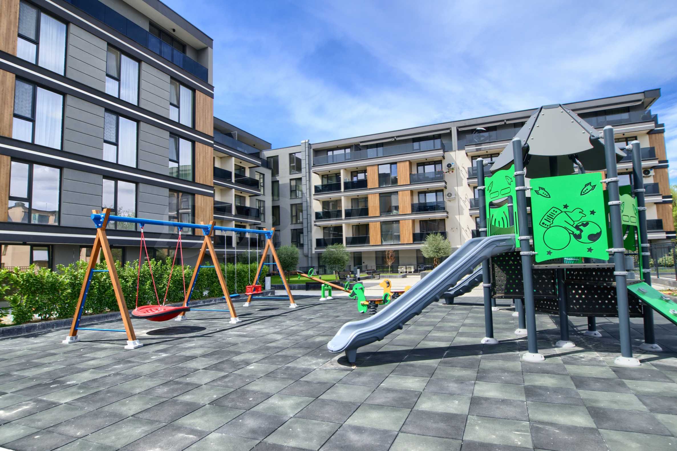 Жилищата на партерен етаж имат индивидуални собствени дворове, а мансардните апартаменти са просторни и функционално проектирани, с панорамни гледки към Гребната база.
