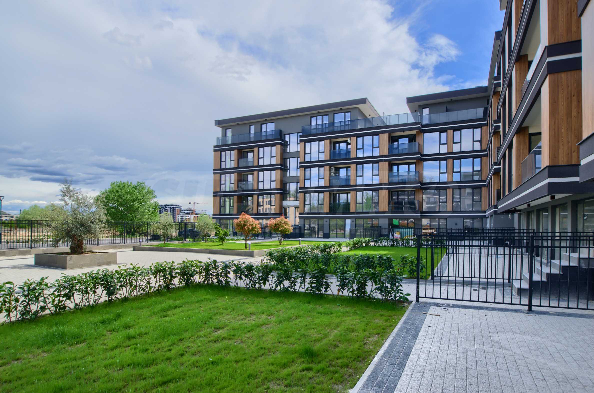 Трите секции на комплекса обграждат красива градина с площ 3 000 кв.м, която оформя вътрешното пространство. Освен зеленина, ще има фонтани, пешеходни алеи, зони за релакс и детски площадки.