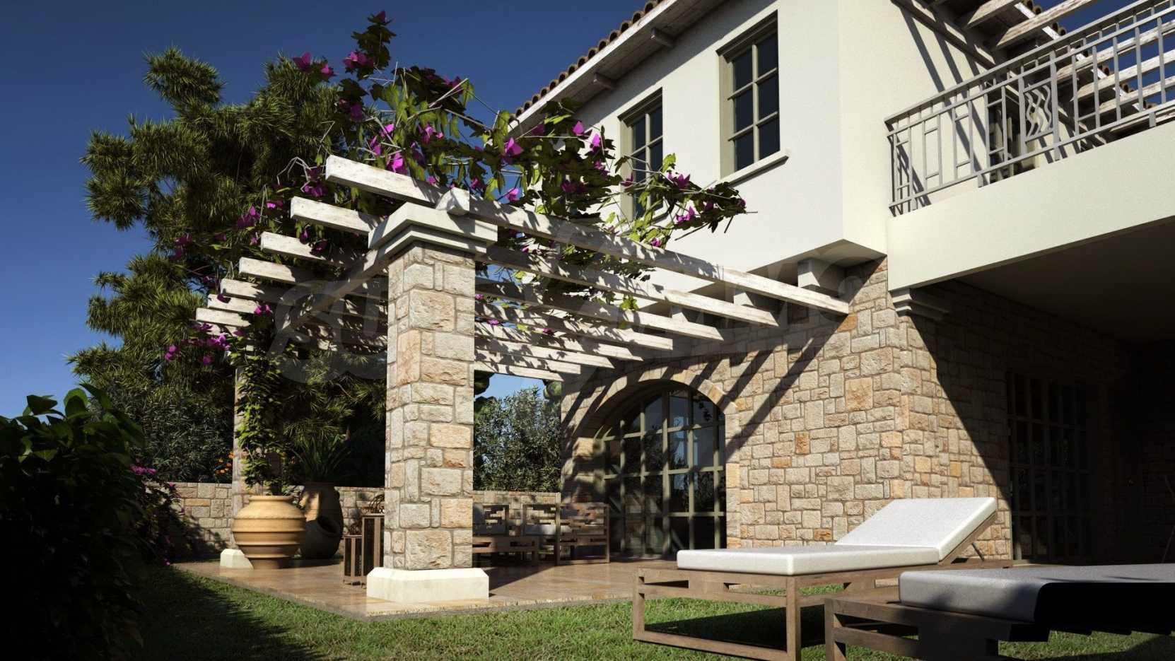 Красива самостоятелна къща в комплекс с луксозен басейн, на пешеходно разстояние от морето, на много красиво място в Ситония, в малкия рай на Халкидики. Имотът се намира на площ от 350 кв.м. на разстояние 1.7 .km от центъра на селото Състои се от 2 нива с общо 150 кв.м. на жилищна площ. Имотът включва 4 спални, 1 WC. , склад и 2 бани(и)