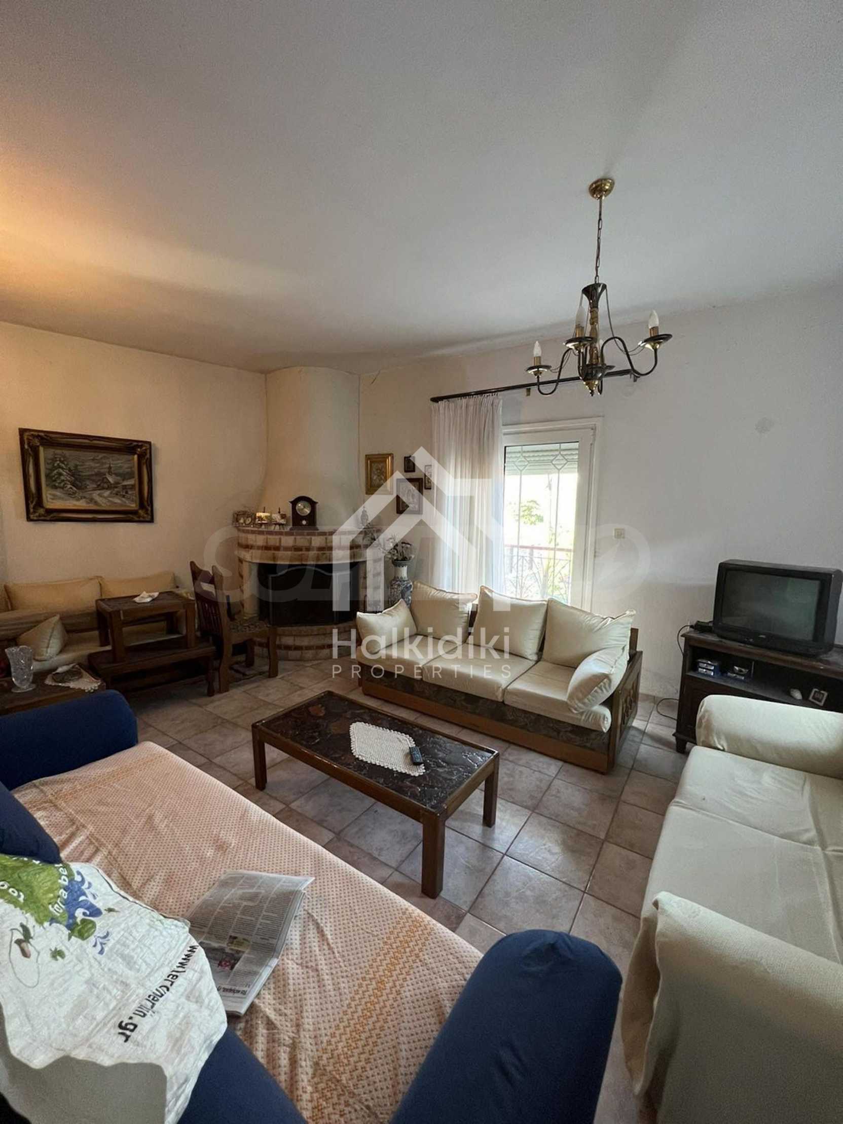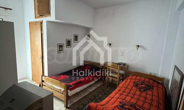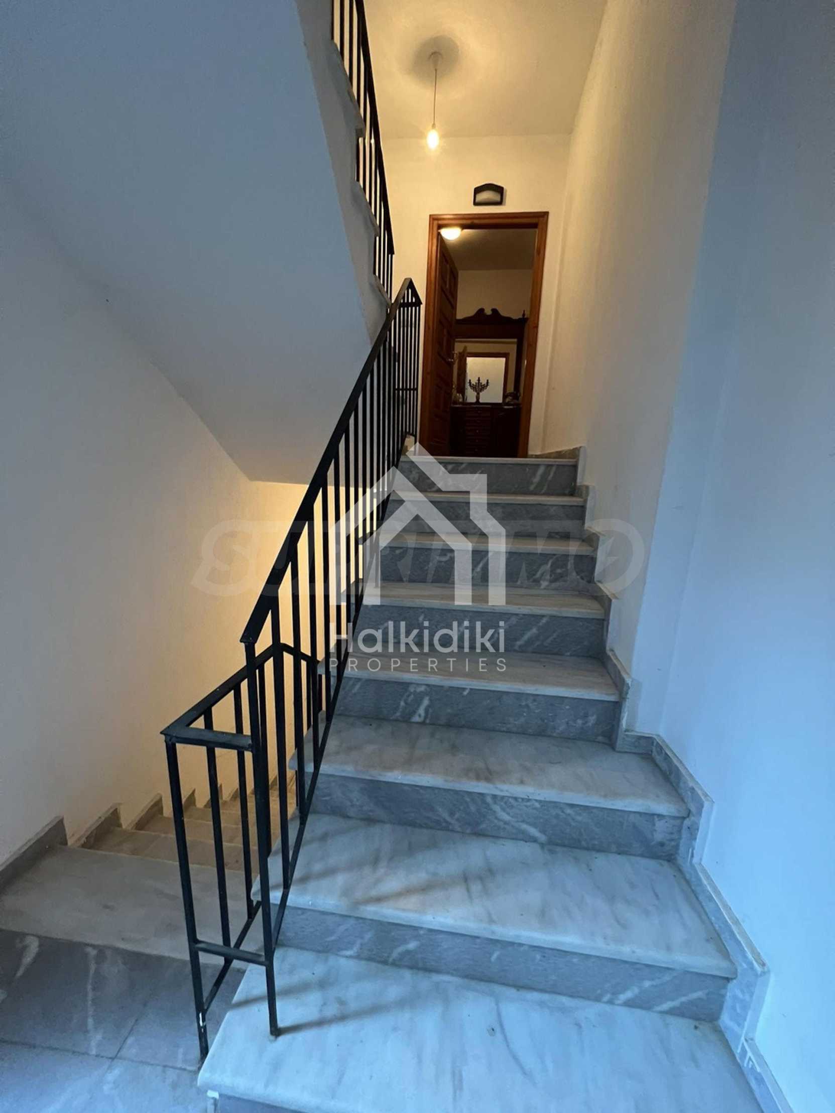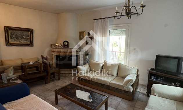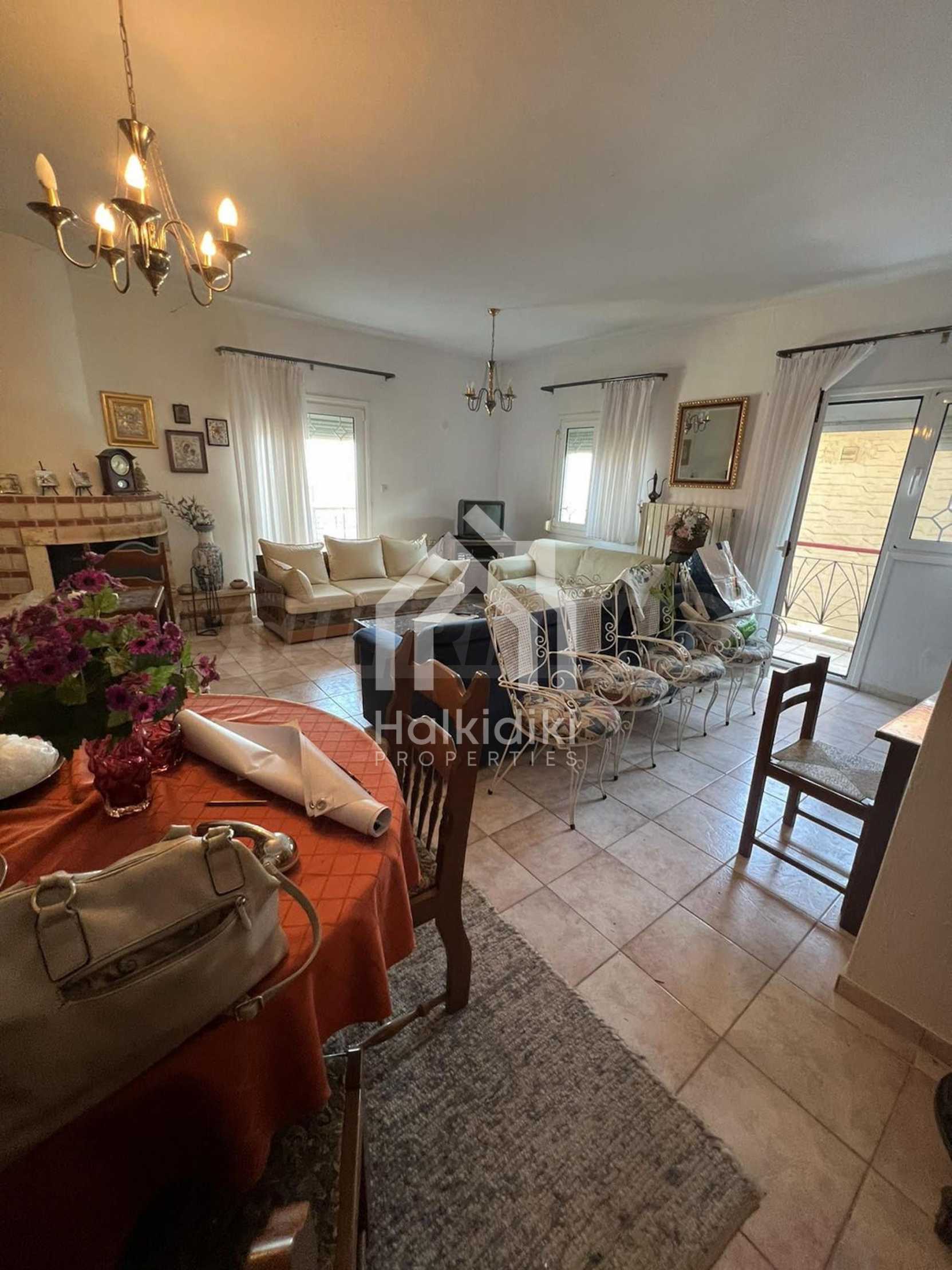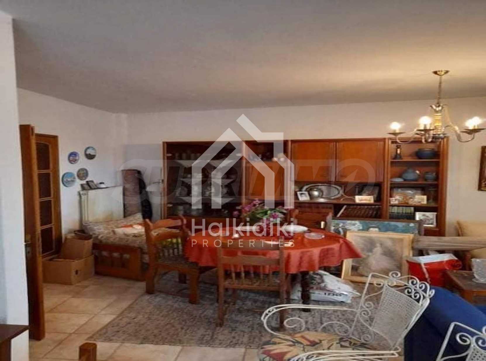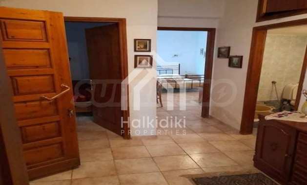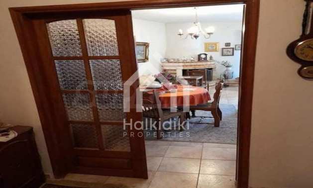 Това е къща на изключително място в очарователния Халкидики. Разположен е на площ от 386,78 кв.м. Състои се от 3 нива с обща площ от 360 кв.м. Имотът включва 6 спални, склад и 9 бани. Има централно отопление с нафта. Партер и втори етаж са недовършени, а първият е напълно обитаем.