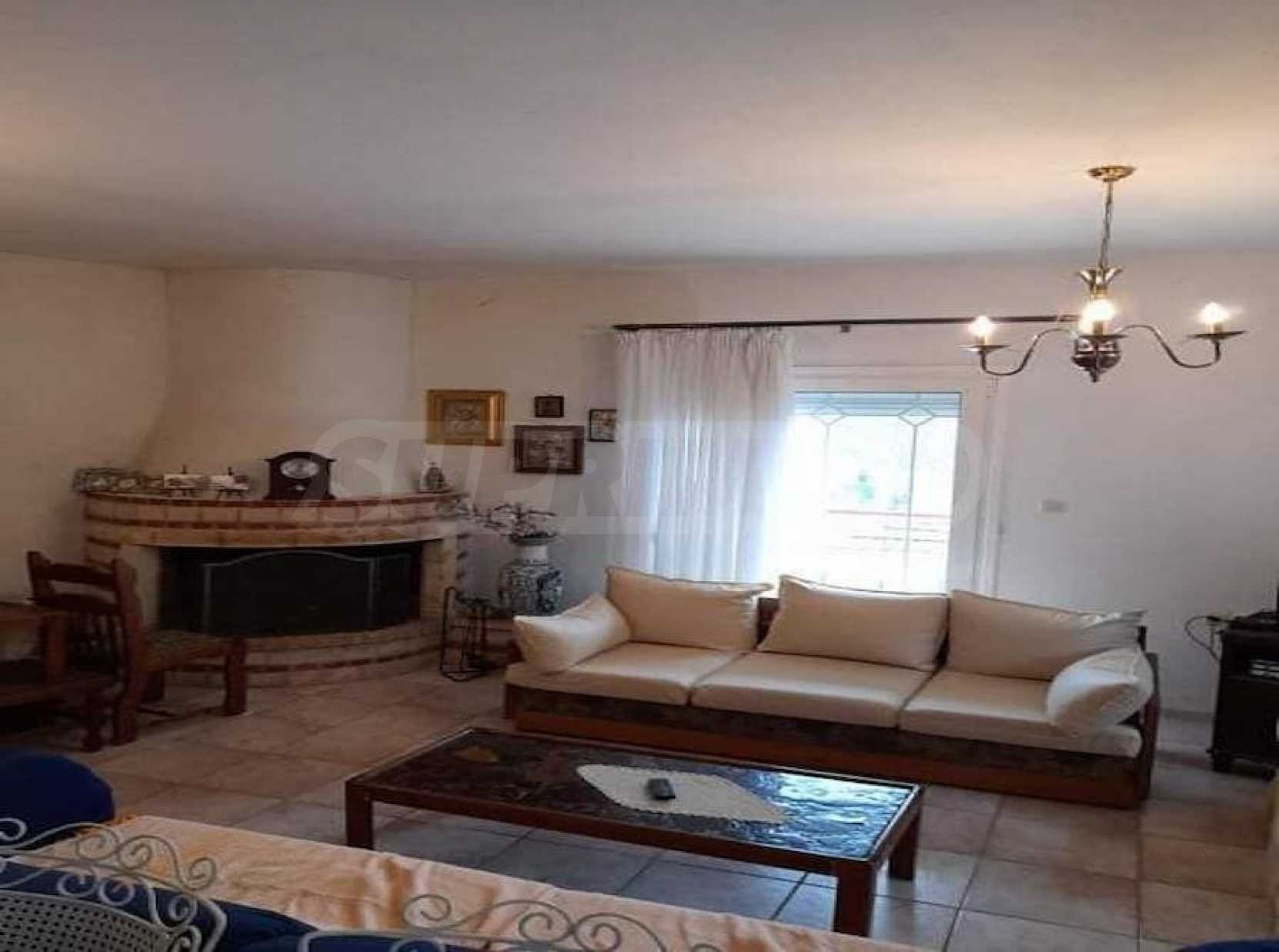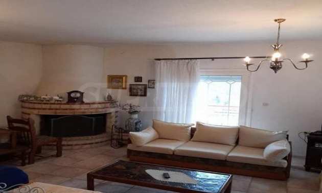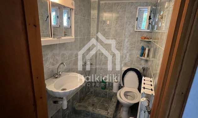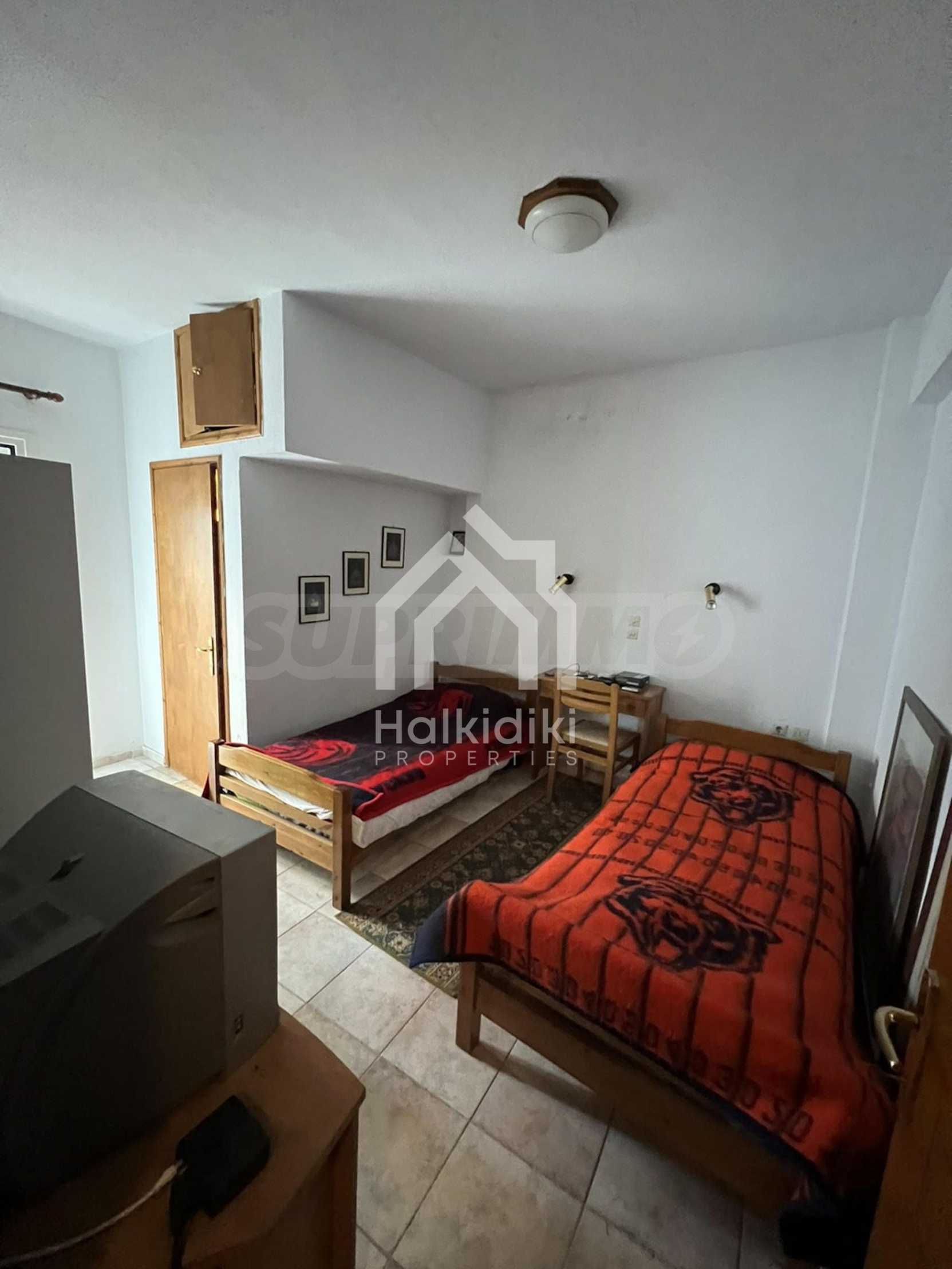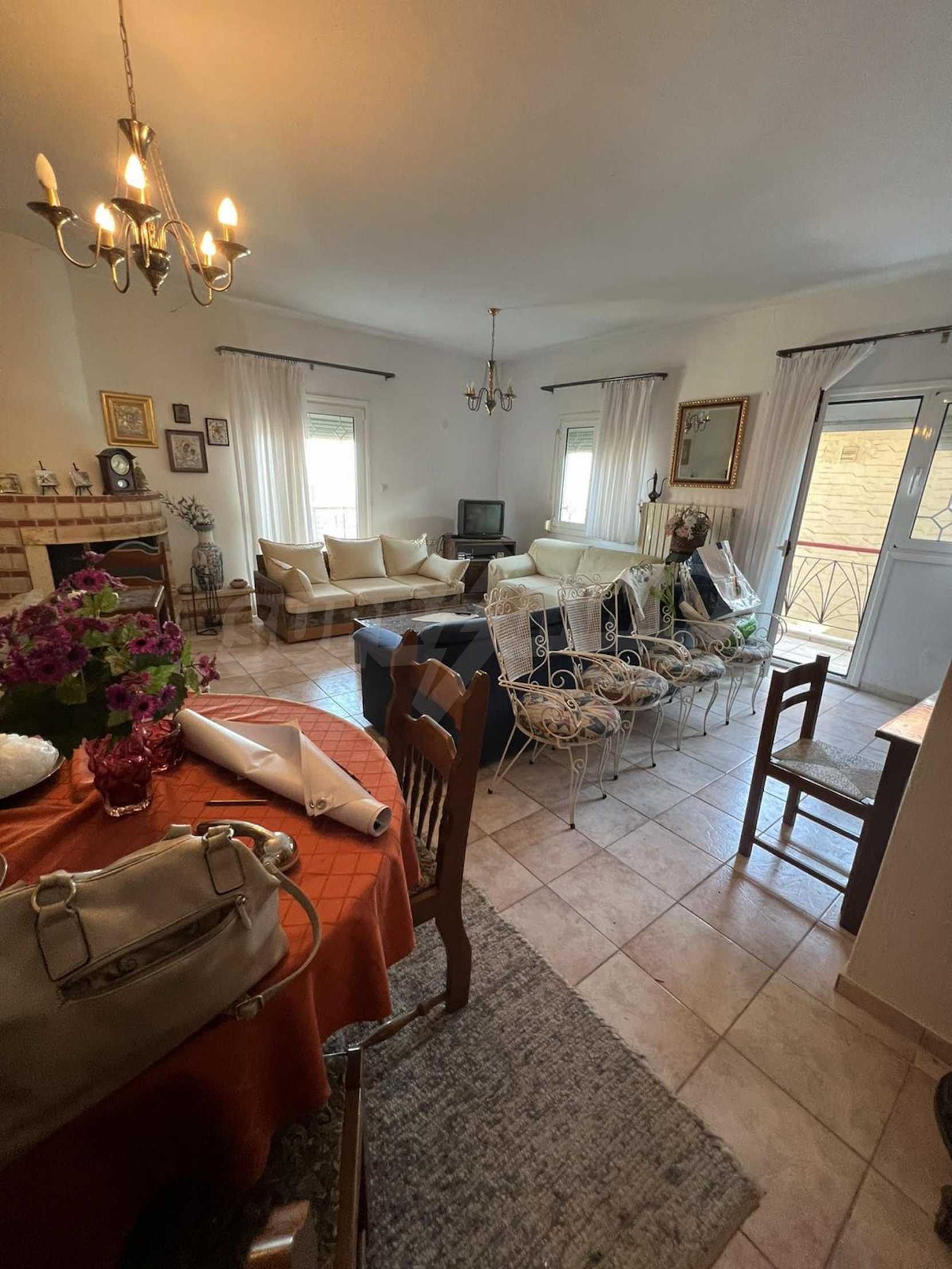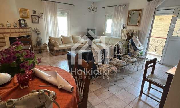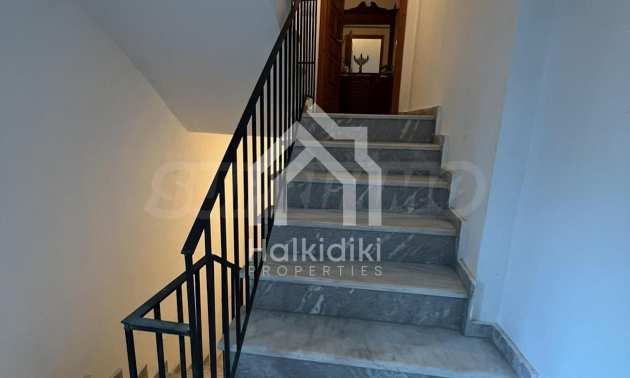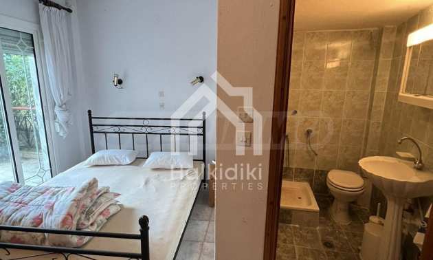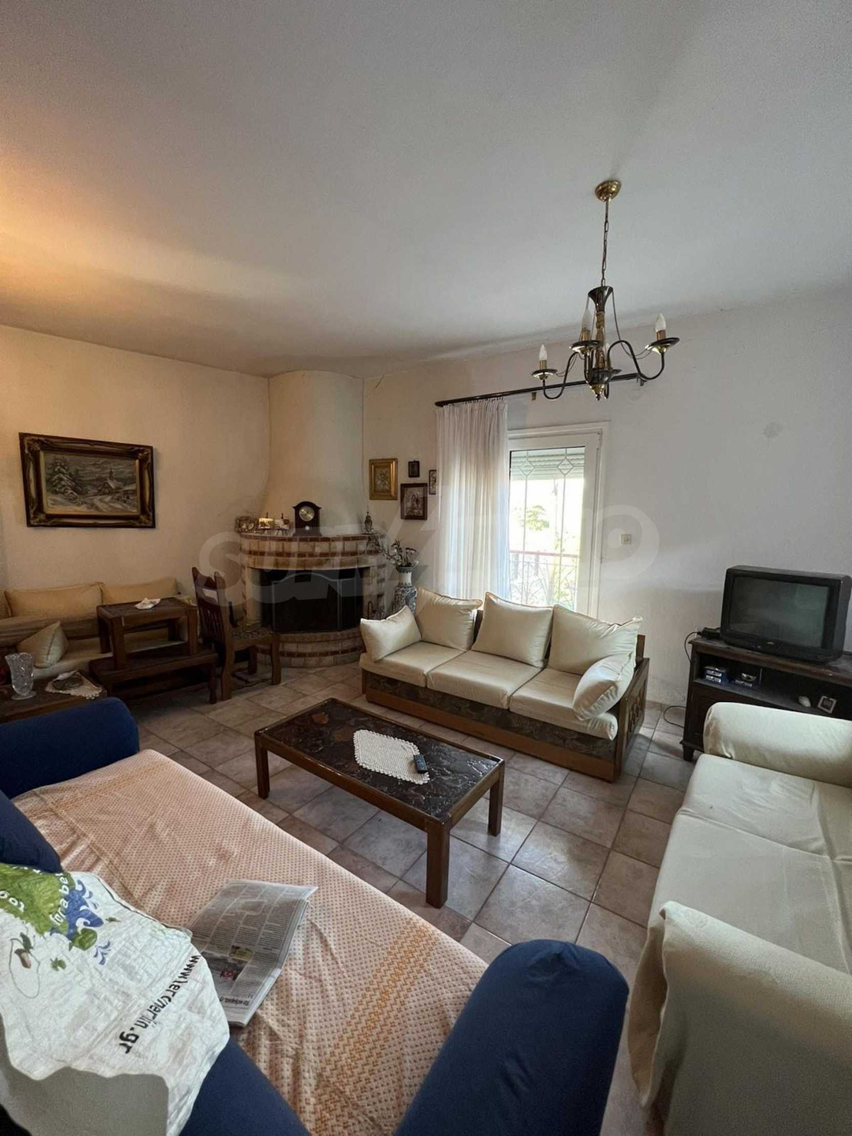 Това е къща на изключително място в очарователния Халкидики. Разположен е на площ от 386,78 кв.м. Състои се от 3 нива с обща площ от 360 кв.м. Имотът включва 6 спални, склад и 9 бани. Има централно отопление с нафта. Партер и втори етаж са недовършени, а първият е напълно обитаем.