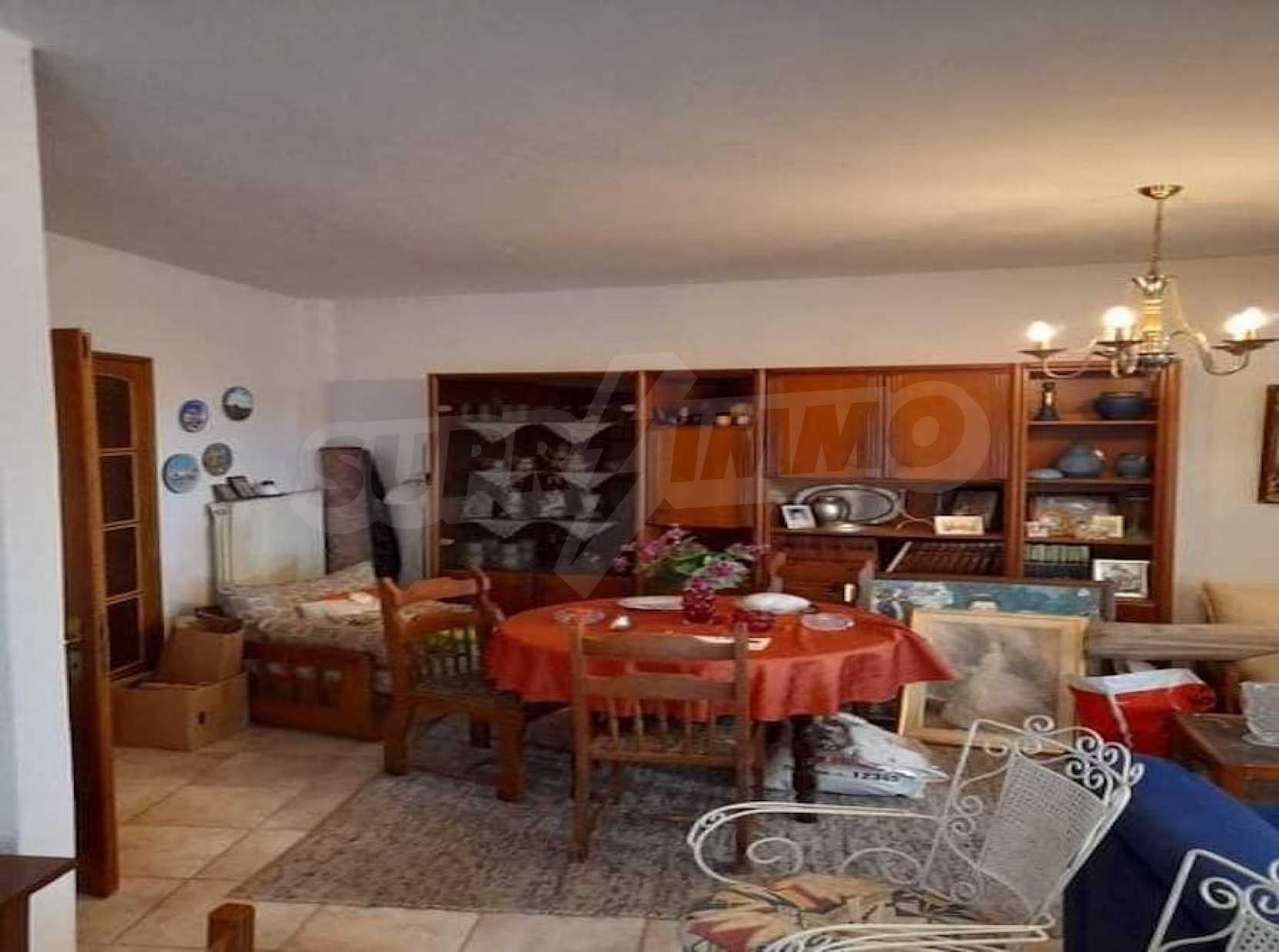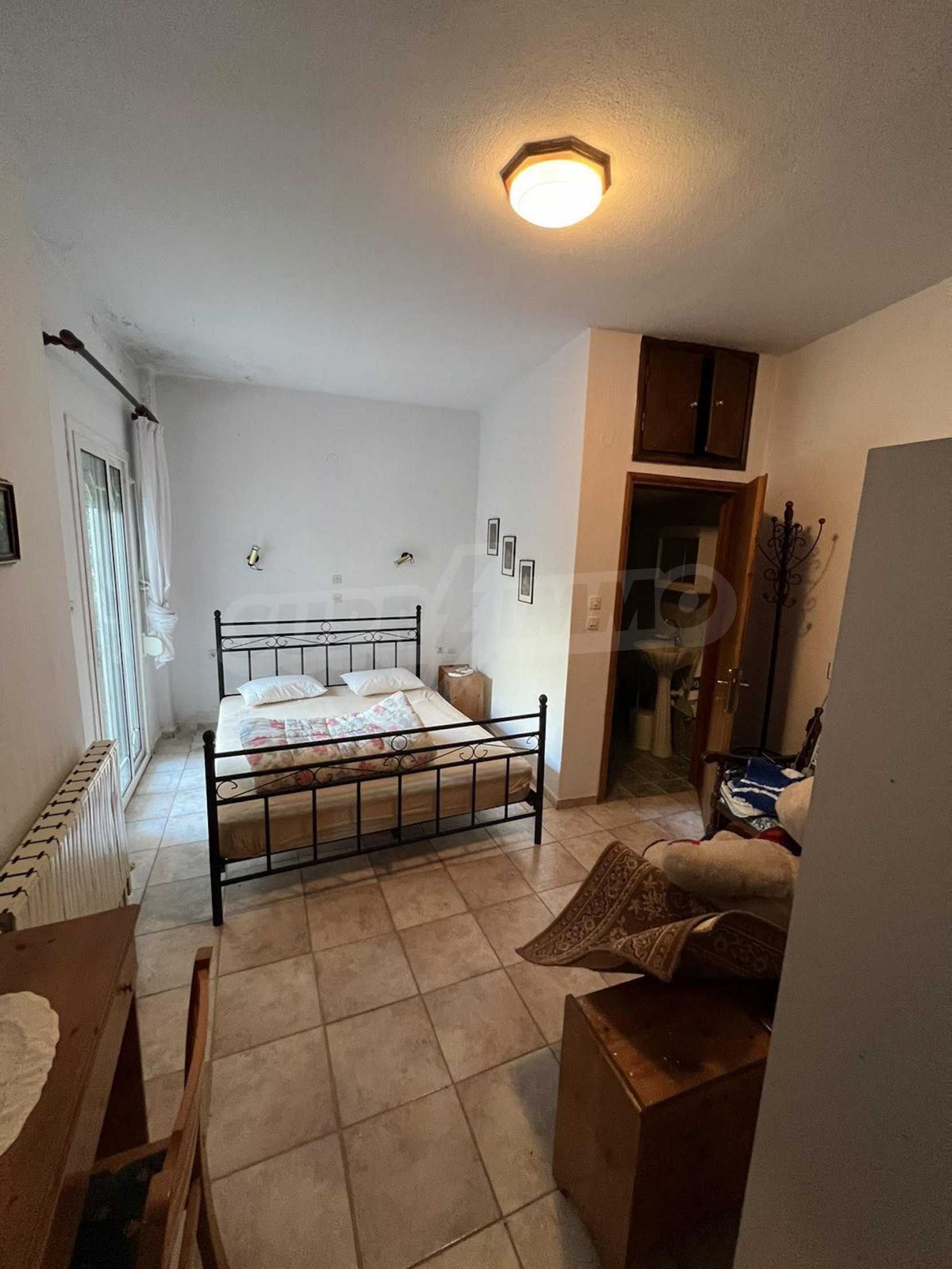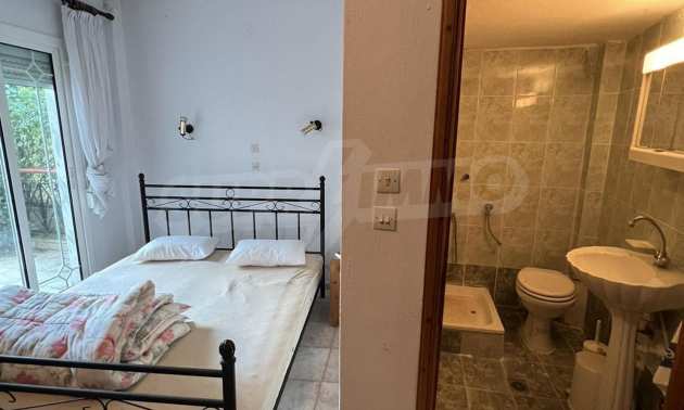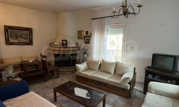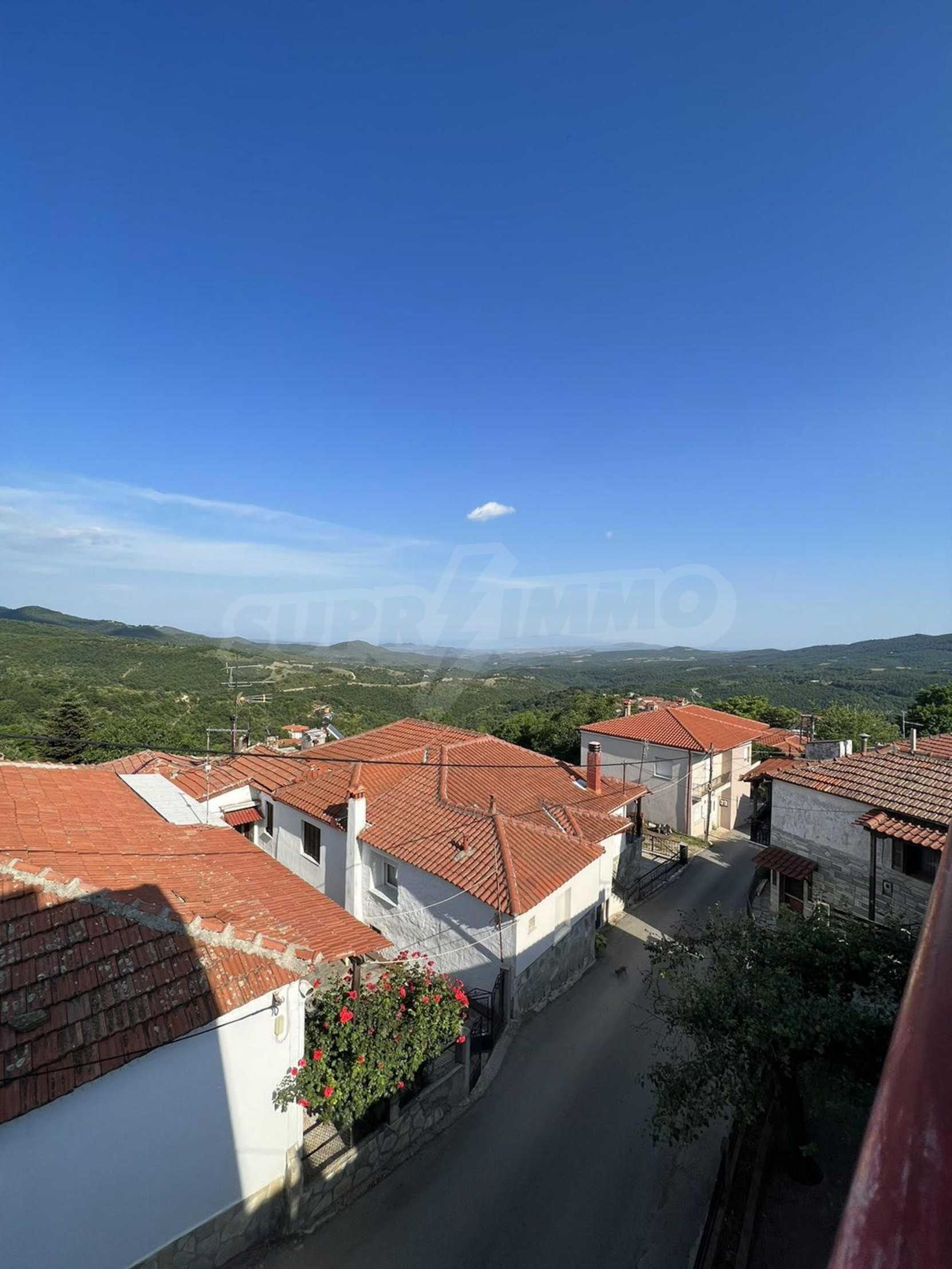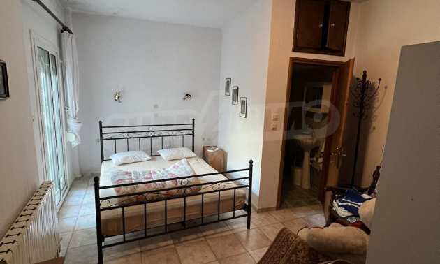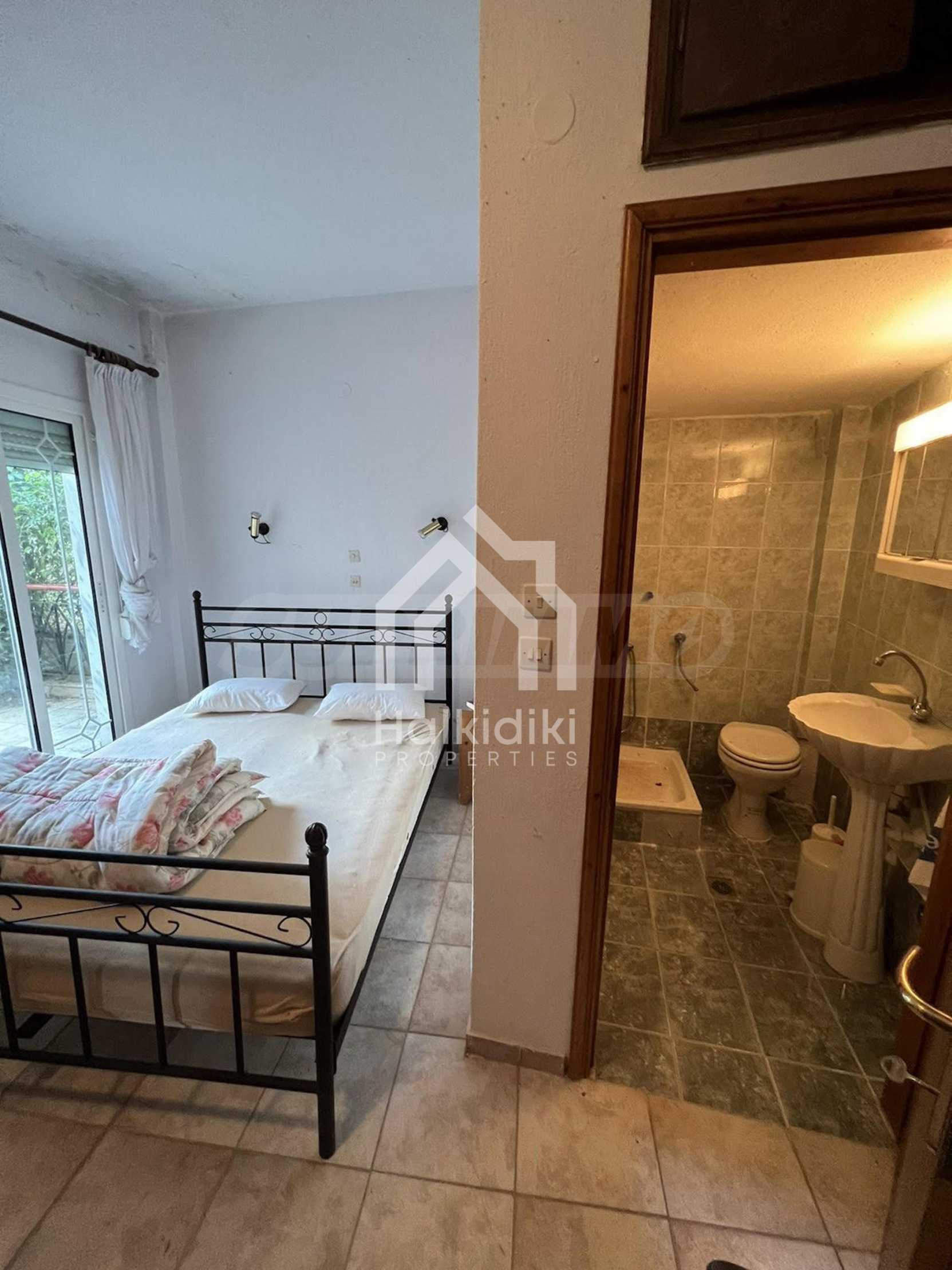 Това е къща на изключително място в очарователния Халкидики. Разположен е на площ от 386,78 кв.м. Състои се от 3 нива с обща площ от 360 кв.м. Имотът включва 6 спални, склад и 9 бани. Има централно отопление с нафта. Партер и втори етаж са недовършени, а първият е напълно обитаем.