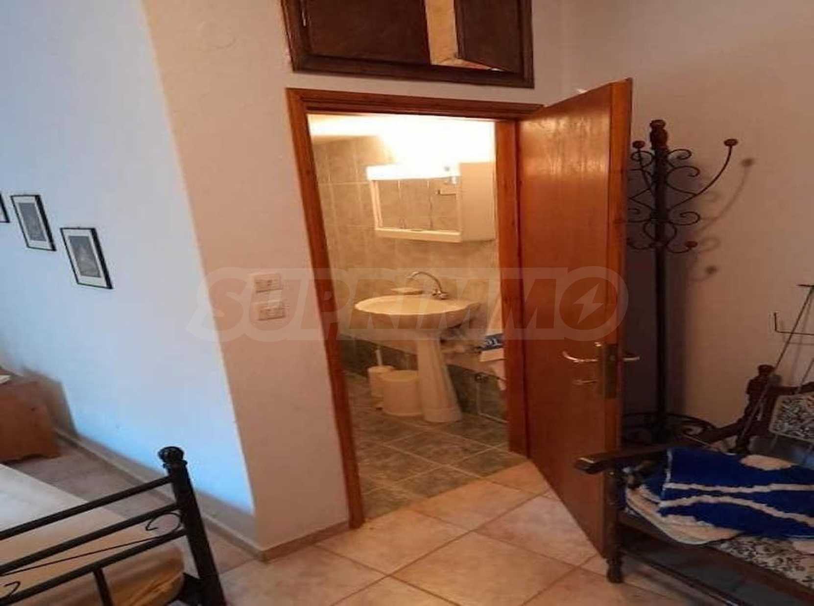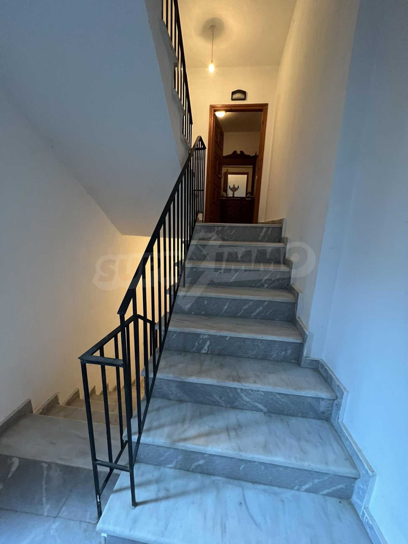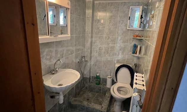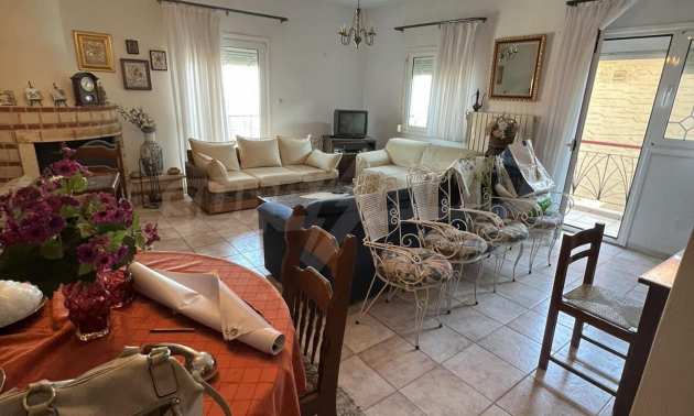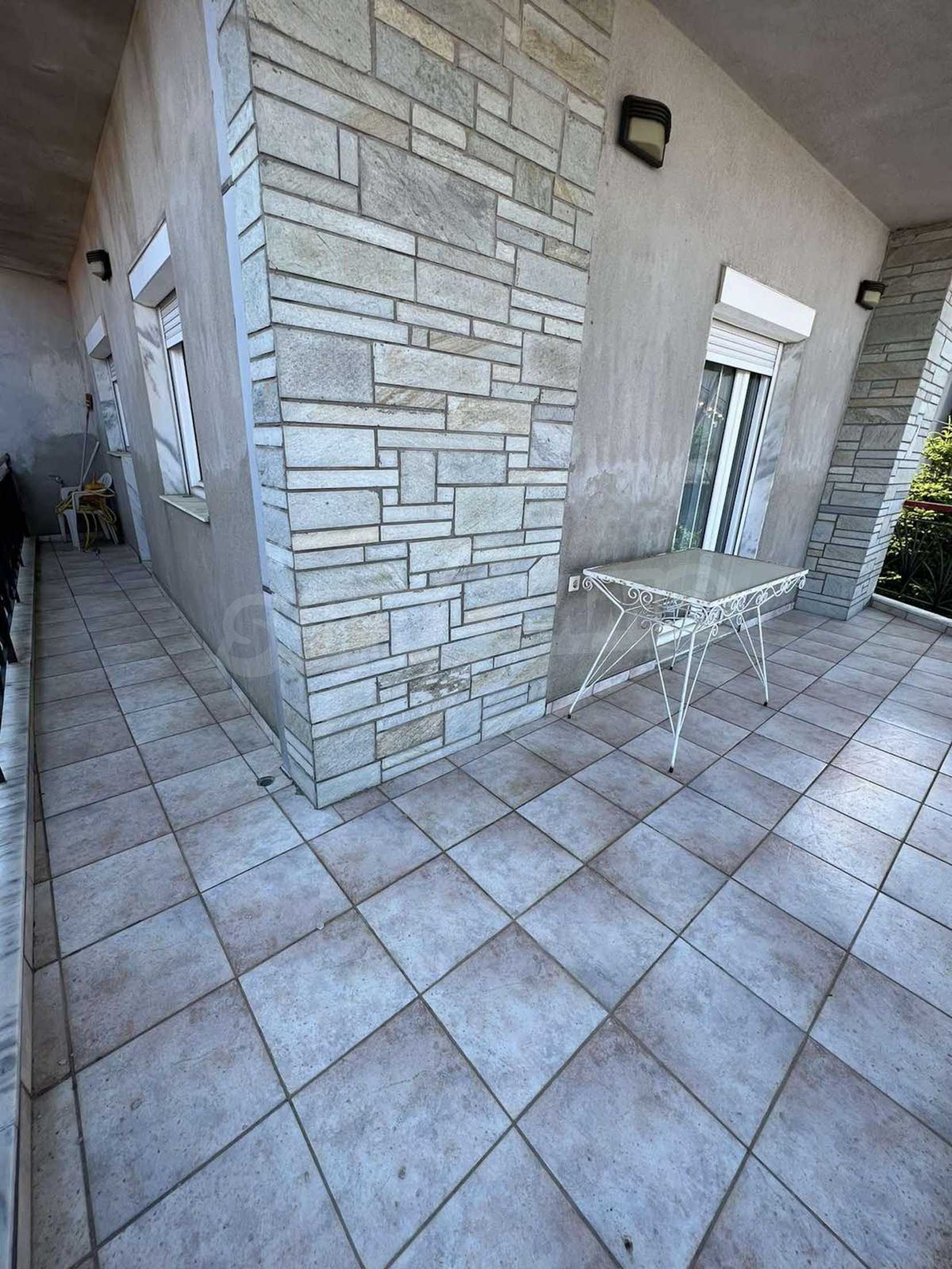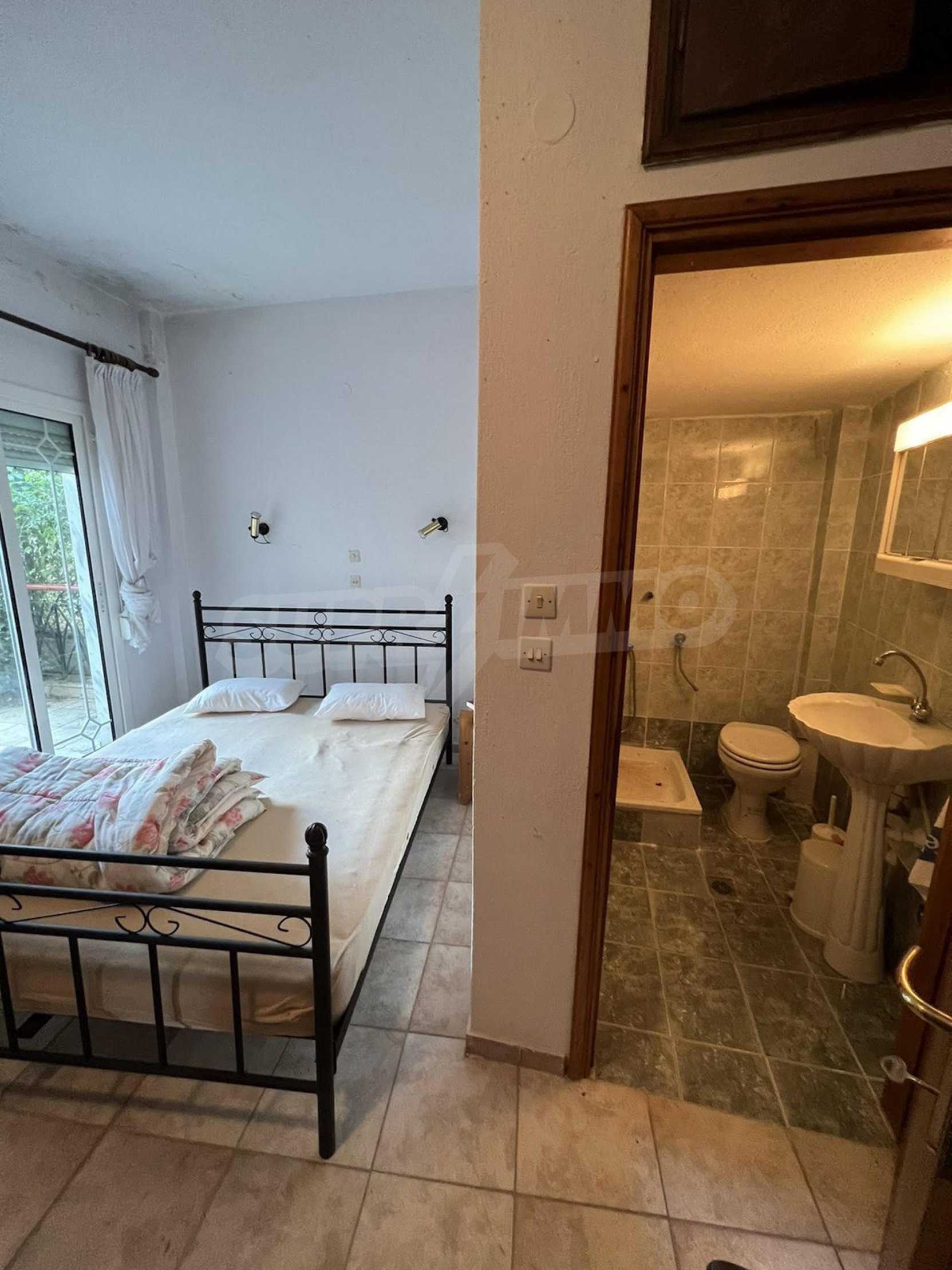 Това е къща на изключително място в очарователния Халкидики. Разположен е на площ от 386,78 кв.м. Състои се от 3 нива с обща площ от 360 кв.м. Имотът включва 6 спални, склад и 9 бани. Има централно отопление с нафта. Партер и втори етаж са недовършени, а първият е напълно обитаем.