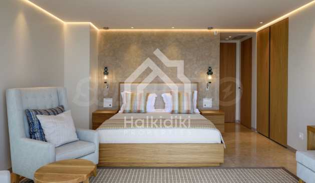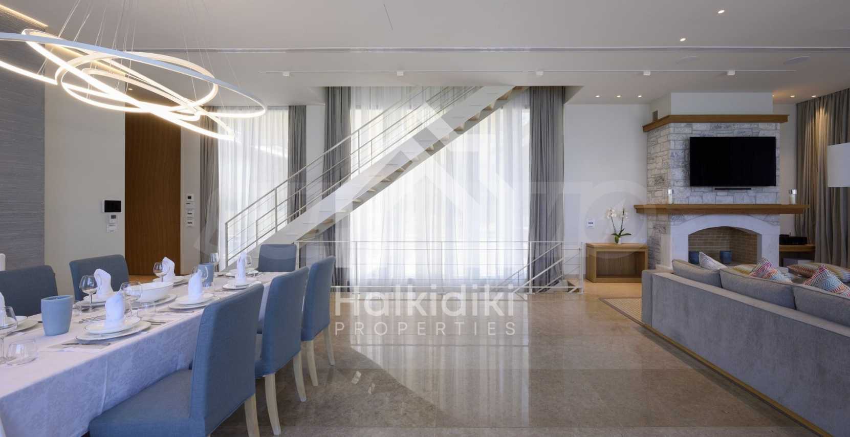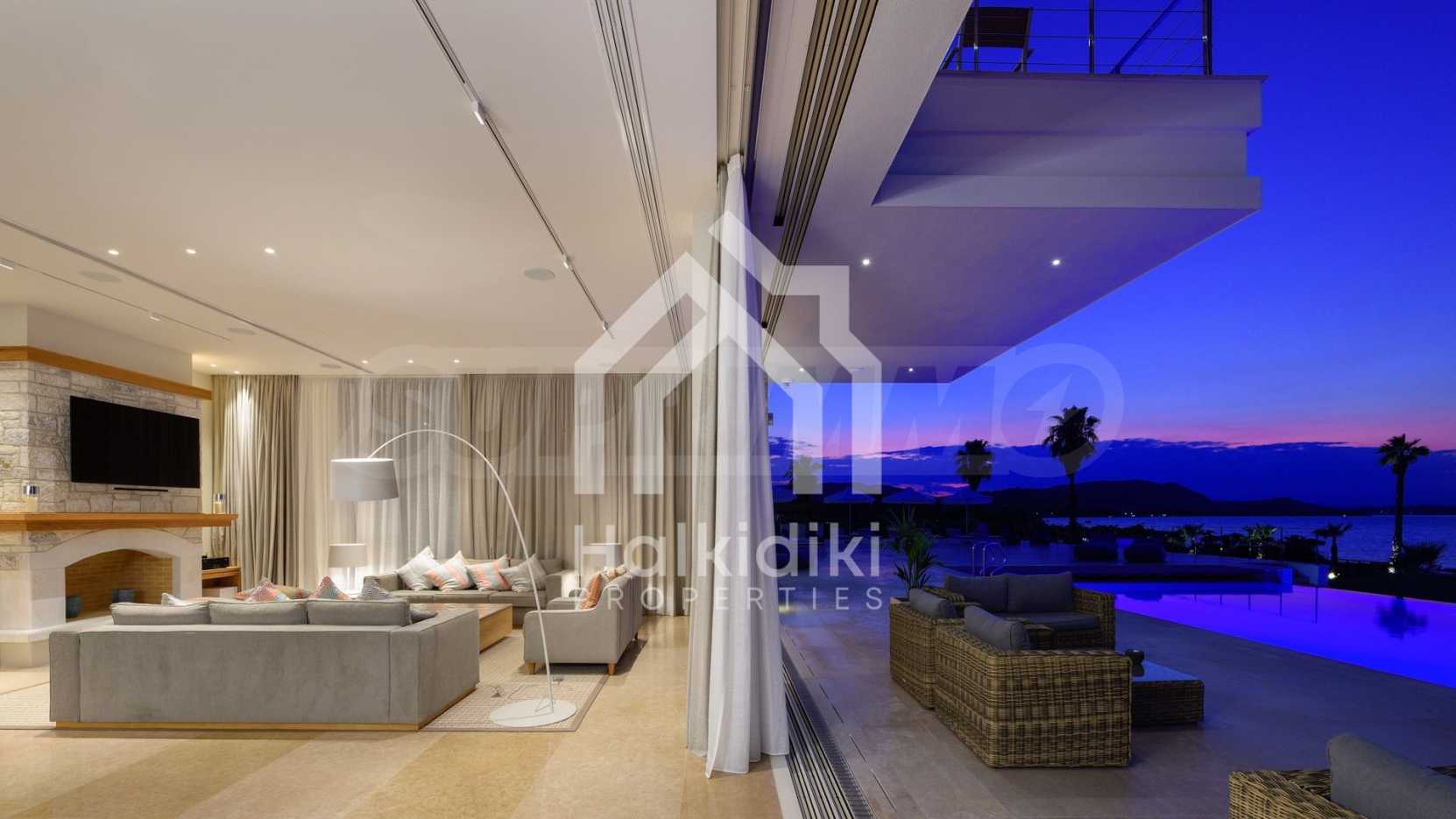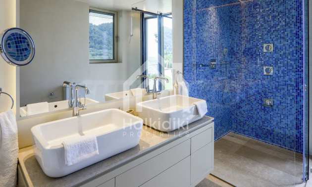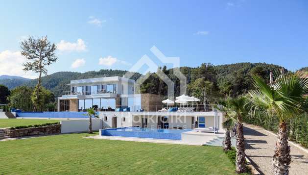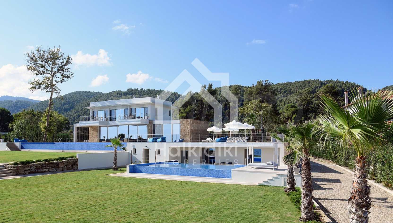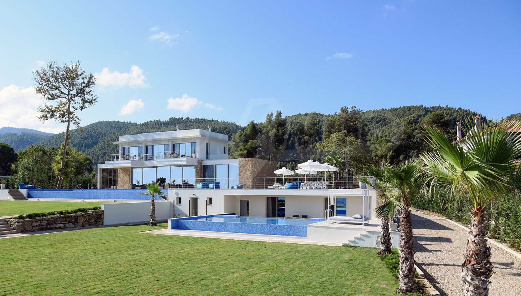 Луксозна резиденция. Красива самостоятелна къща с басейн, пред морето, на много красиво място в Ситония, в сърцето на Халкидики. Имотът се намира на площ от 9599.44 кв.м. , с невероятна гледка към морето, на разстояние 1,3 км от центъра на селото Състои се от 3 нива с общо 1000 кв.м. на жилищна площ. Имотът включва 8 спални, 2 WC. , склад и 8 бани(и)