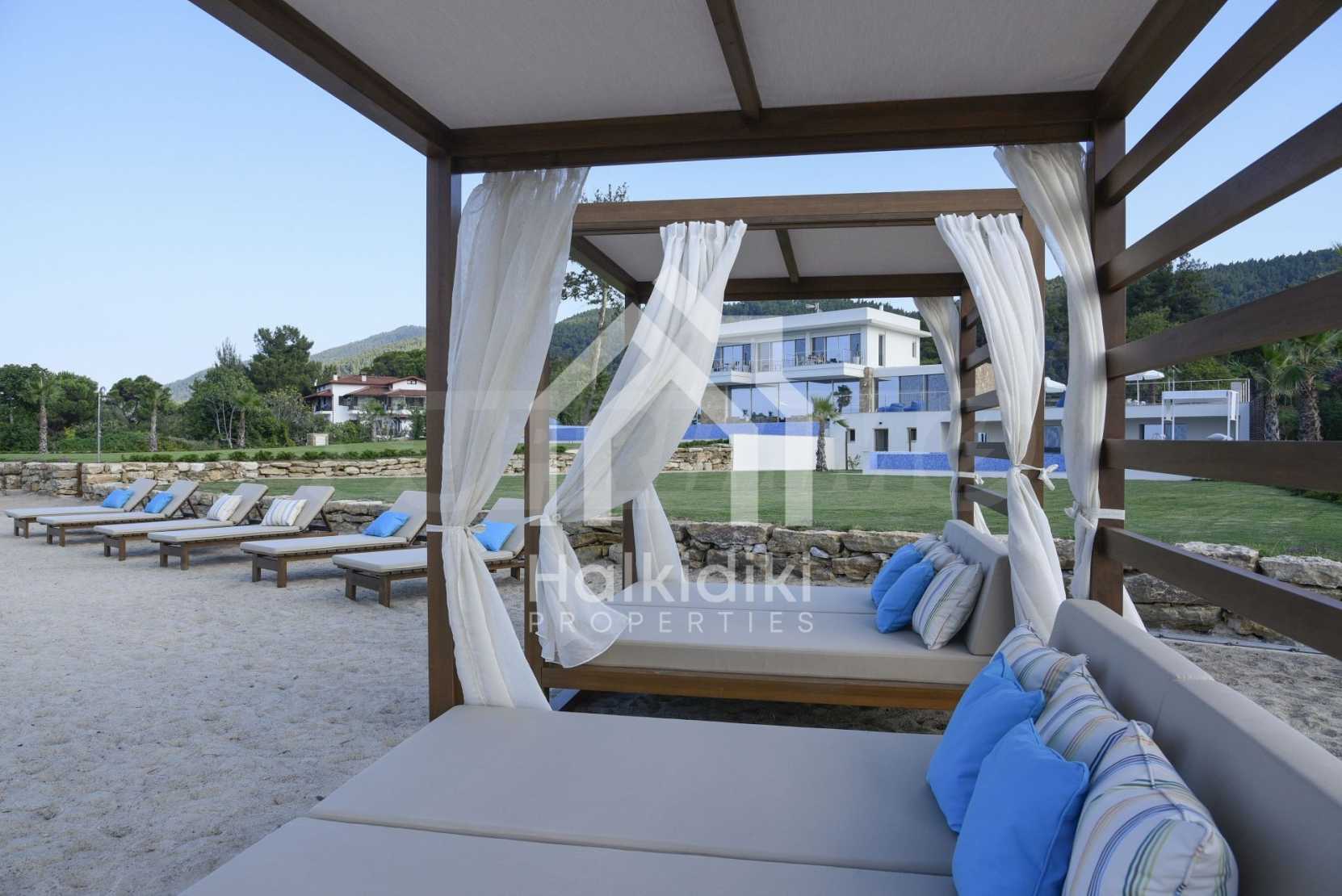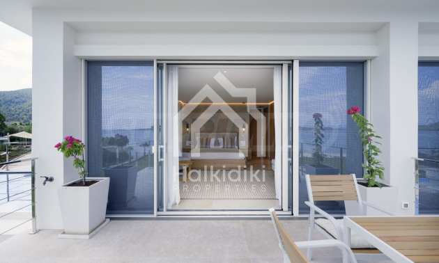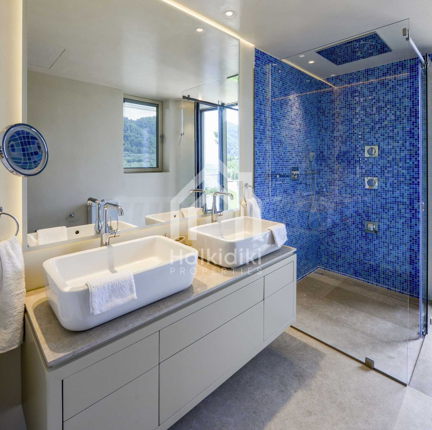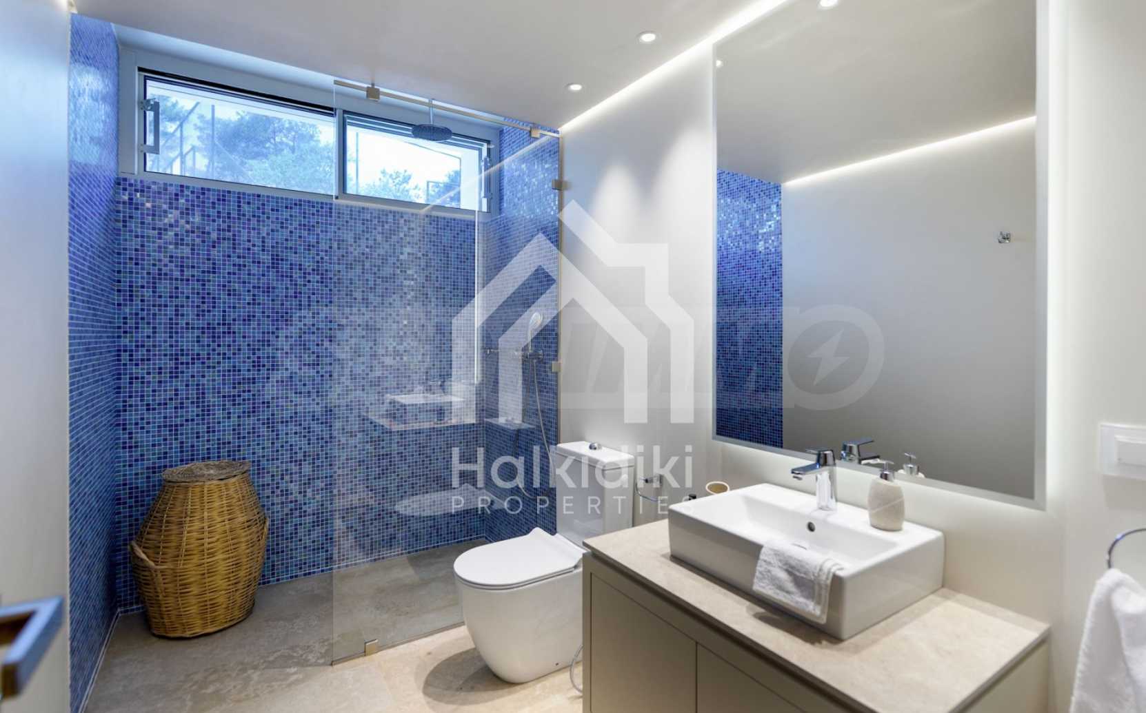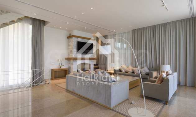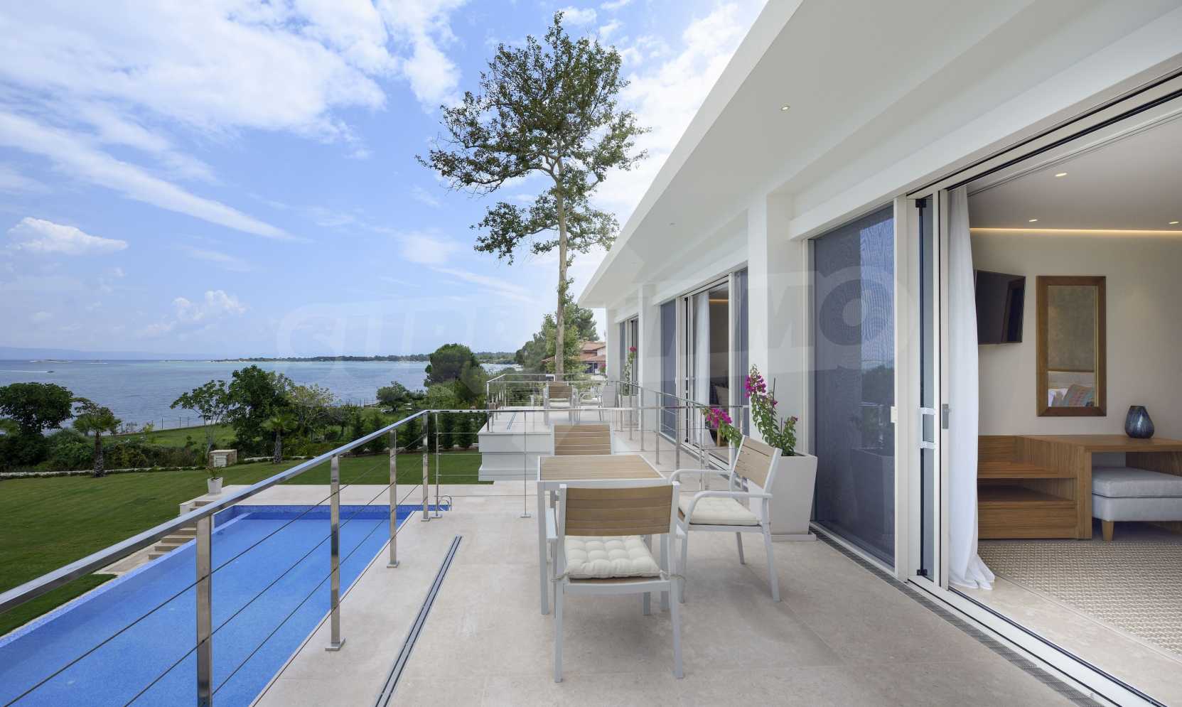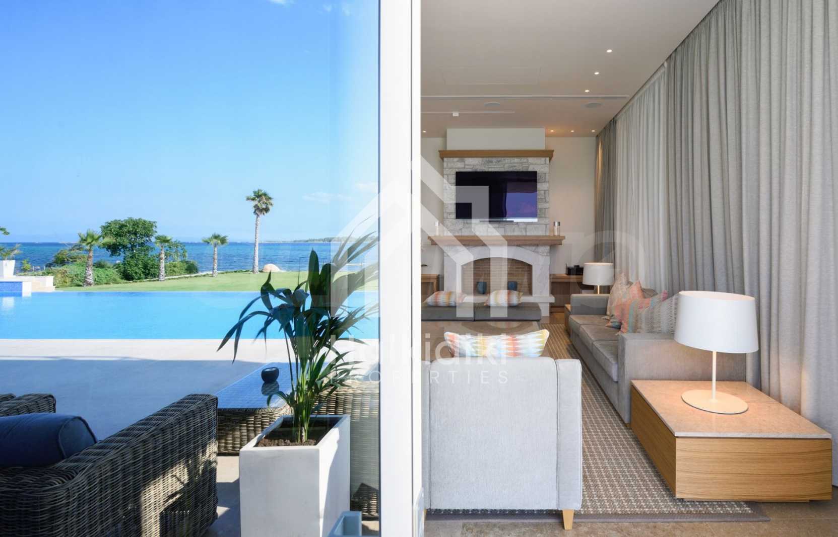 Луксозна резиденция. Красива самостоятелна къща с басейн, пред морето, на много красиво място в Ситония, в сърцето на Халкидики. Имотът се намира на площ от 9599.44 кв.м. , с невероятна гледка към морето, на разстояние 1,3 км от центъра на селото Състои се от 3 нива с общо 1000 кв.м. на жилищна площ. Имотът включва 8 спални, 2 WC. , склад и 8 бани(и)