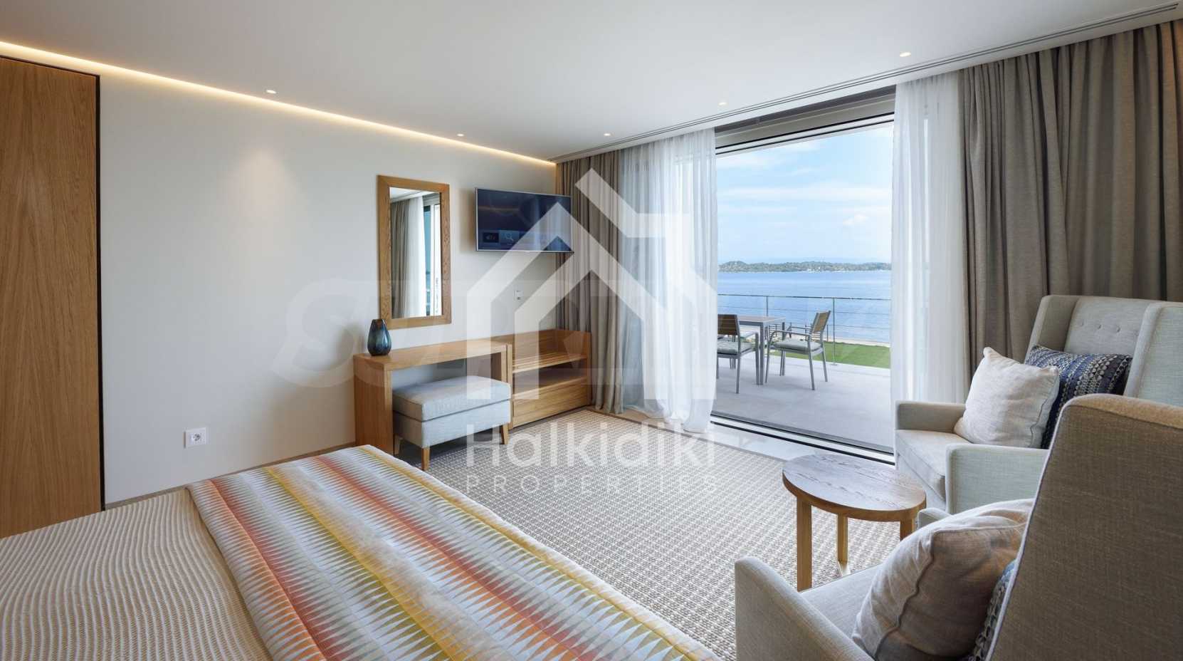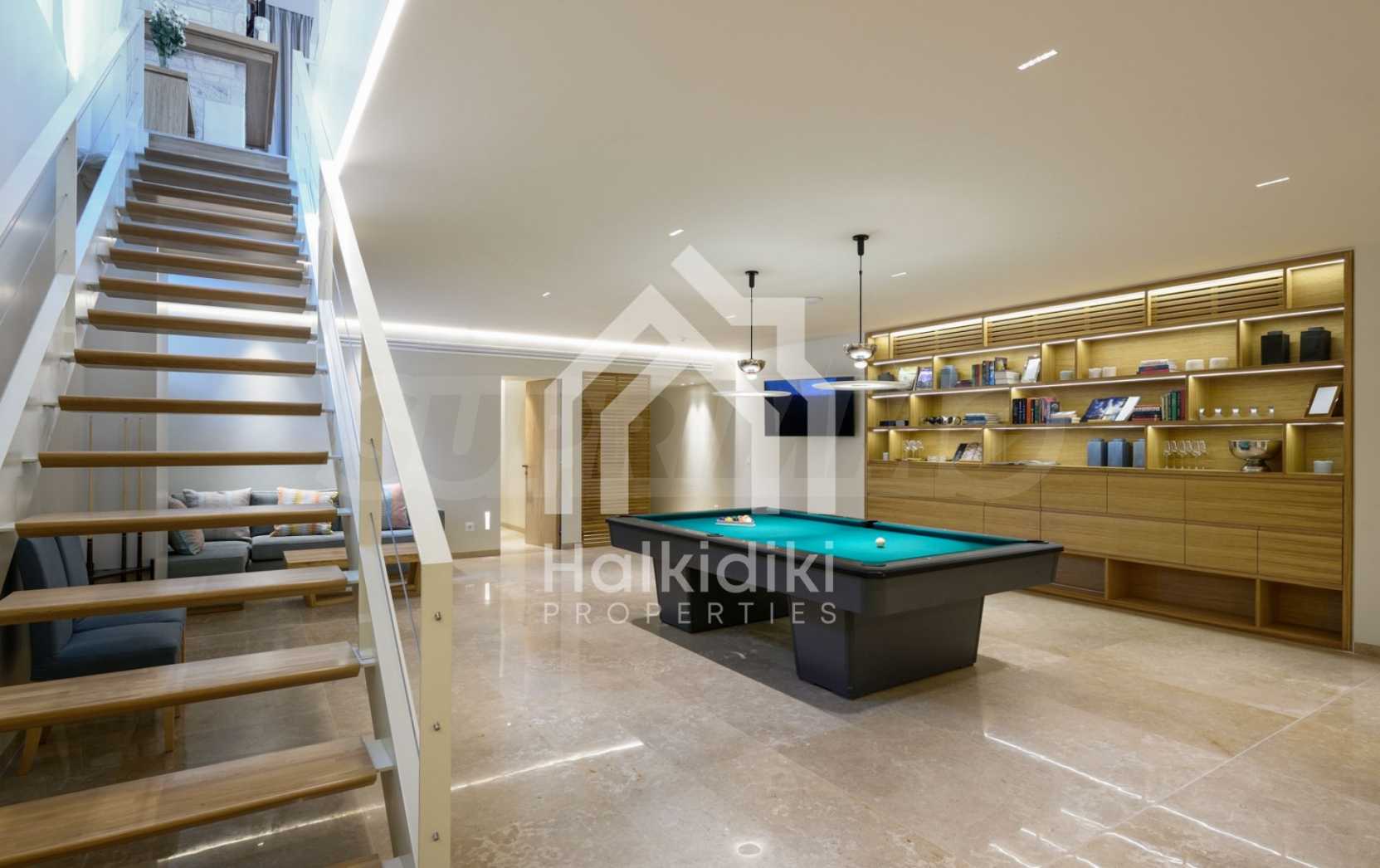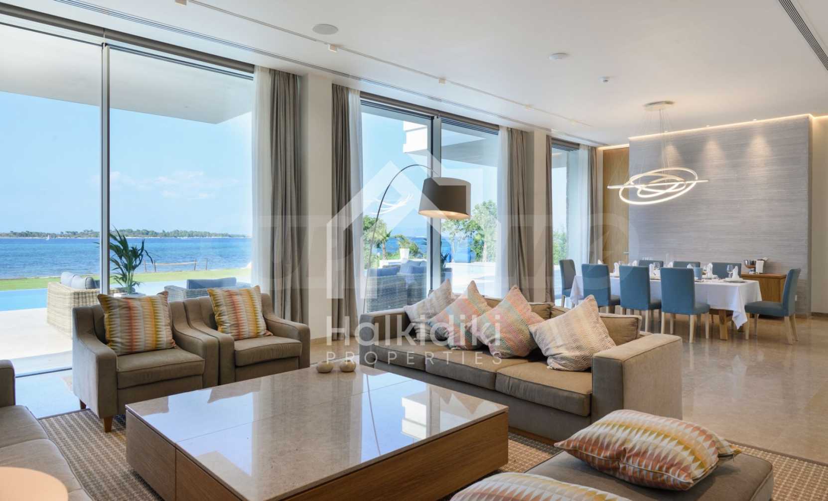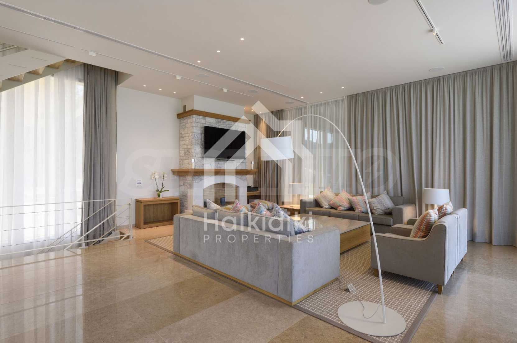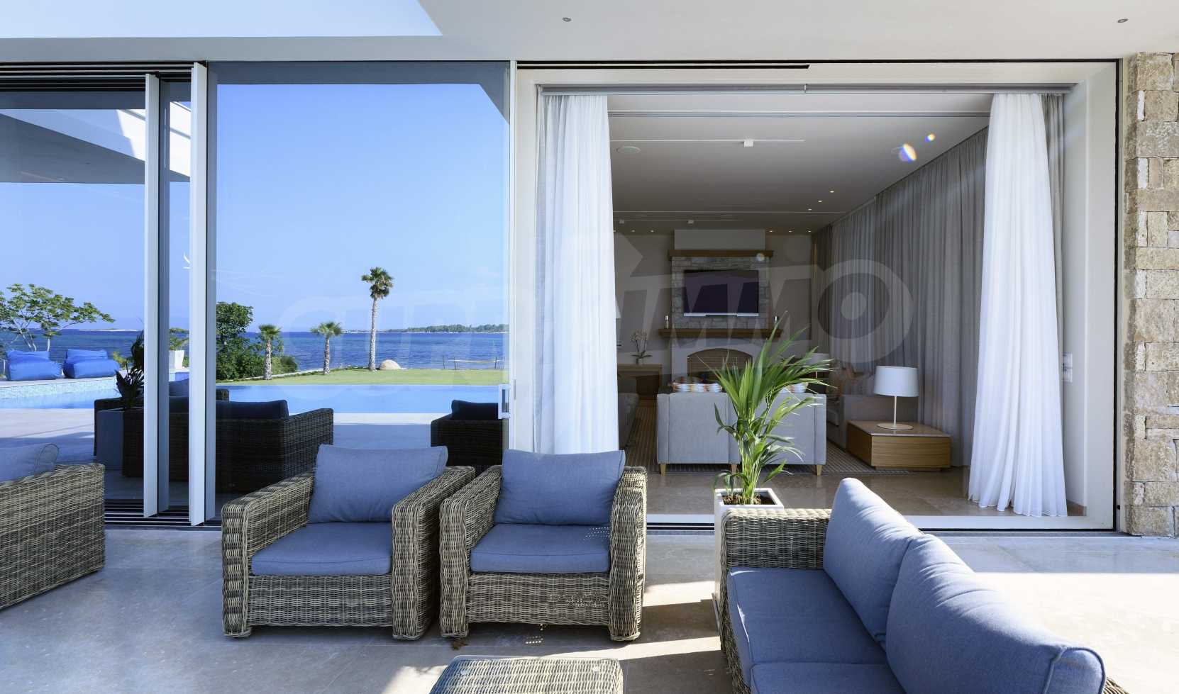 Луксозна резиденция. Красива самостоятелна къща с басейн, пред морето, на много красиво място в Ситония, в сърцето на Халкидики. Имотът се намира на площ от 9599.44 кв.м. , с невероятна гледка към морето, на разстояние 1,3 км от центъра на селото Състои се от 3 нива с общо 1000 кв.м. на жилищна площ. Имотът включва 8 спални, 2 WC. , склад и 8 бани(и)