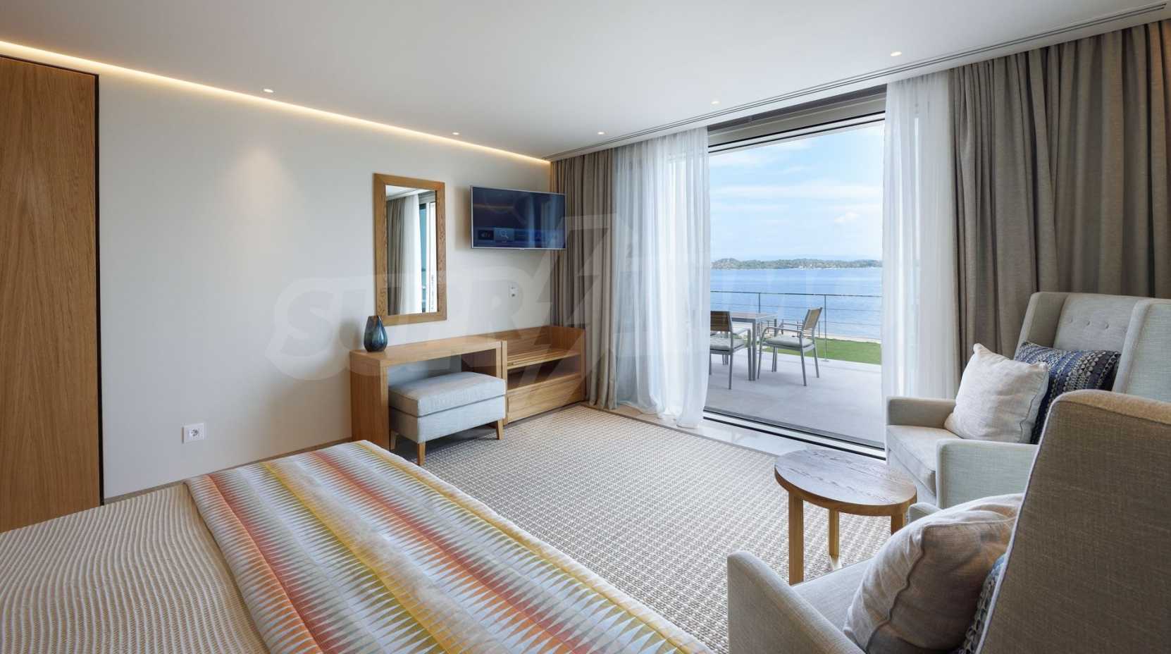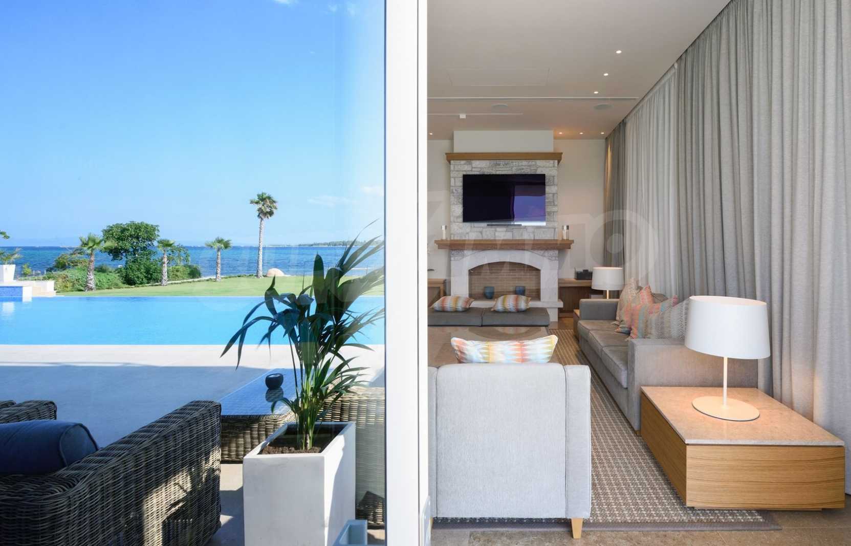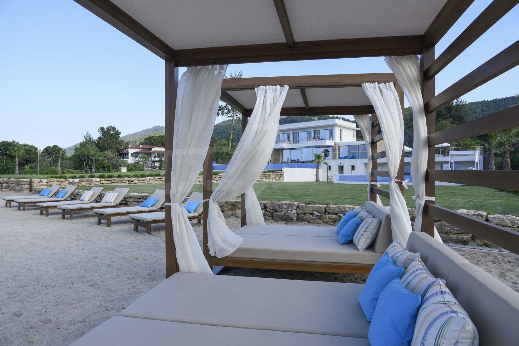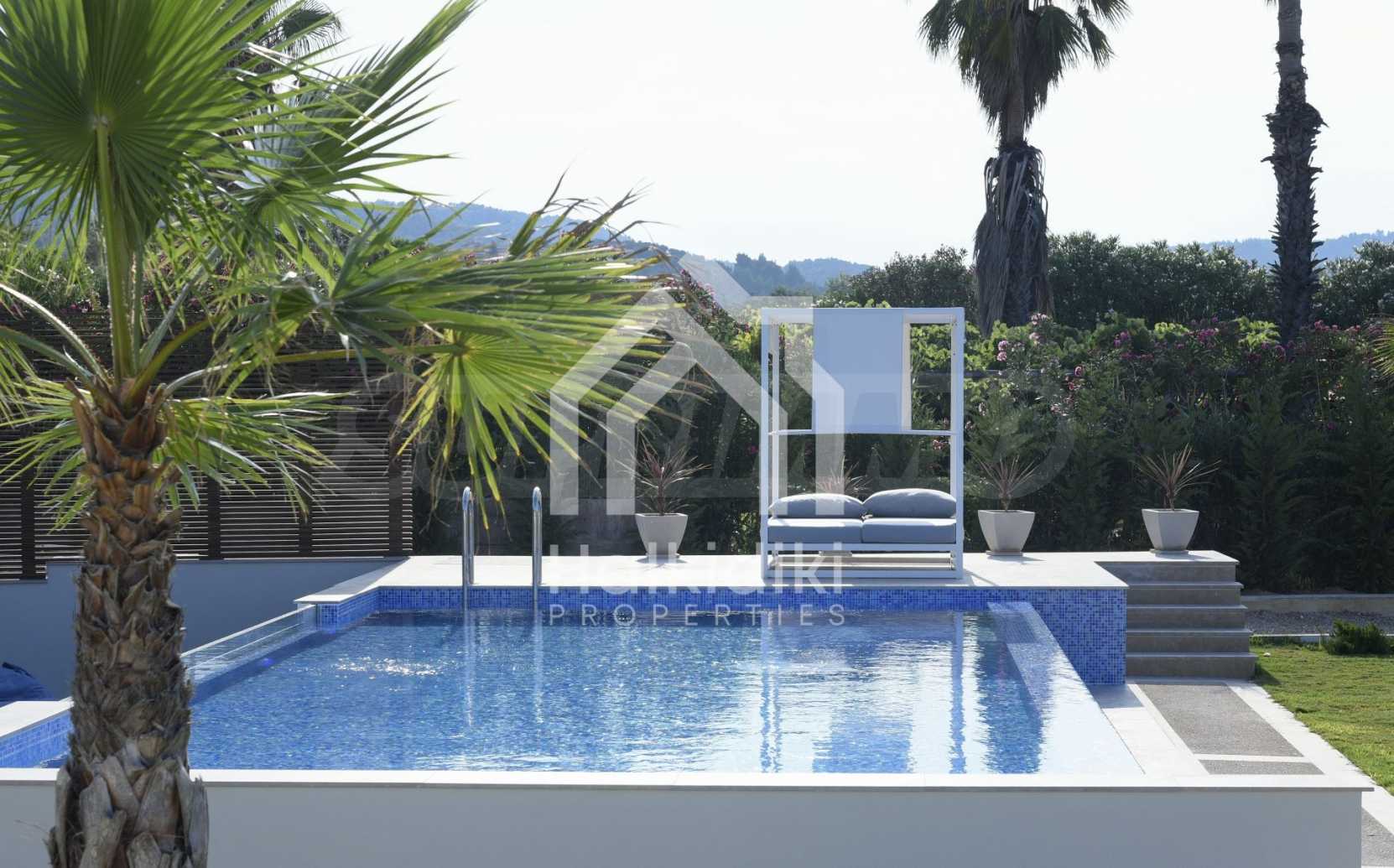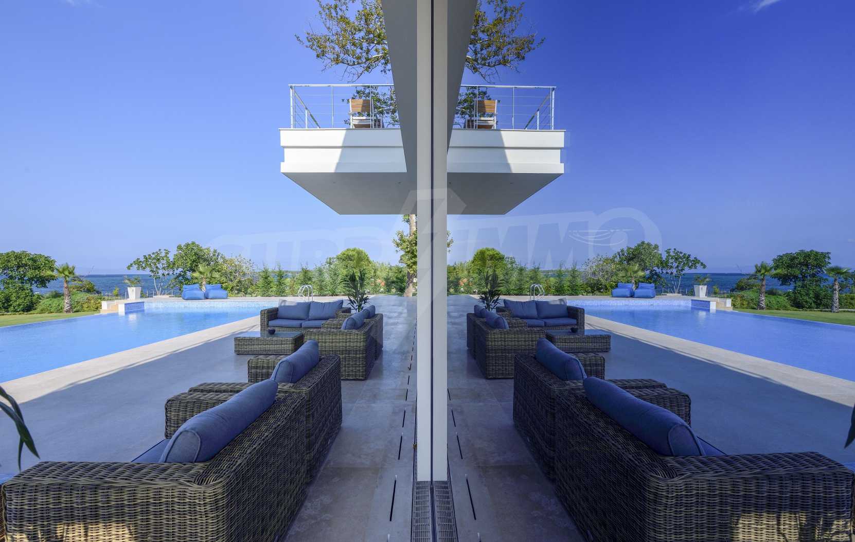 Луксозна резиденция. Красива самостоятелна къща с басейн, пред морето, на много красиво място в Ситония, в сърцето на Халкидики. Имотът се намира на площ от 9599.44 кв.м. , с невероятна гледка към морето, на разстояние 1,3 км от центъра на селото Състои се от 3 нива с общо 1000 кв.м. на жилищна площ. Имотът включва 8 спални, 2 WC. , склад и 8 бани(и)