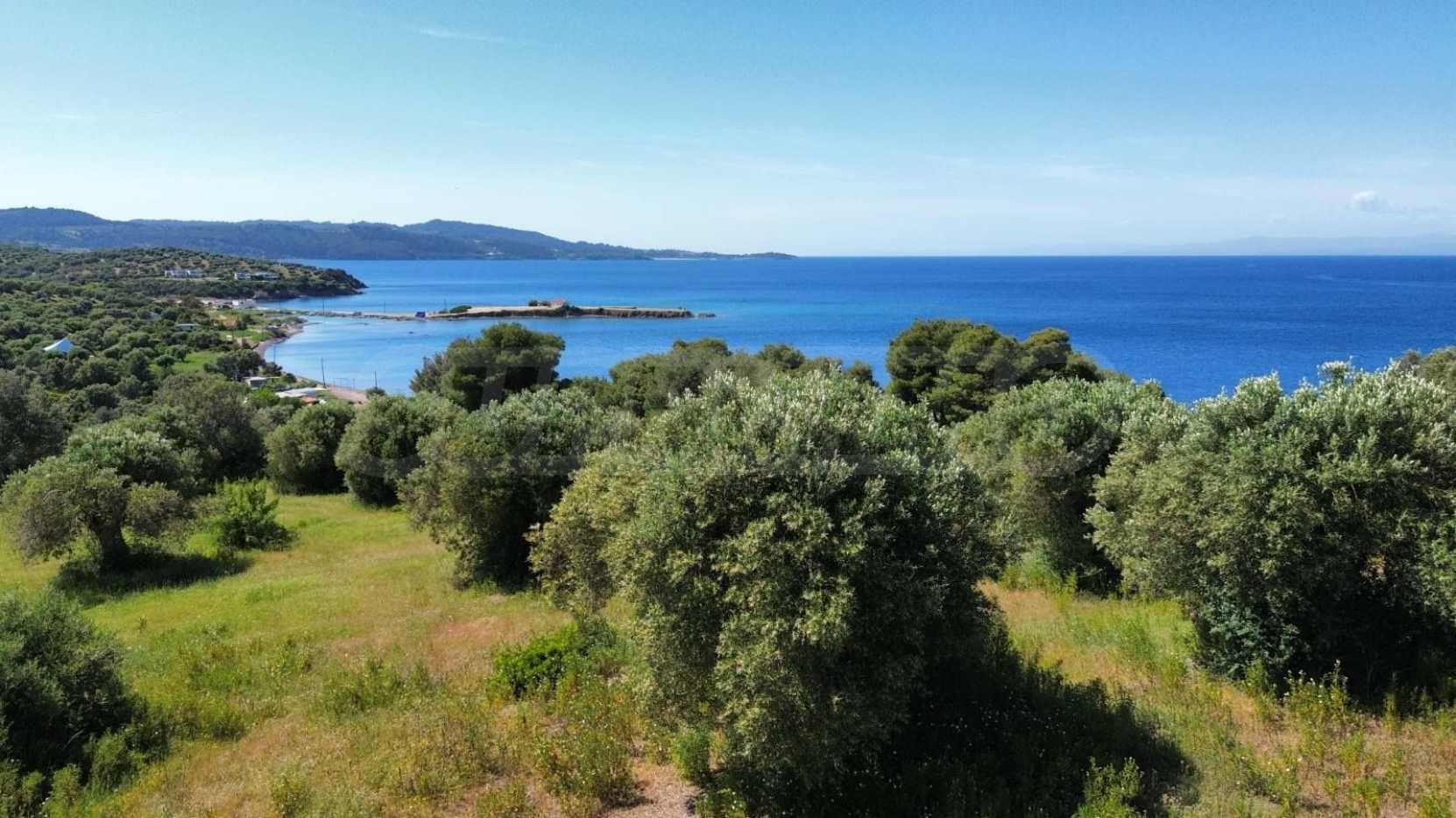 Изключителен терен с площ от 8000 кв.м. Земята е застроителна по стандартни правила. . Намира се извън плана, на забележително място в Касандра, Халкидики. Намира се на пешеходно разстояние от морето. Гледката към морето е изключителна. , а ориентацията е южна.