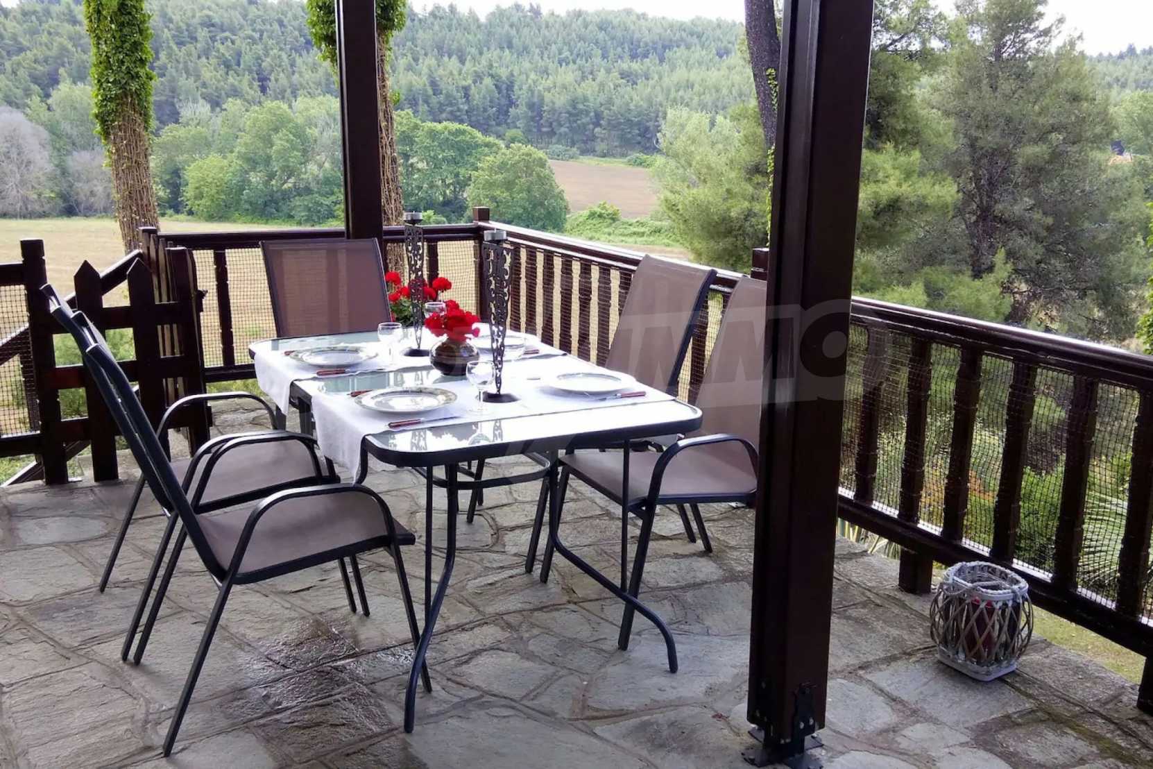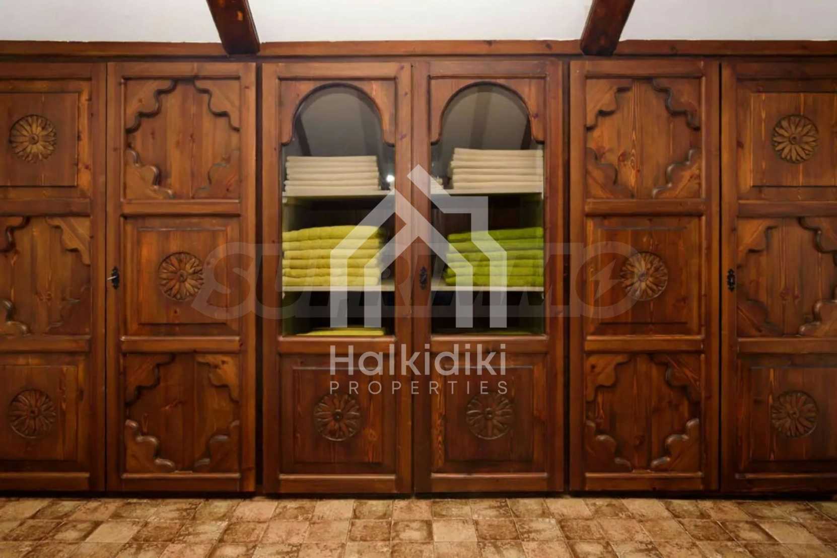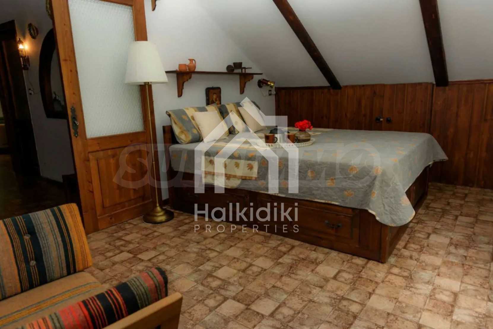 Уникална самостоятелна къща на забележително място в Касандра, в сърцето на Халкидики. Имотът се намира на площ от 2000 кв.м. на разстояние 4.1 .km от центъра на селото Състои се от 3 нива с общо 200 кв.м. на жилищна площ. Имотът включва 6 спални(и), склад и 3 бани(и)