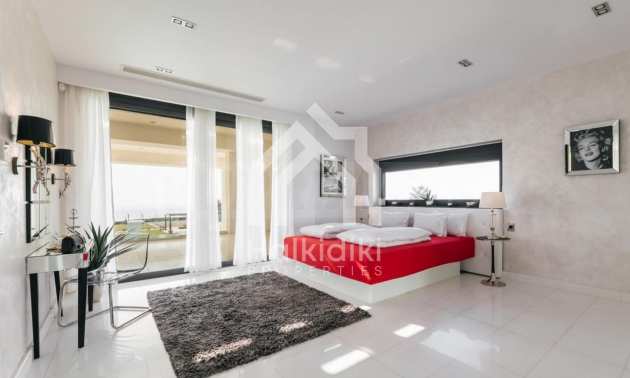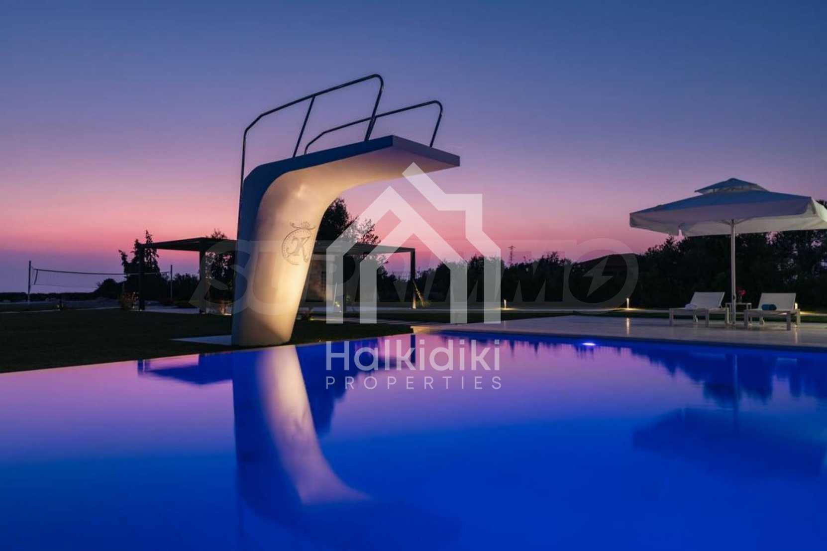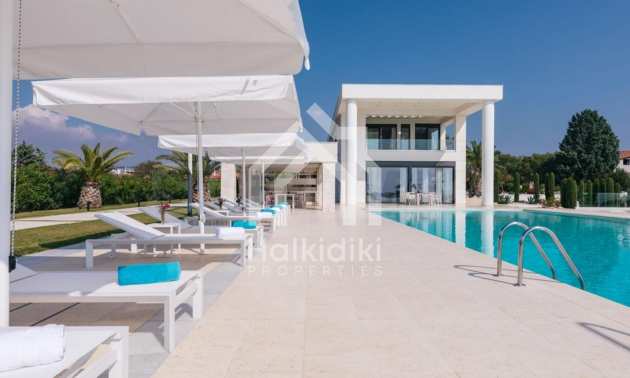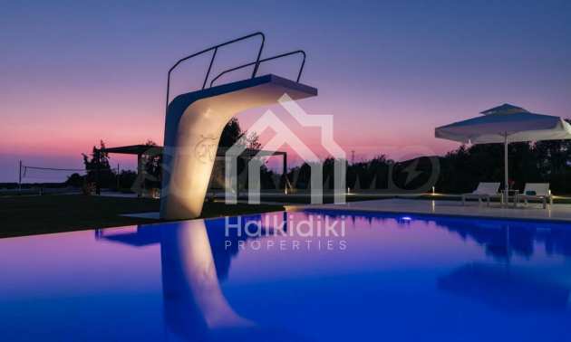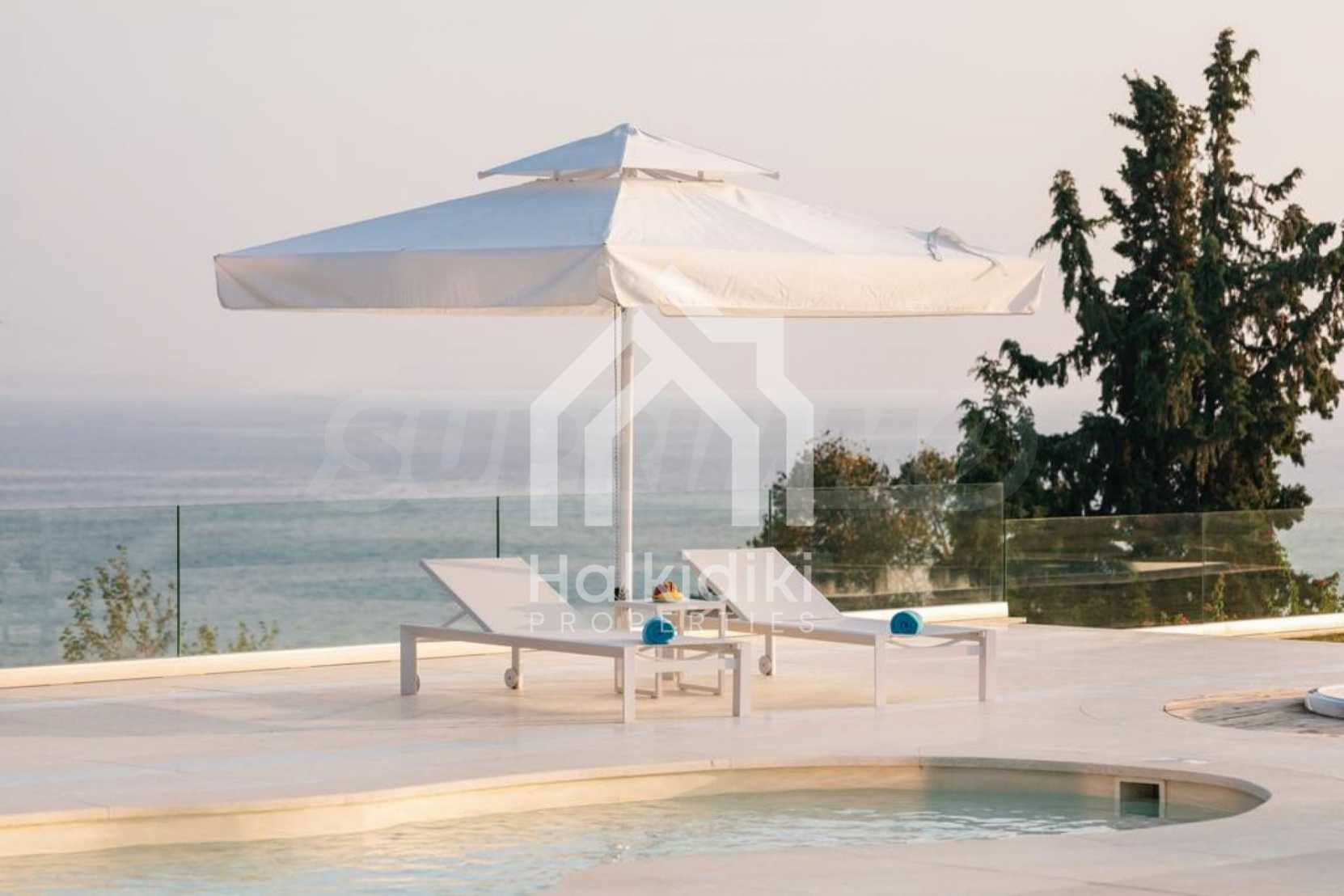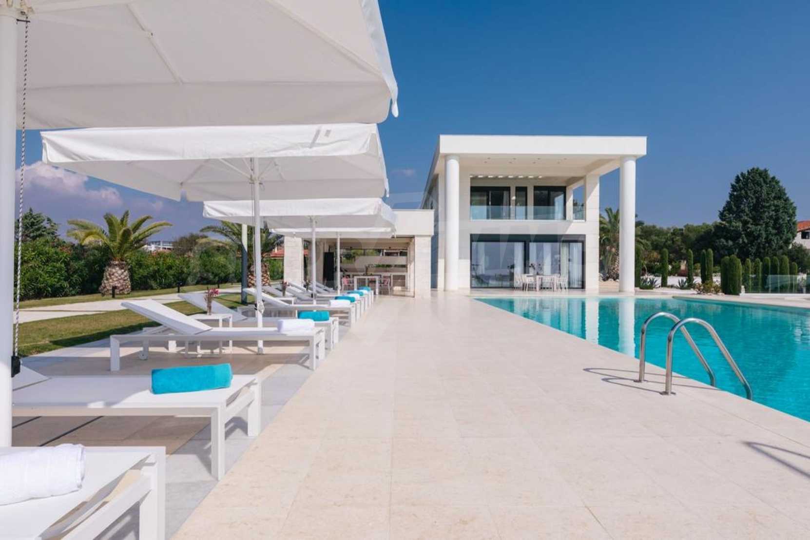 Луксозен имот, Красива самостоятелна къща с басейн, Пред морето, на много красиво място в Касандра, в малкия рай на Халкидики. Имотът се намира на площ от 6000 кв.м. , с невероятна гледка към морето, на разстояние 2,7 км от центъра на селото Състои се от 2 нива с общо 600 кв.м. на жилищна площ. Имотът включва 6 спални, 2 WC. , склад и 4 бани(и)