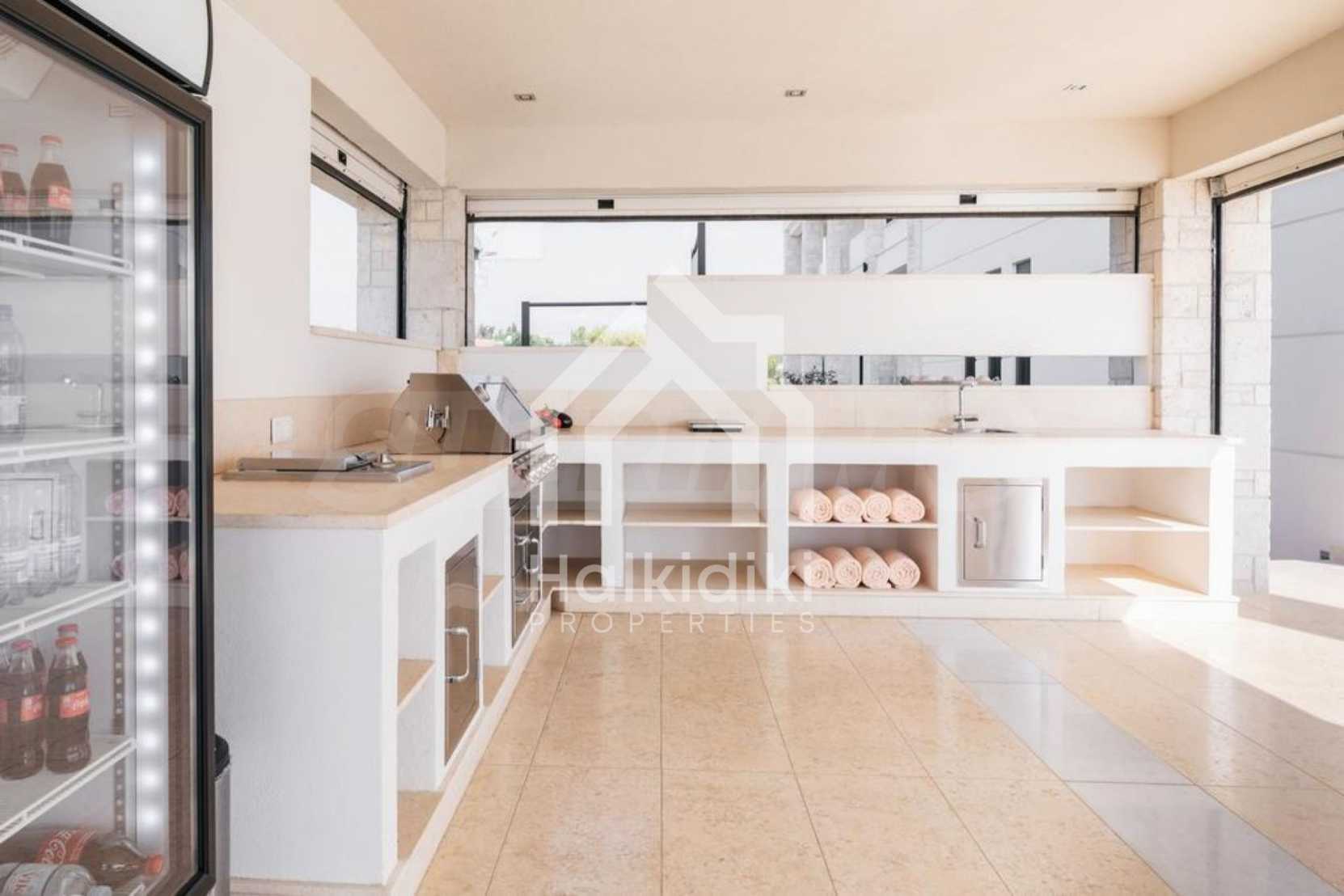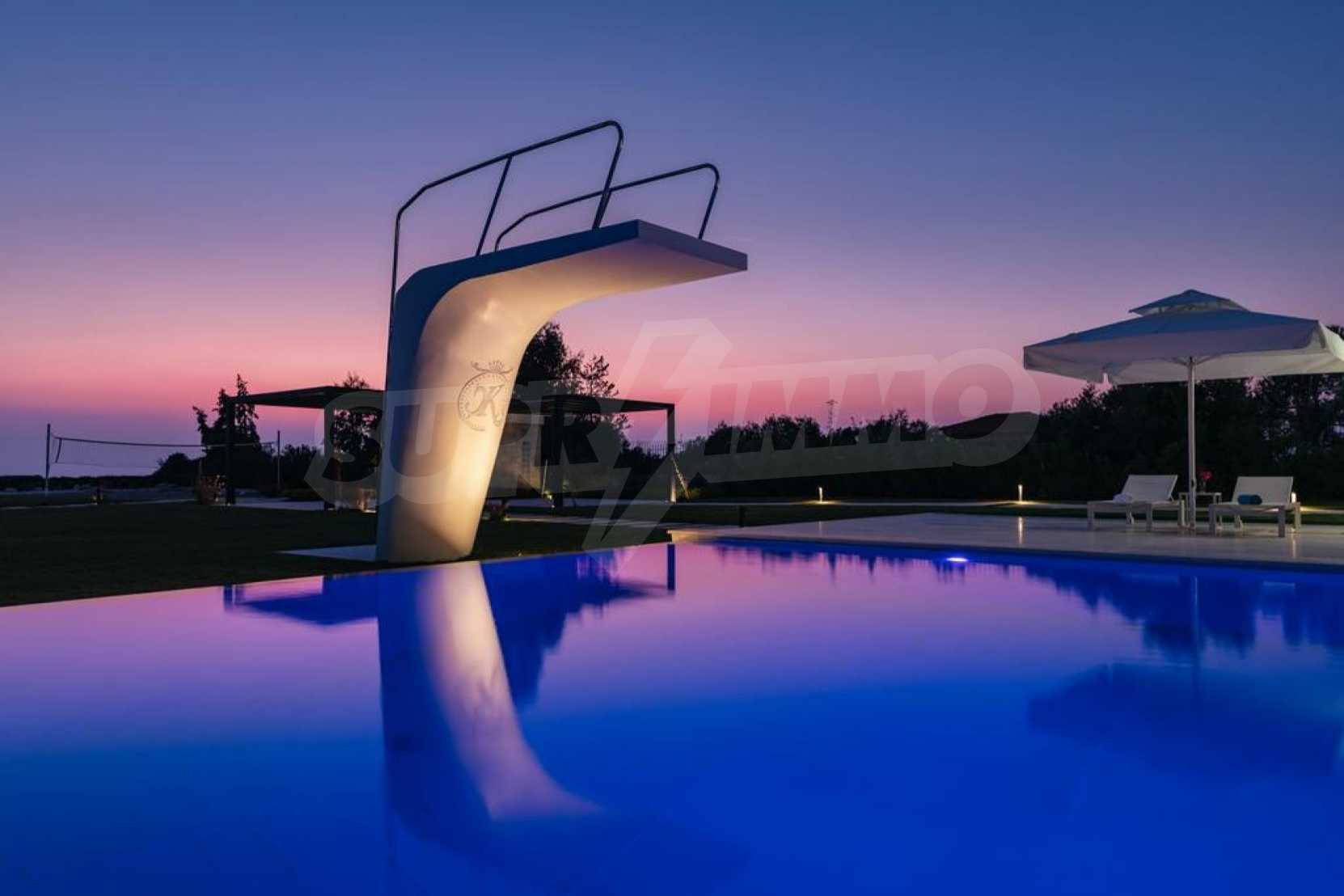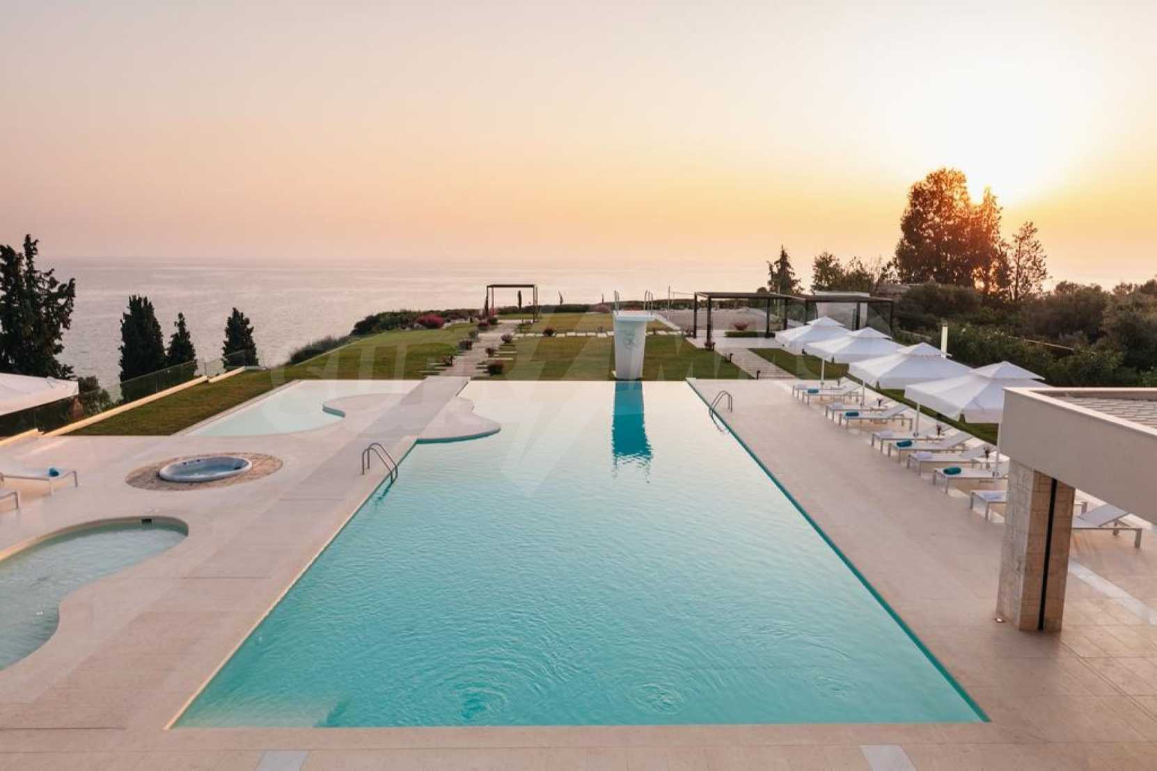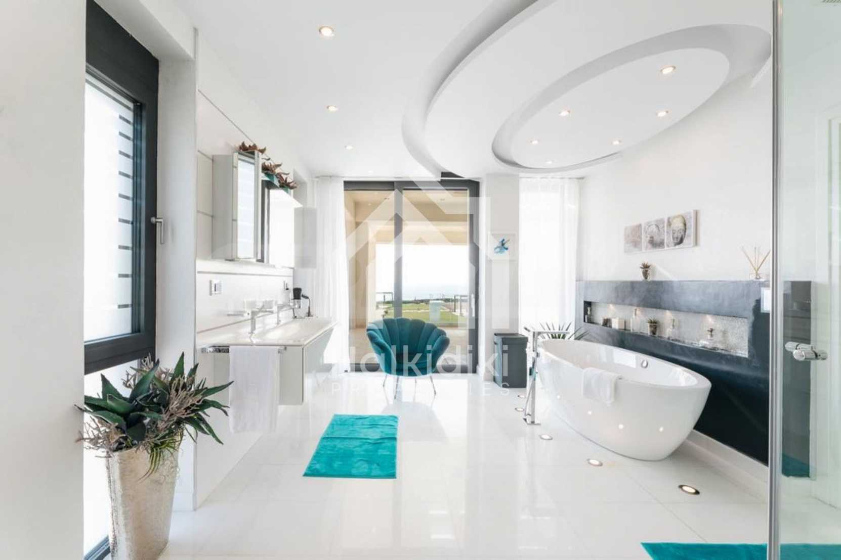 Луксозен имот, Красива самостоятелна къща с басейн, Пред морето, на много красиво място в Касандра, в малкия рай на Халкидики. Имотът се намира на площ от 6000 кв.м. , с невероятна гледка към морето, на разстояние 2,7 км от центъра на селото Състои се от 2 нива с общо 600 кв.м. на жилищна площ. Имотът включва 6 спални, 2 WC. , склад и 4 бани(и)