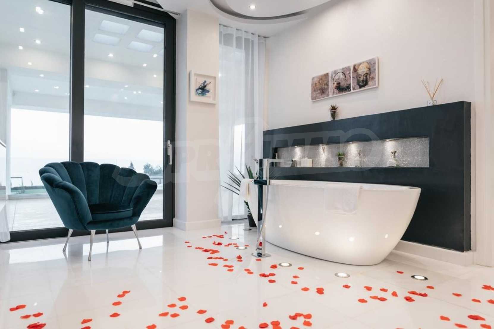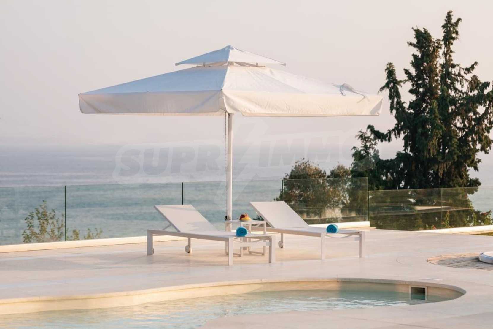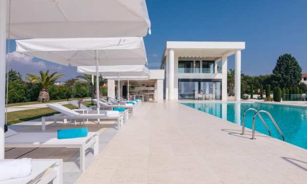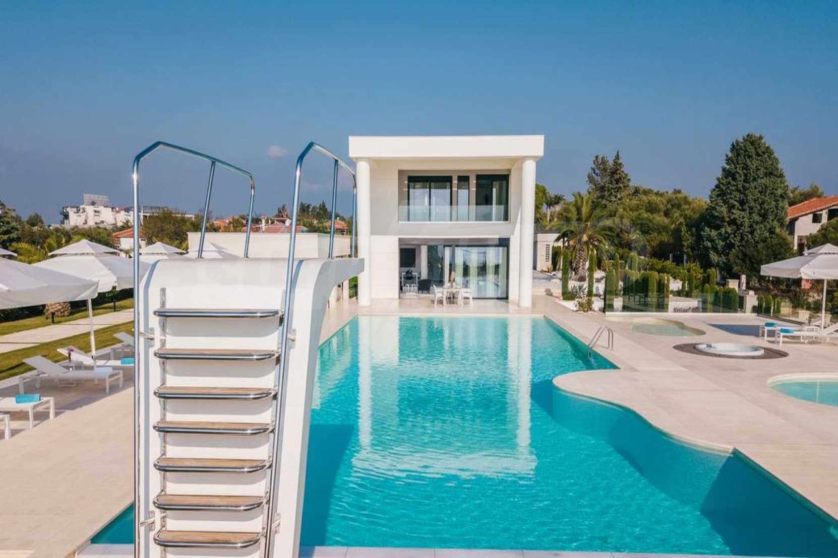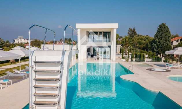 Луксозен имот, Красива самостоятелна къща с басейн, Пред морето, на много красиво място в Касандра, в малкия рай на Халкидики. Имотът се намира на площ от 6000 кв.м. , с невероятна гледка към морето, на разстояние 2,7 км от центъра на селото Състои се от 2 нива с общо 600 кв.м. на жилищна площ. Имотът включва 6 спални, 2 WC. , склад и 4 бани(и)
