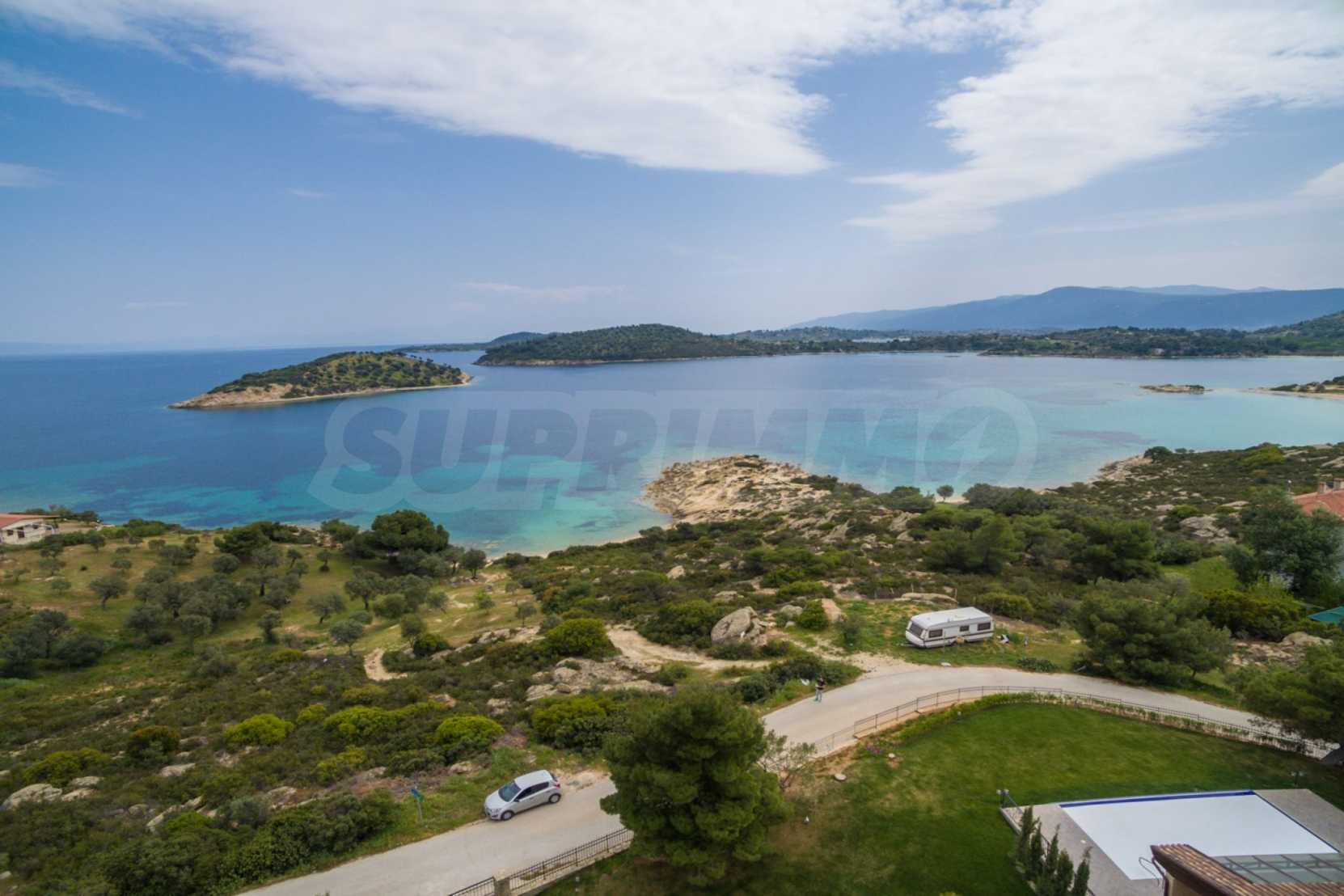 Уникален терен с площ от 4000 кв.м. Парцелът е застроителен по стандартни правила. . Намира се извън плана, на много красиво място в Ситония, Халкидики. Намира се пред морето. Гледката към морето е изключителна. Разстоянието от центъра на местността е 1,0 км, а ориентацията е южна.
