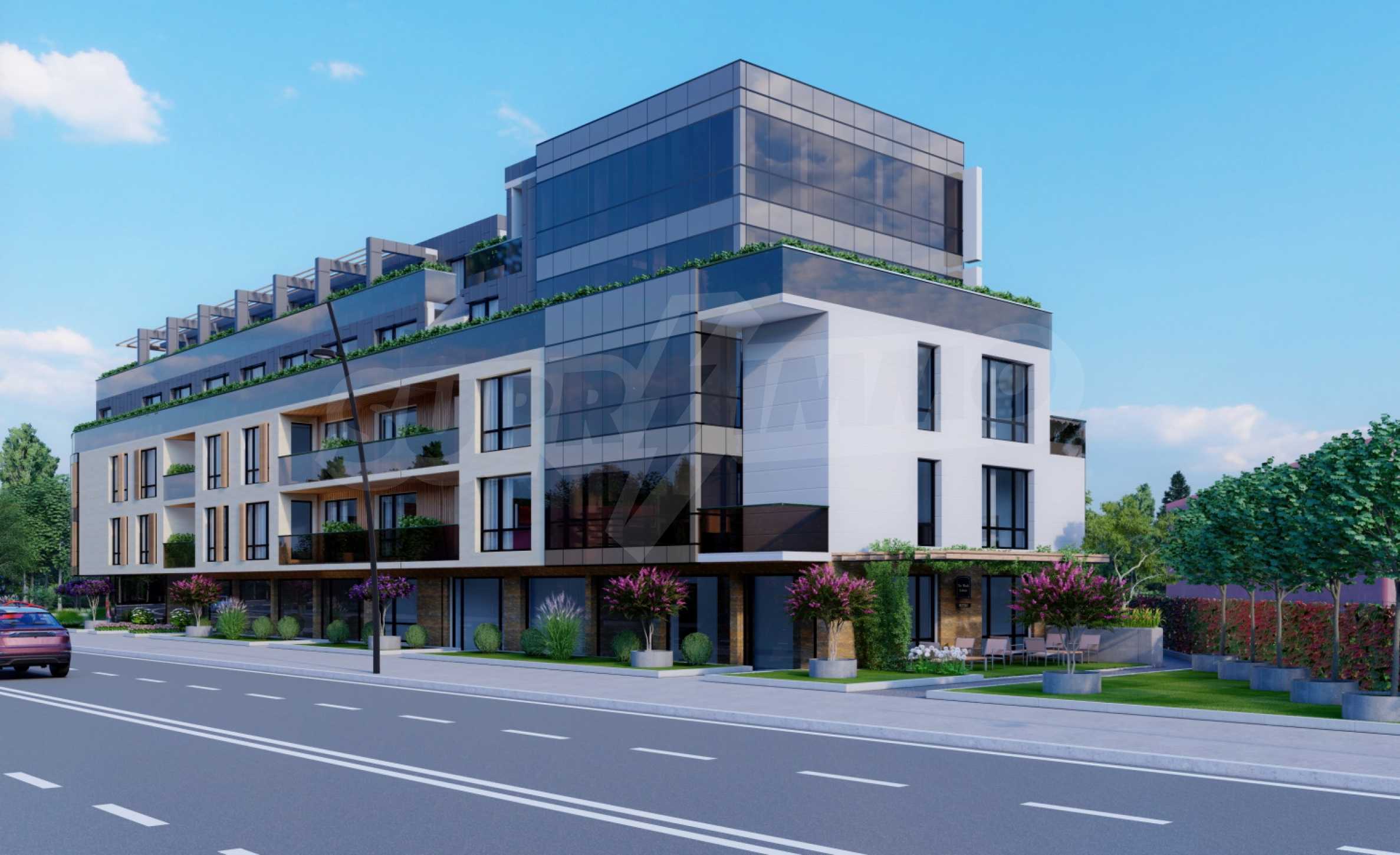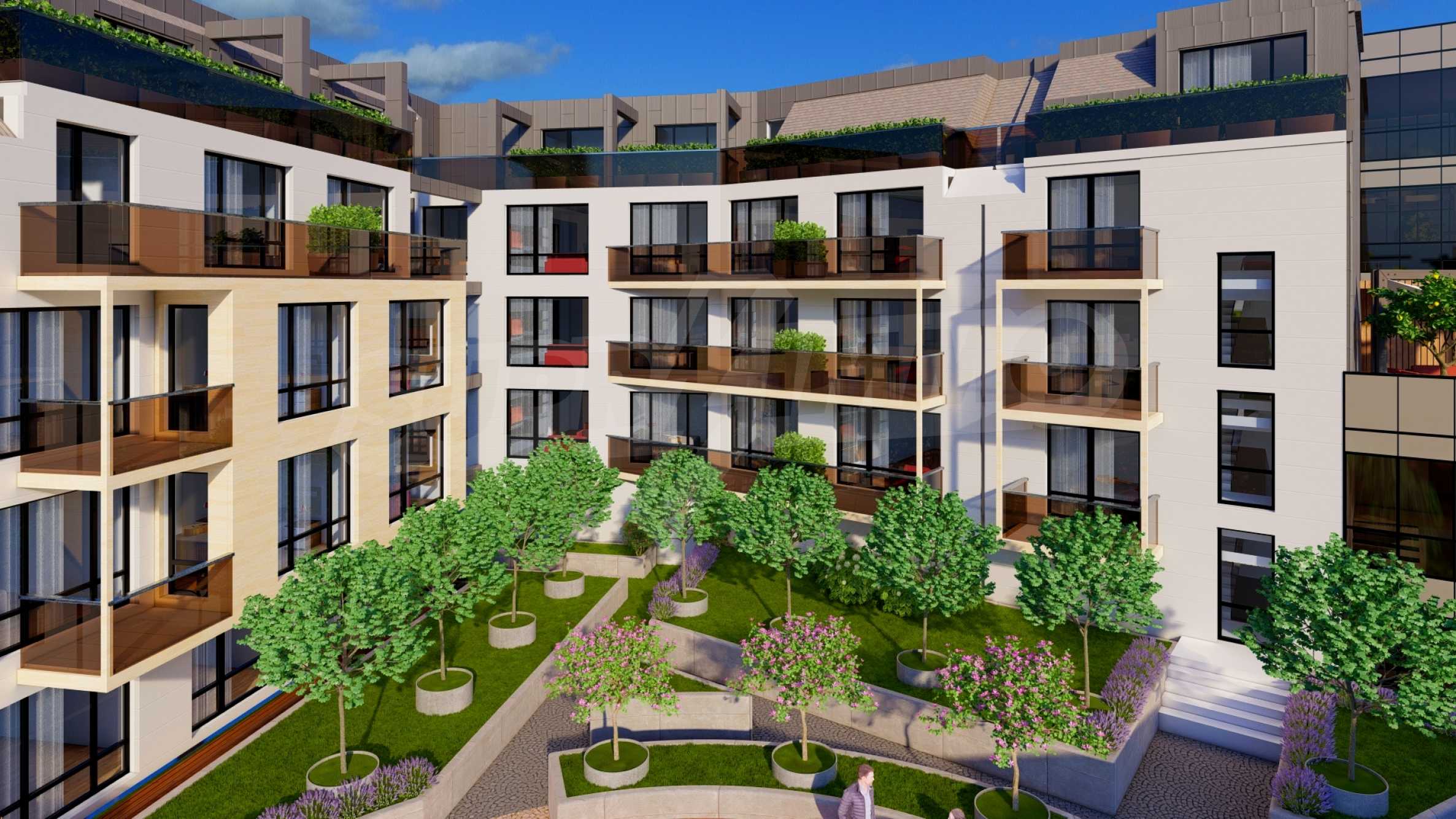 Сградата е проектирана от 3 жилищни секции, като секция А е на 5 етажа, а в секции В и С са ситуирани апартаменти на две нива тип мезонет. Предлага избор между едностайни, двустайни, тристайни и многостайни апартаменти и мезонети от 37 кв.м до 298 кв.м. Мезонетите разполагат със собствена тераса, която може да бъде превърната в прекрасна градина.