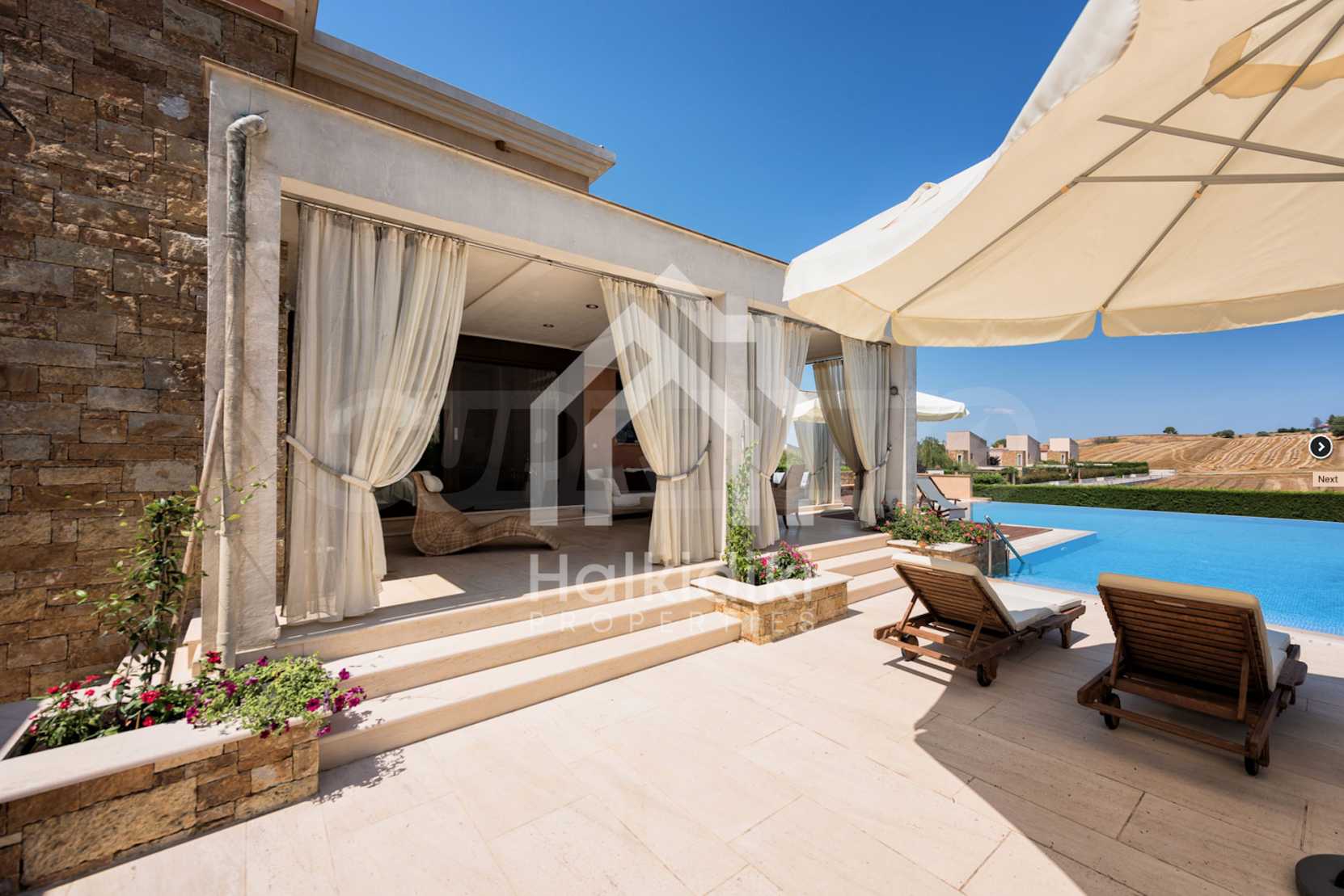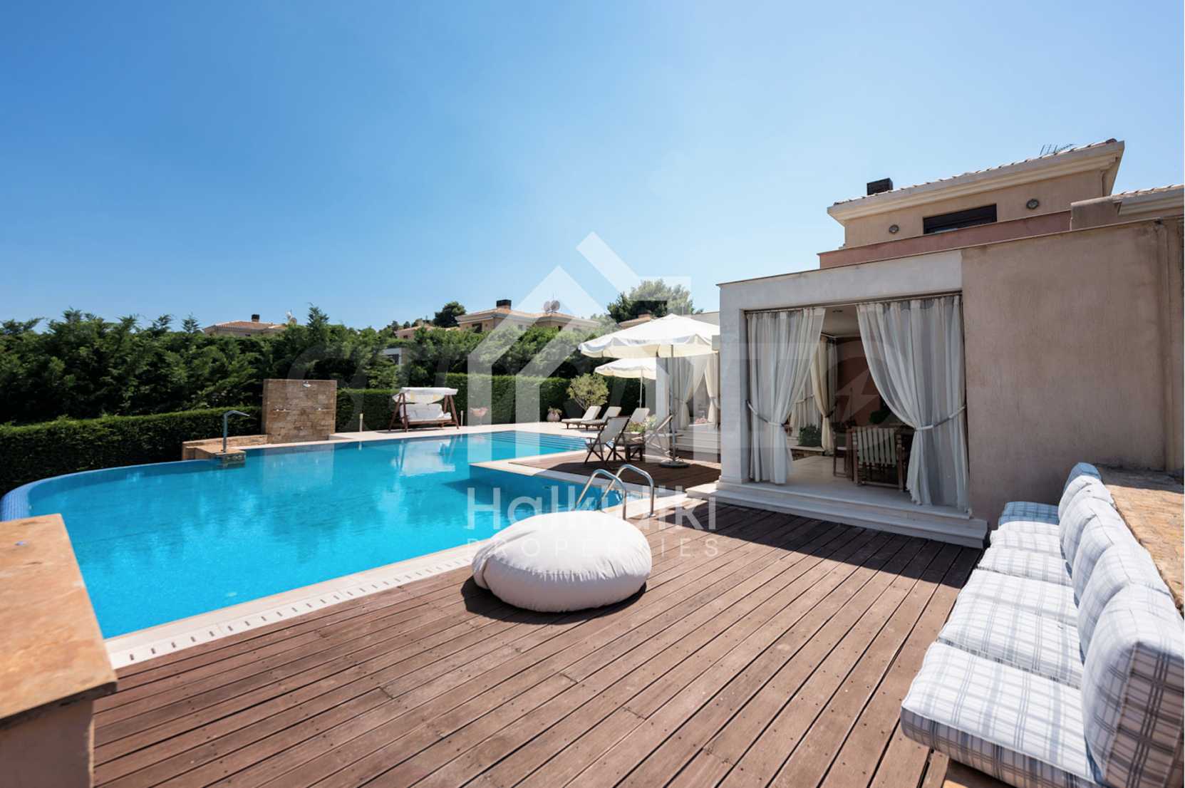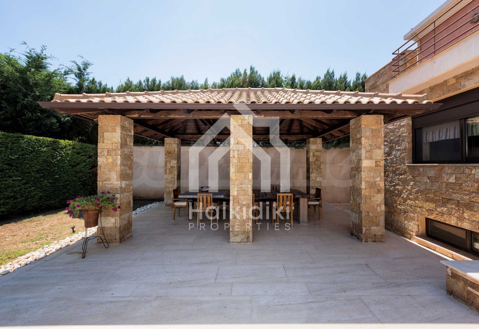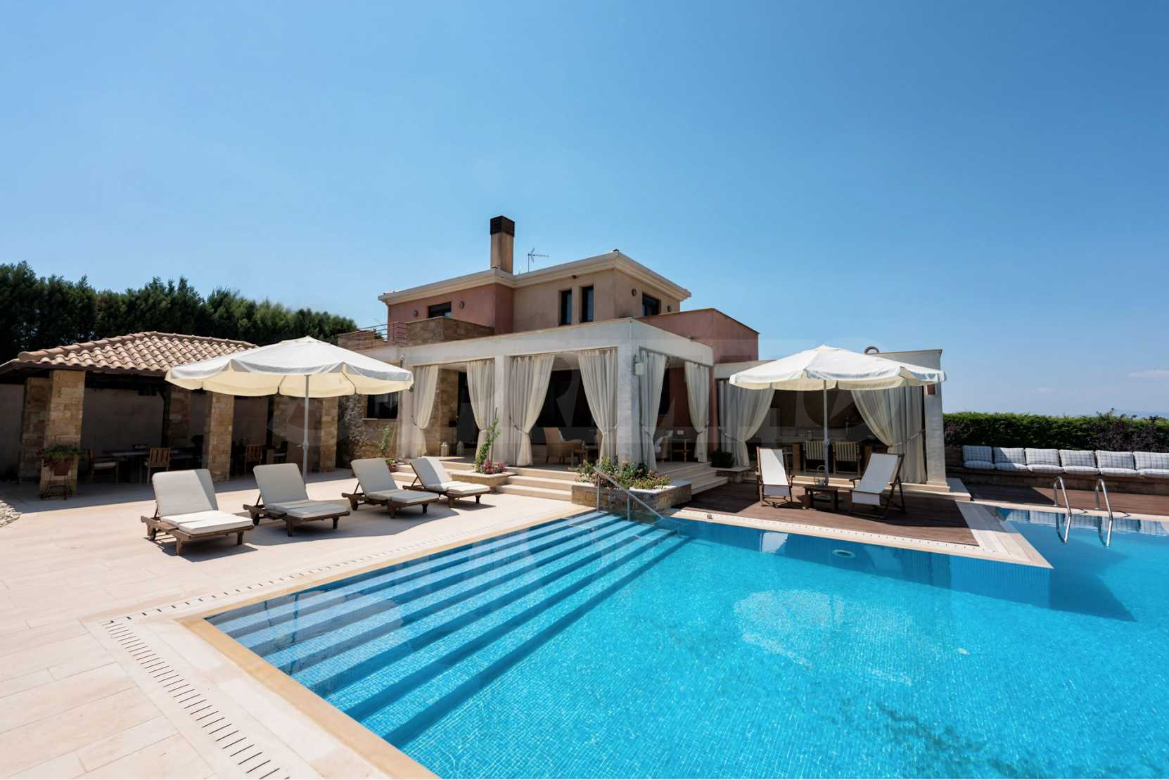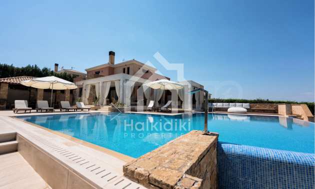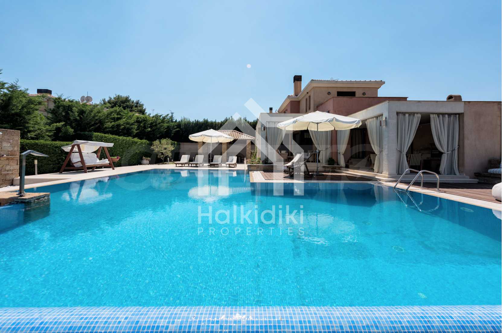 Луксозен имот, Уникална самостоятелна къща в комплекс с басейн, на много красиво място в Касандра, в малкия рай на Халкидики. Имотът се намира на площ от 1975,36 кв.м. на разстояние 2,2 км от центъра на селото Състои се от 3 нива с общо 260 кв.м. на жилищна площ. Имотът включва 5 спални, 1 WC. , склад и 3 бани(и)