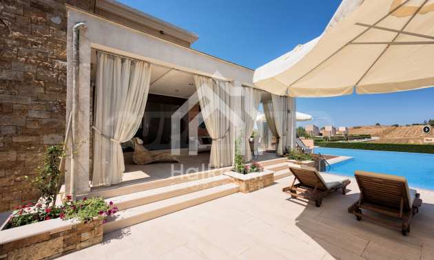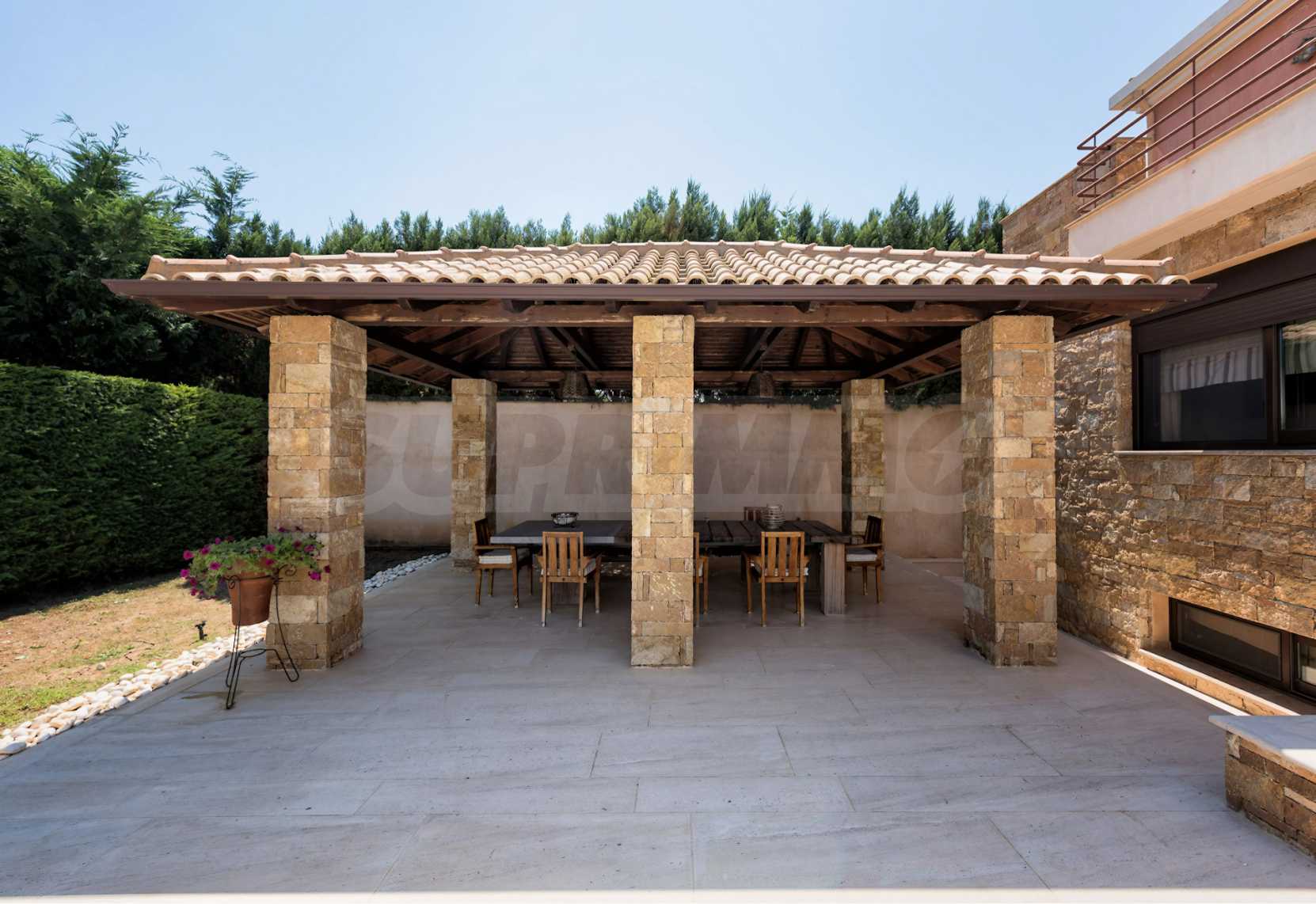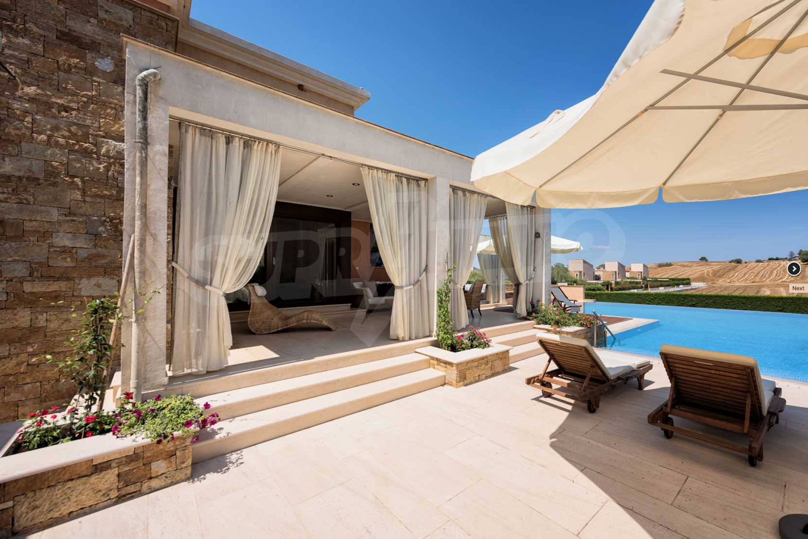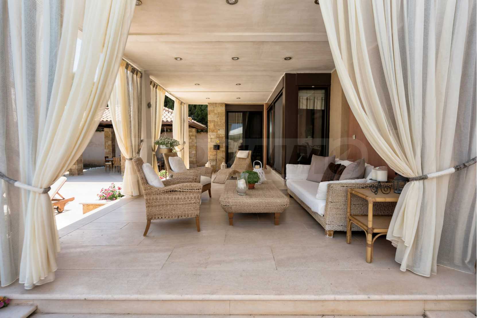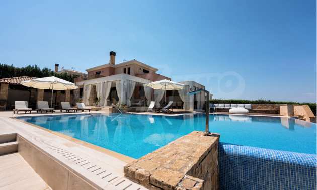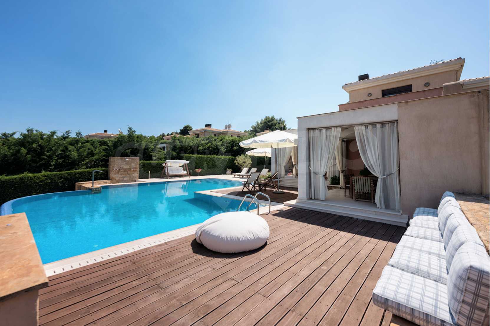 Луксозен имот, Уникална самостоятелна къща в комплекс с басейн, на много красиво място в Касандра, в малкия рай на Халкидики. Имотът се намира на площ от 1975,36 кв.м. на разстояние 2,2 км от центъра на селото Състои се от 3 нива с общо 260 кв.м. на жилищна площ. Имотът включва 5 спални, 1 WC. , склад и 3 бани(и)