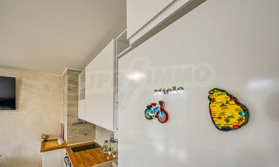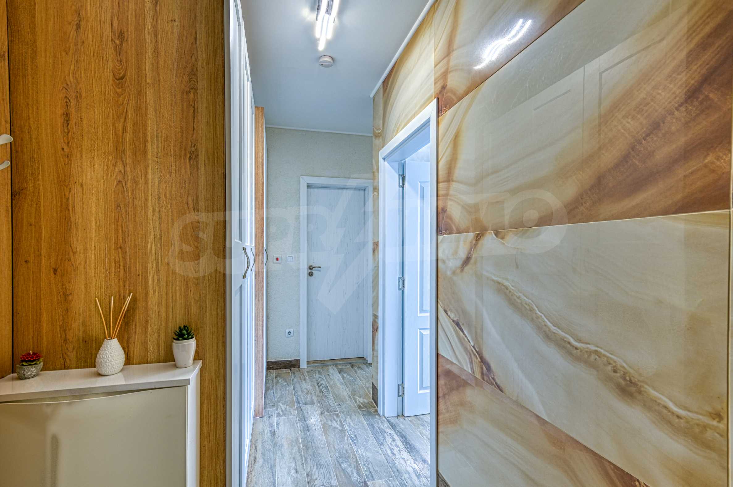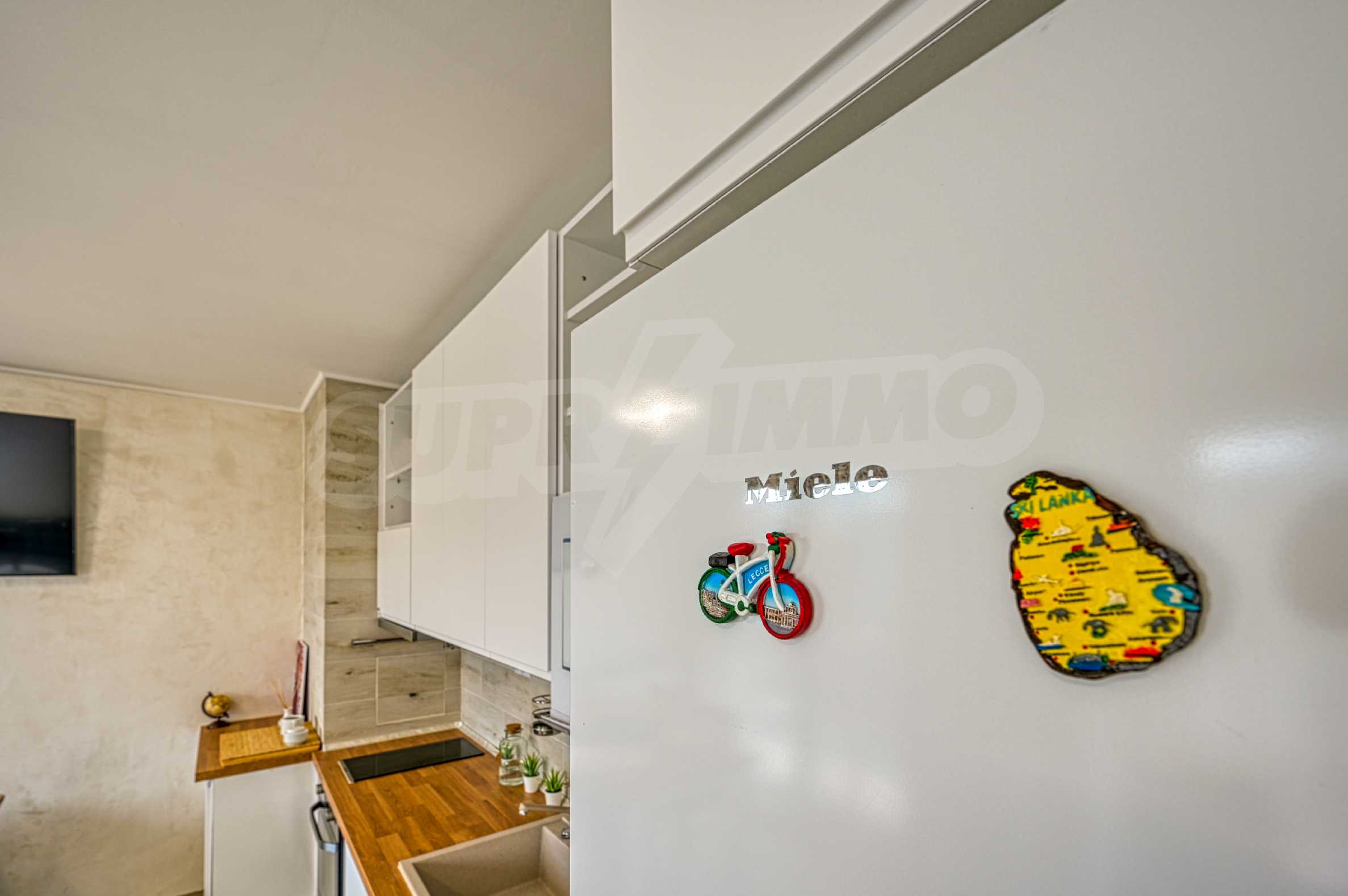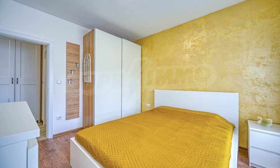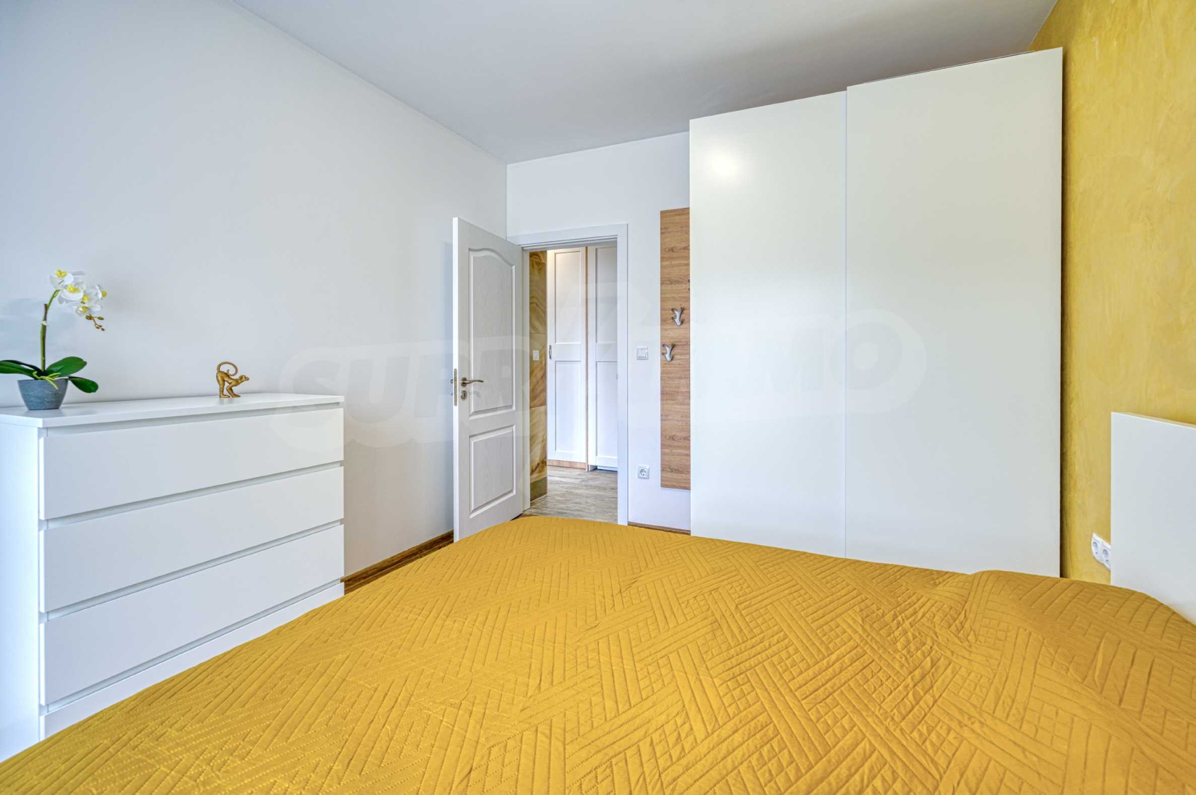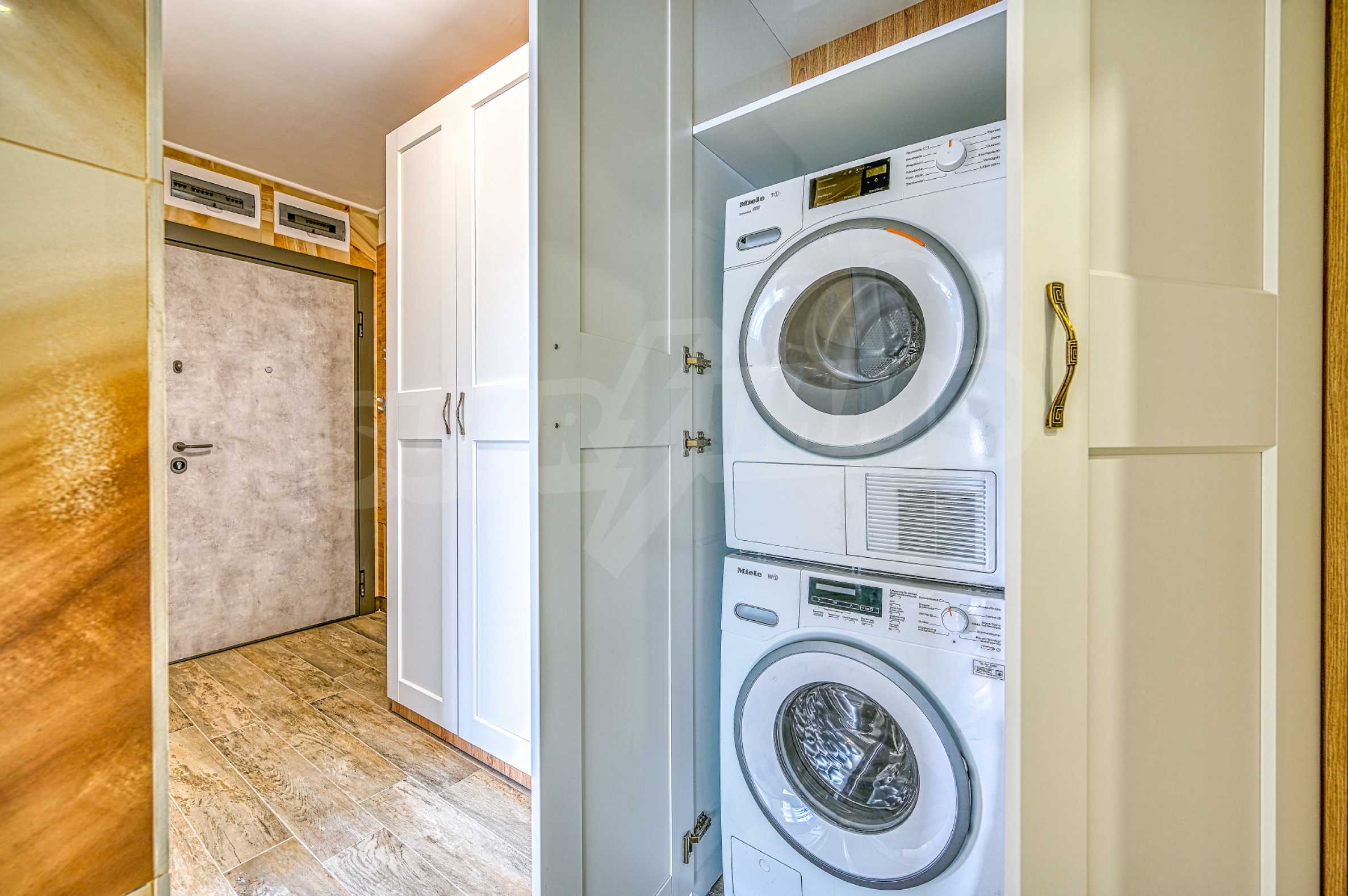 Обзавеждането е с комфортни мебели и висок клас електроуреди - фурна и котлони, електроуреди, микровълнова фурна, сушилня, пералня, както и консумативи - препарати, прибори и други. Диванът във всекидневната е разтегателен.