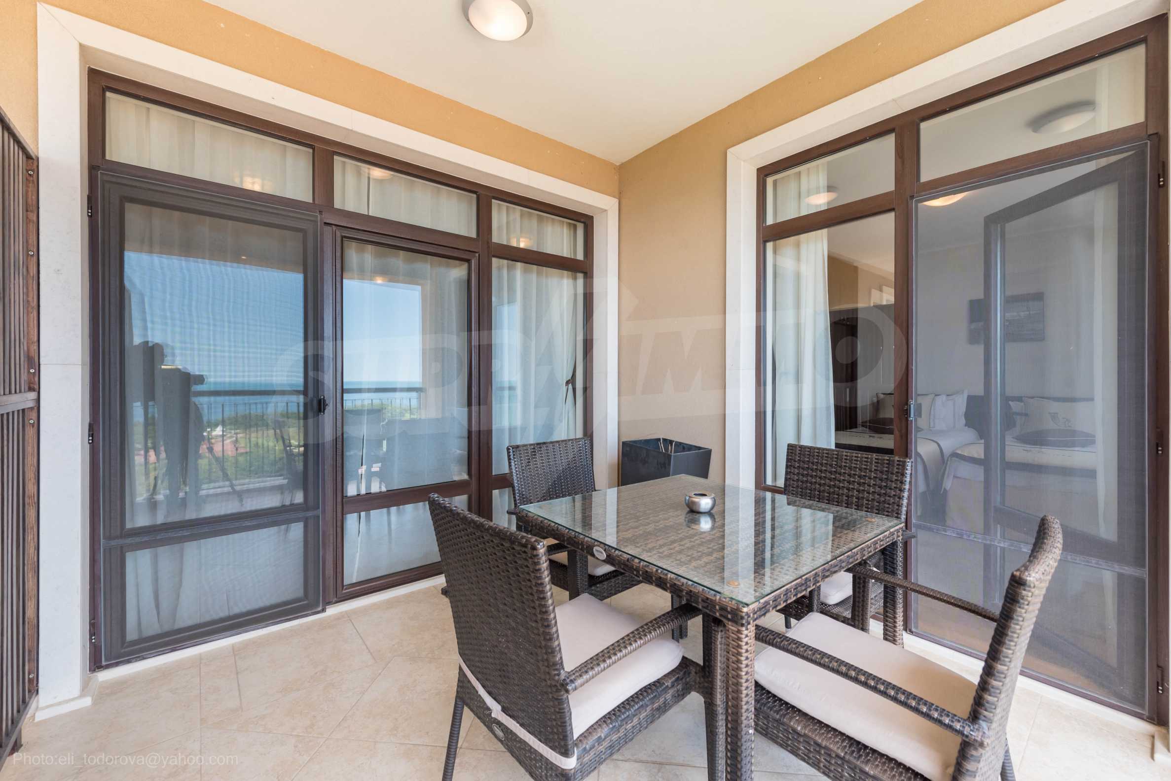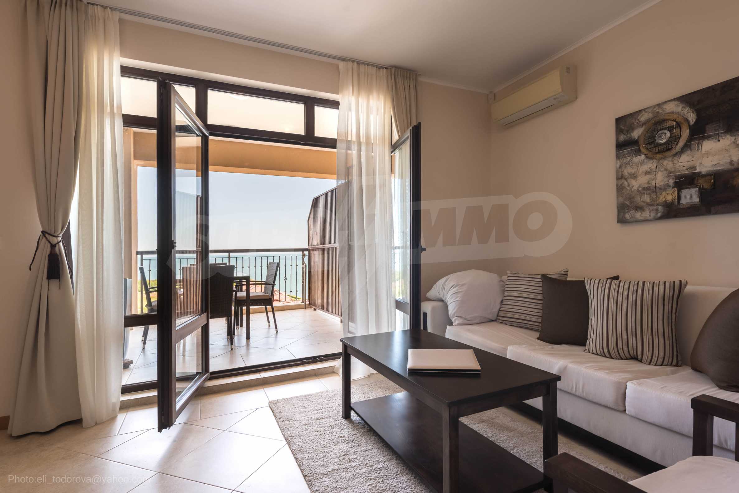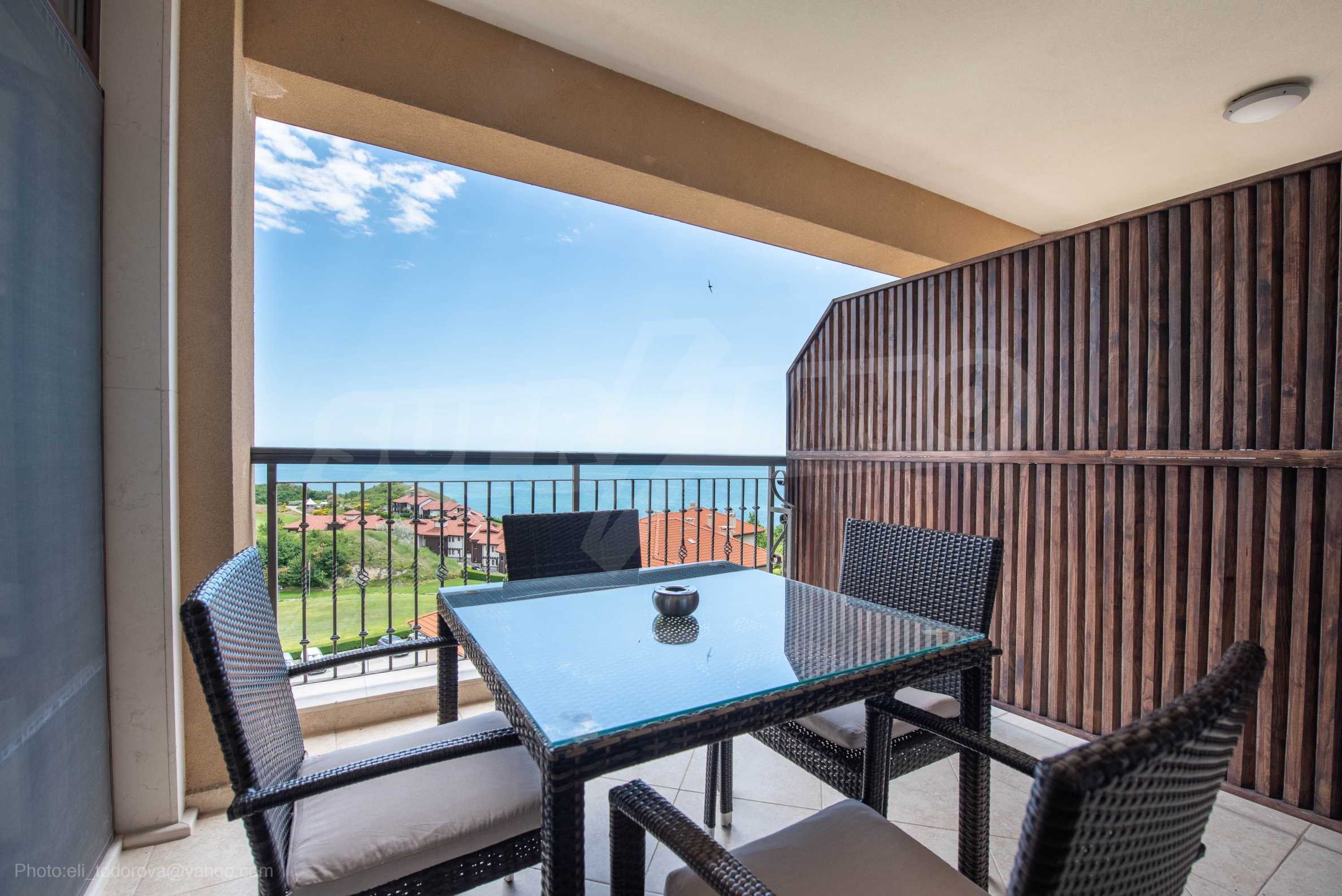 Представяме първокласно и стилно обзаведен, морски имот с една спалня, в престижен комплекс с удобства, на метри от морския бряг, близо до гр. Балчик.