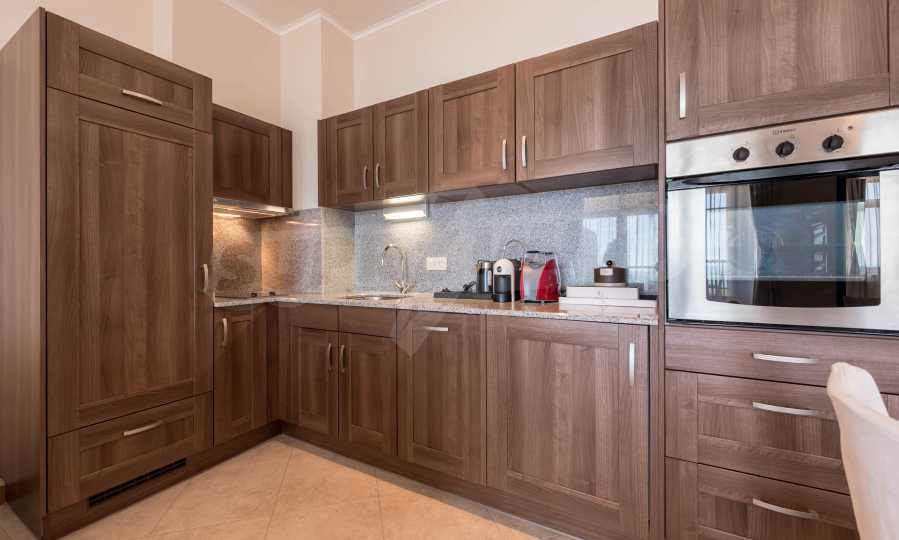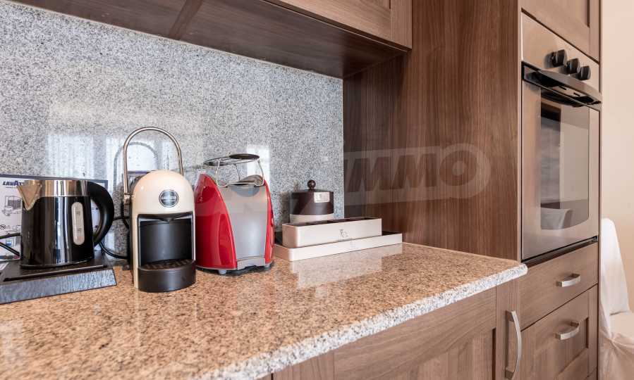 Апартаментът се състои от антре, трапезна и кухненска част с изглед към морето, спалня също с изглед, обширна обща тераса за двете стаи, баня с тоалетна. Жилището се продава напълно обзаведено и оборудвано, подходящо е както за лично ползване, така и за инвестиция.