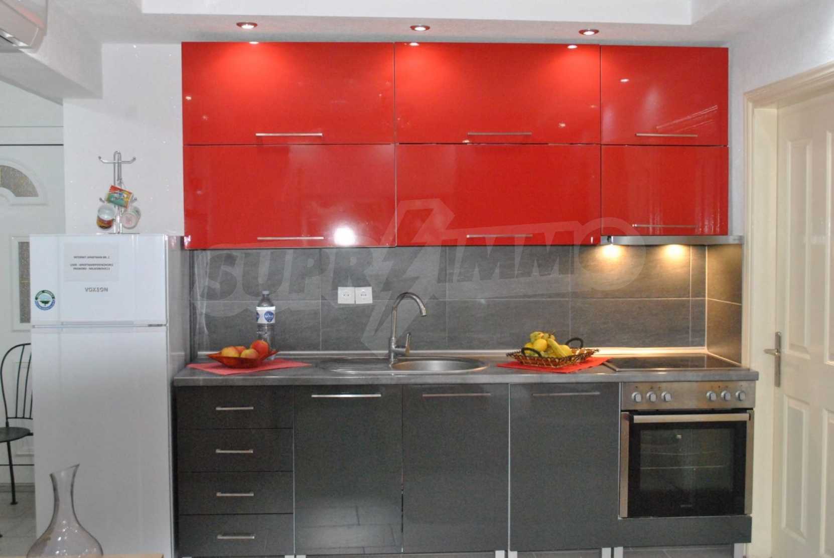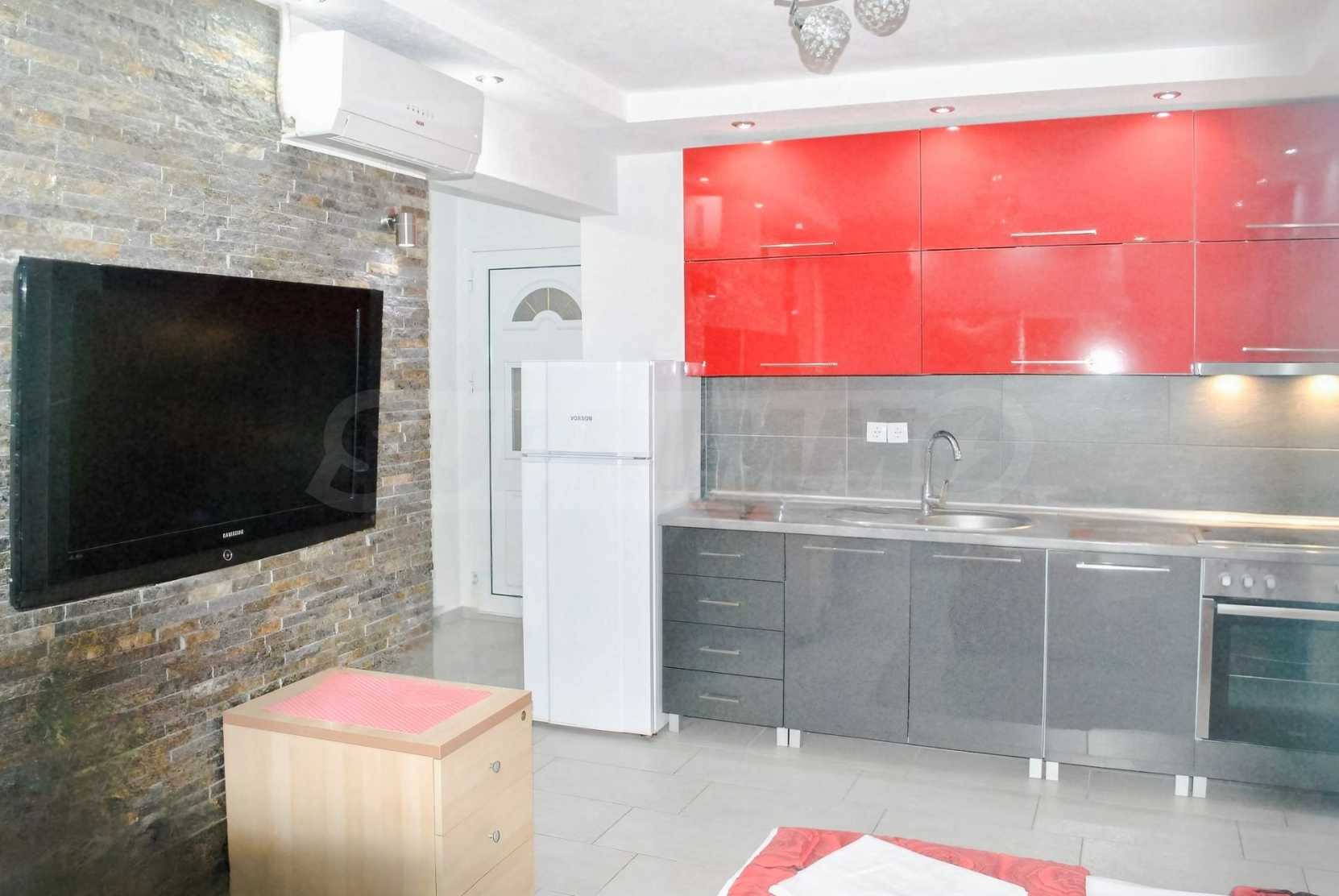 Това е много красив апартамент. Имотът е на пешеходно разстояние от морето, на невероятно място в Община Касандра на Халкидики. Намират се на 50м от центъра на селото и на много кратко разстояние от прекрасен плаж. Жилището се намира на партерен етаж и се състои от хол, спалня и баня. Той е напълно обзаведен и оборудван с всички електроуреди.