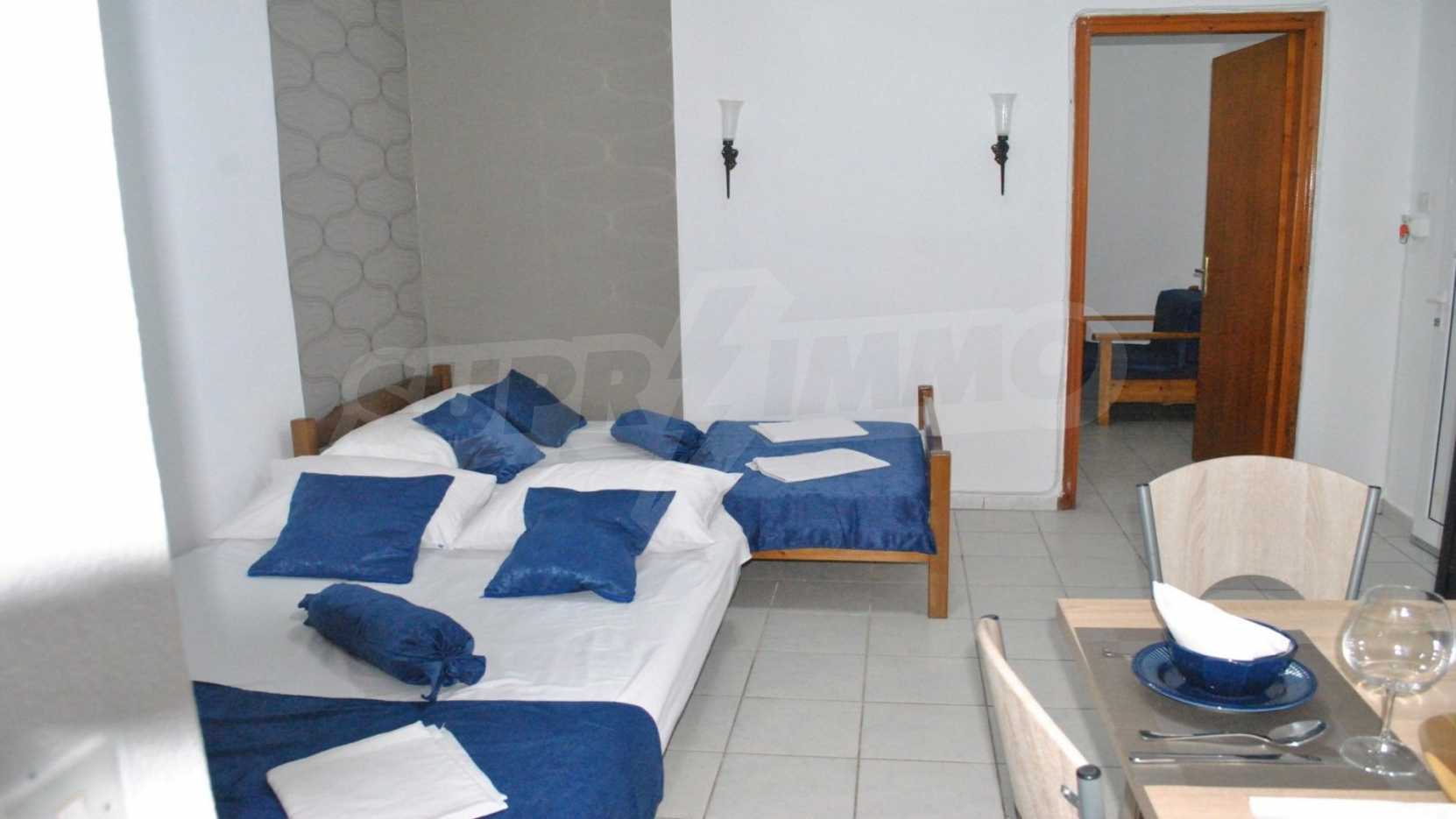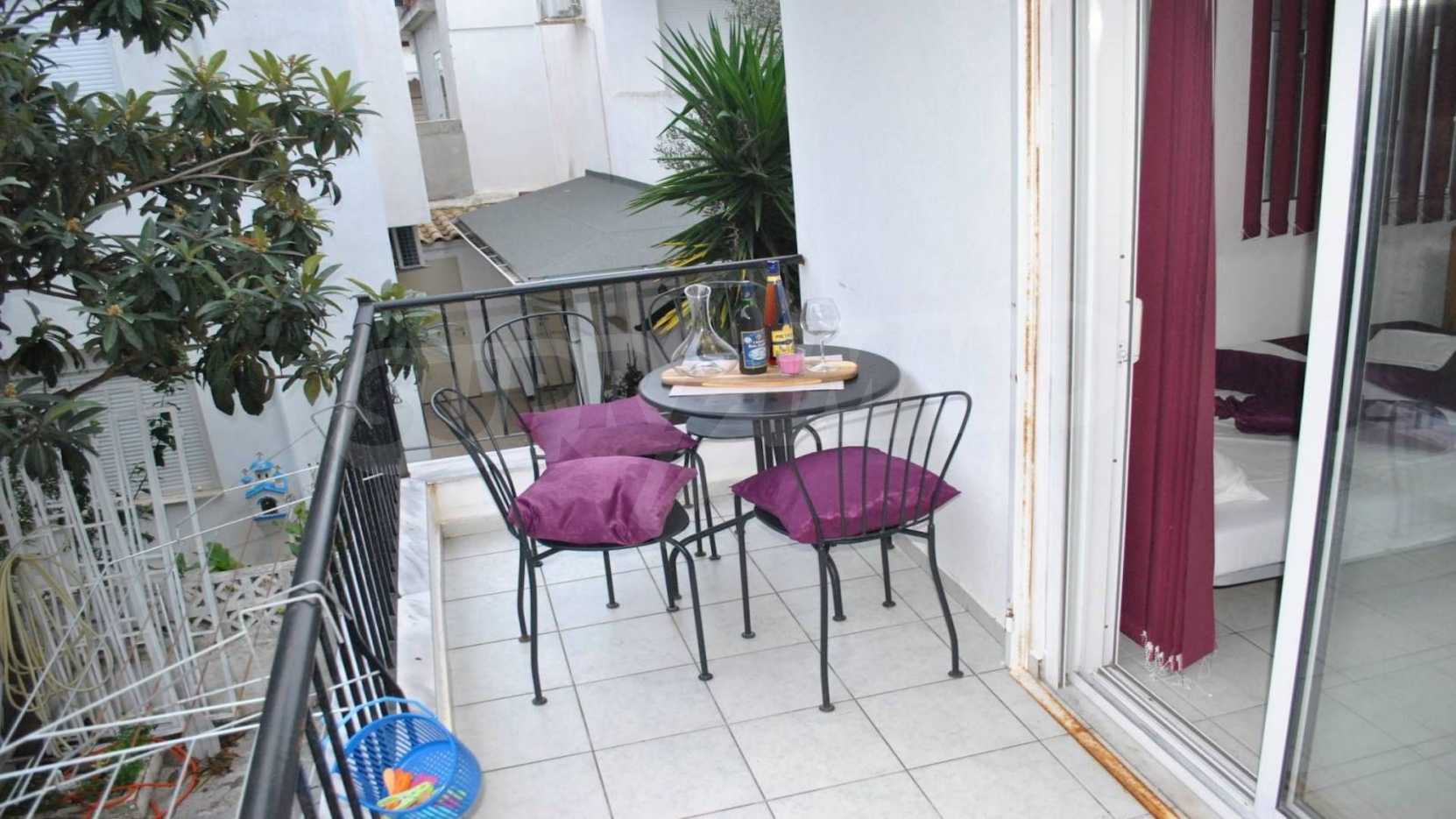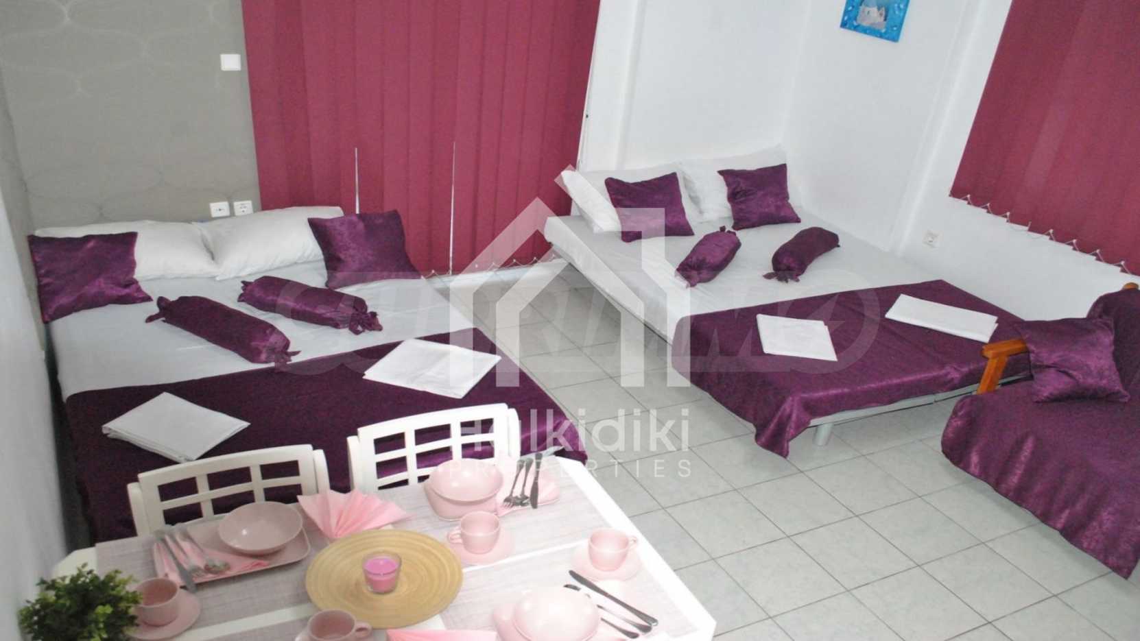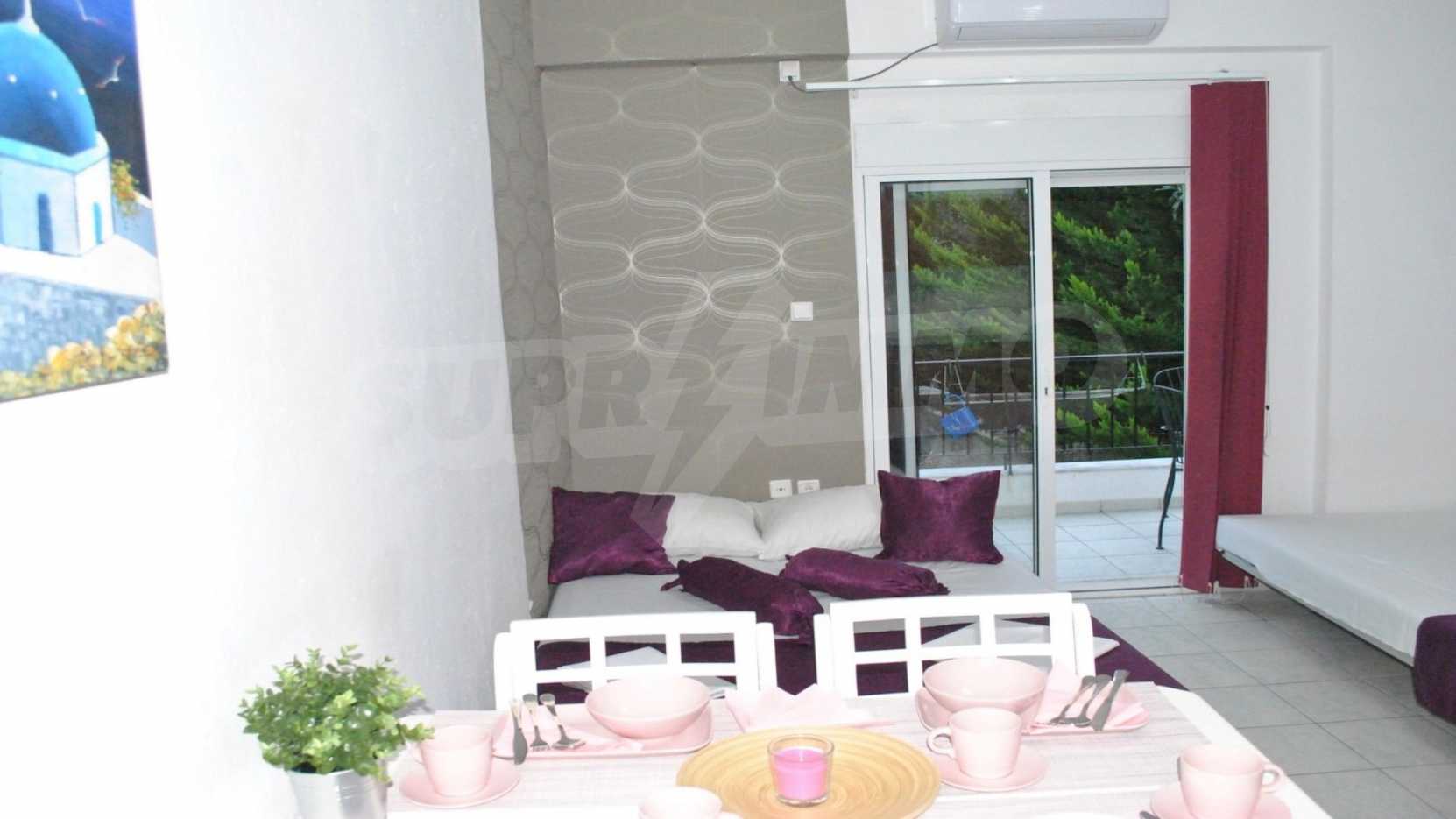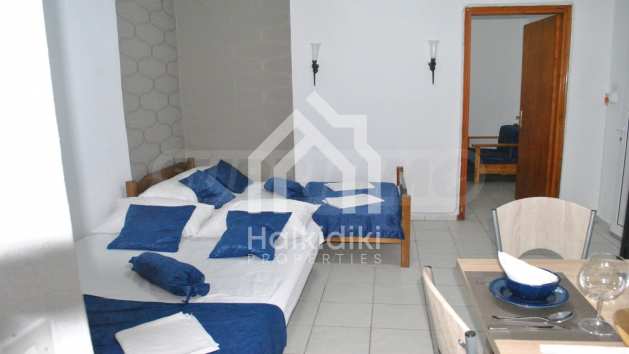 Това са два красиви апартамента. Имотите са на пешеходно разстояние от морето, на невероятно място в община Касандра на Халкидики. Намират се на 100м от центъра на селото и на много кратко разстояние от красив плаж. Двата апартамента са разположени на приземен и първи етаж. Всеки апартамент се състои от всекидневна, спалня и баня. Те са напълно обзаведени и оборудвани с всички електроуреди.