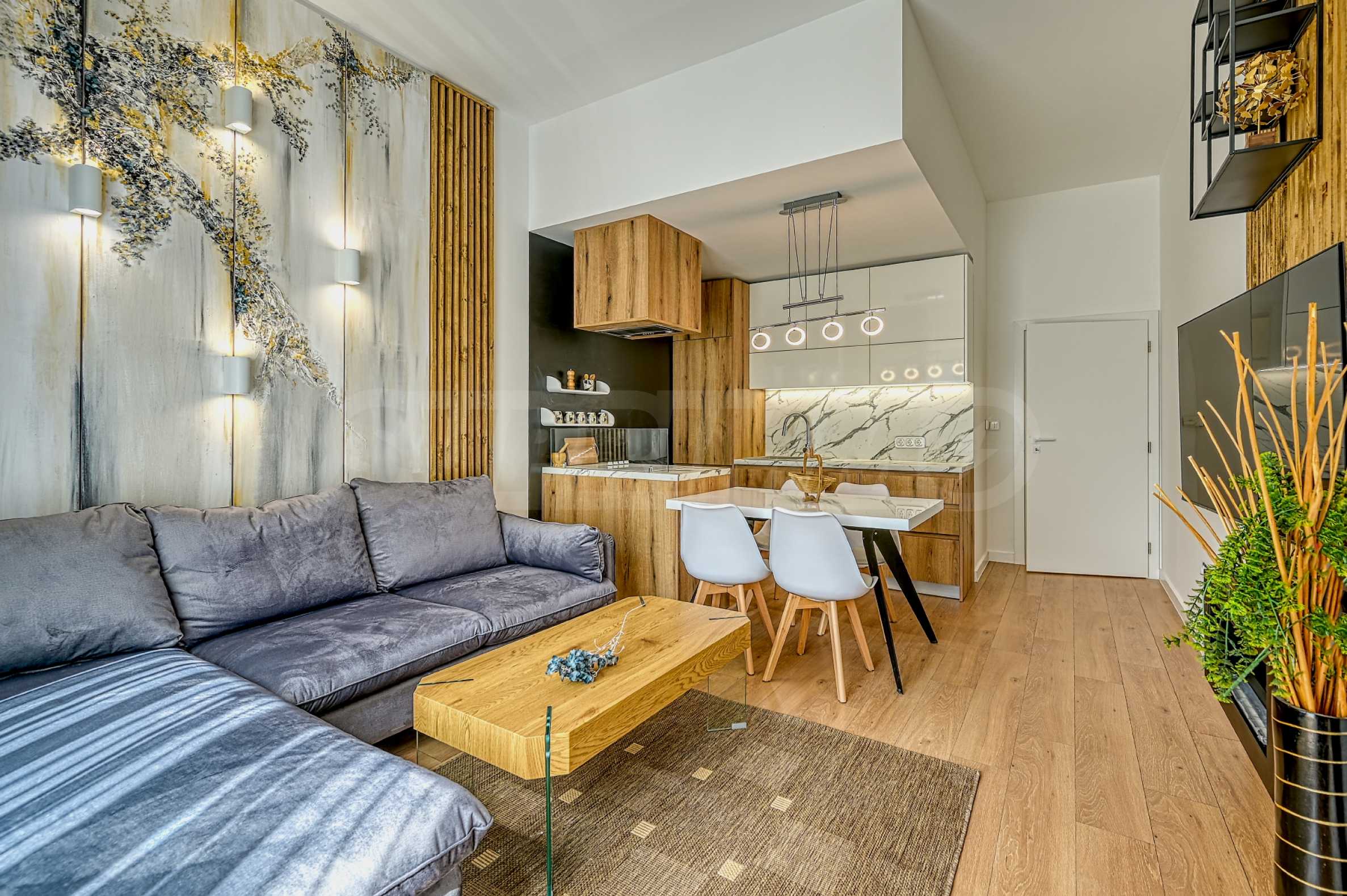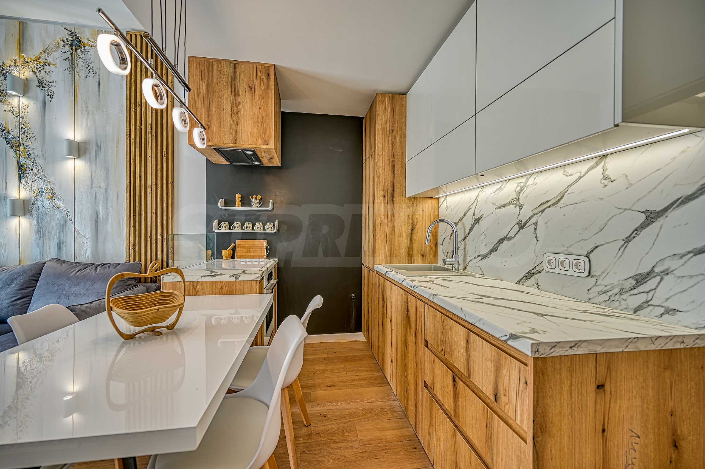 Характеристики: Апартаментът се отдава напълно обзаведен с висок клас електроуреди / BOSCH, AEG, Samsung , бани GROE/ и обзавеждане по дизайнерски проект. Светли, уютни и даващи пълен комфорт помещения. Топли, земни цветове, френски прозорци допринасящи за простора и светлината на стаите. Практични и интересни дизайнерски решения. Ръчно рисувани пана, естестевине материи ще Ви донесат много уют.