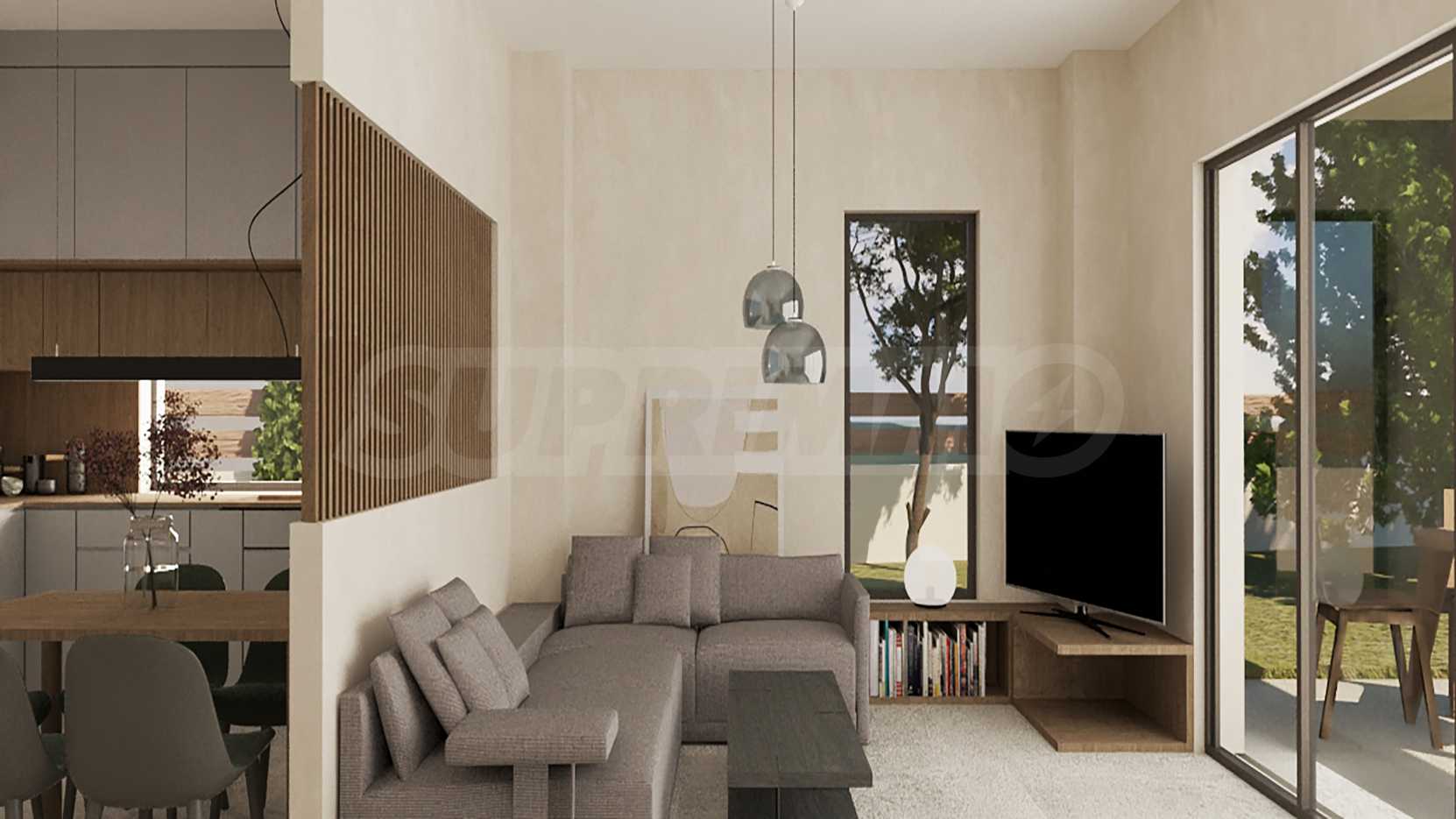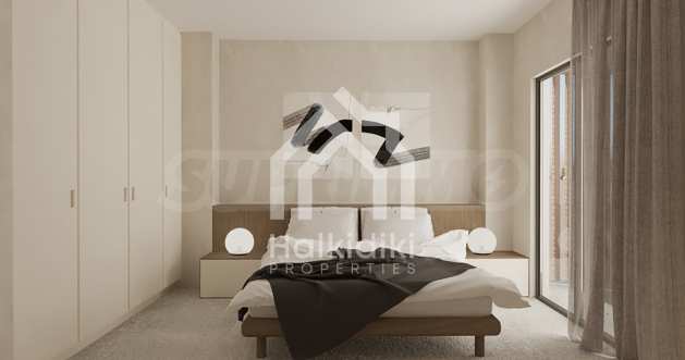 Красив мезонет на пешеходно разстояние от морето, на много красиво място в Ситония, в сърцето на Халкидики. Имотът се намира на 1.9 км от центъра на селото. Състои се от 2 нива с общо 110 кв.м. жилищна площ. Имотът включва 3 спални и 2 бани