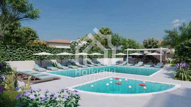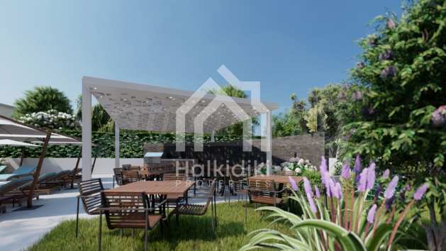 Уникален апартамент с луксозен басейн, на пешеходно разстояние от морето, на много красиво място в Ситония, в сърцето на Халкидики. Имотът е разположен на площ от 99 кв.м. на 400 .м от центъра на селото Състои се от 1 нива с общо 61 кв.м. жилищна площ. Имотът включва 2 спални и 1 бани
