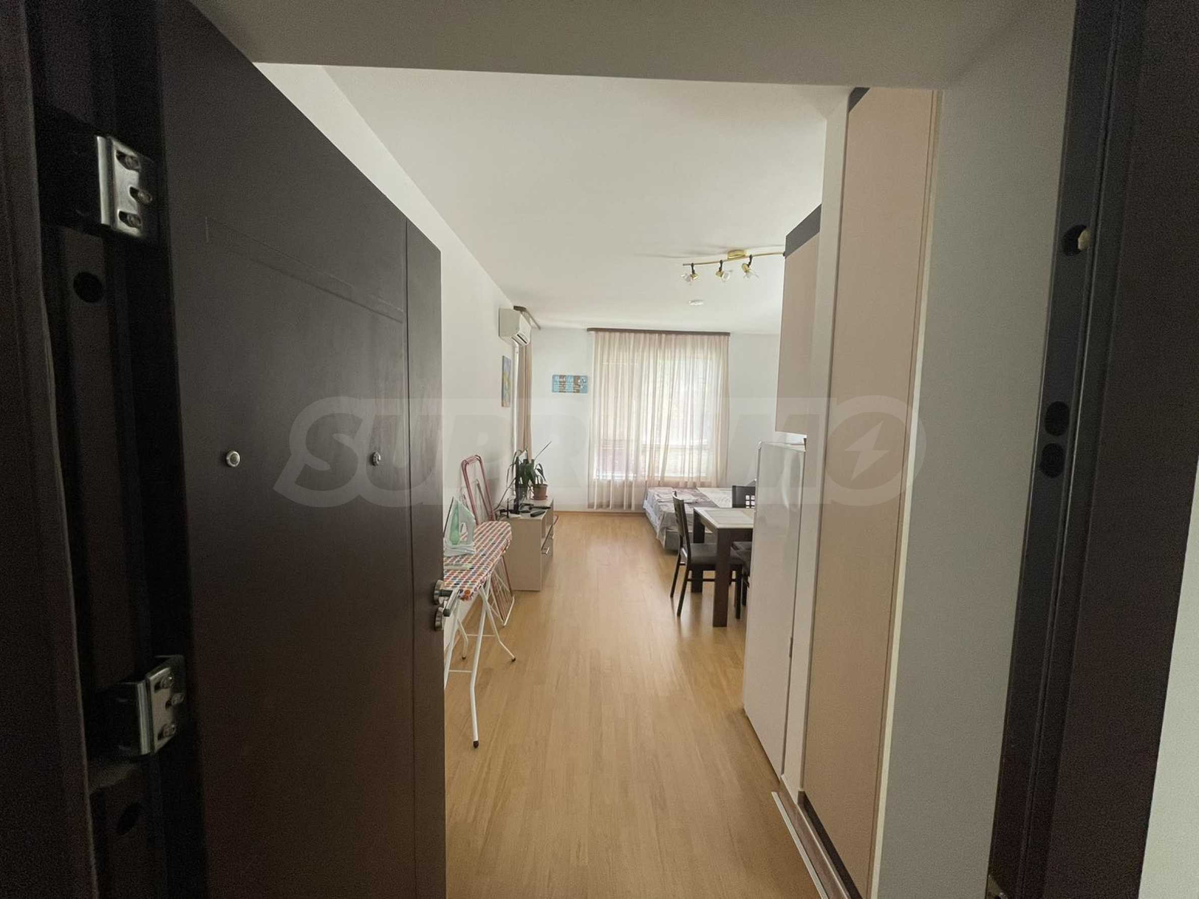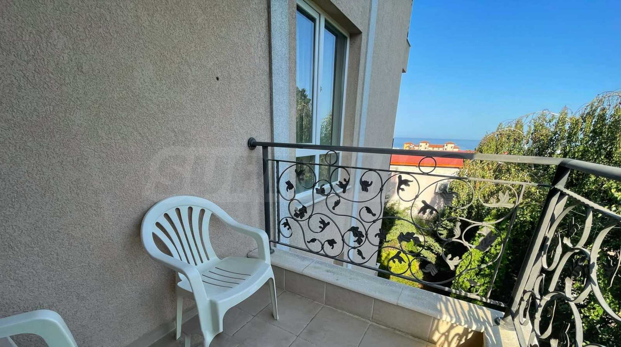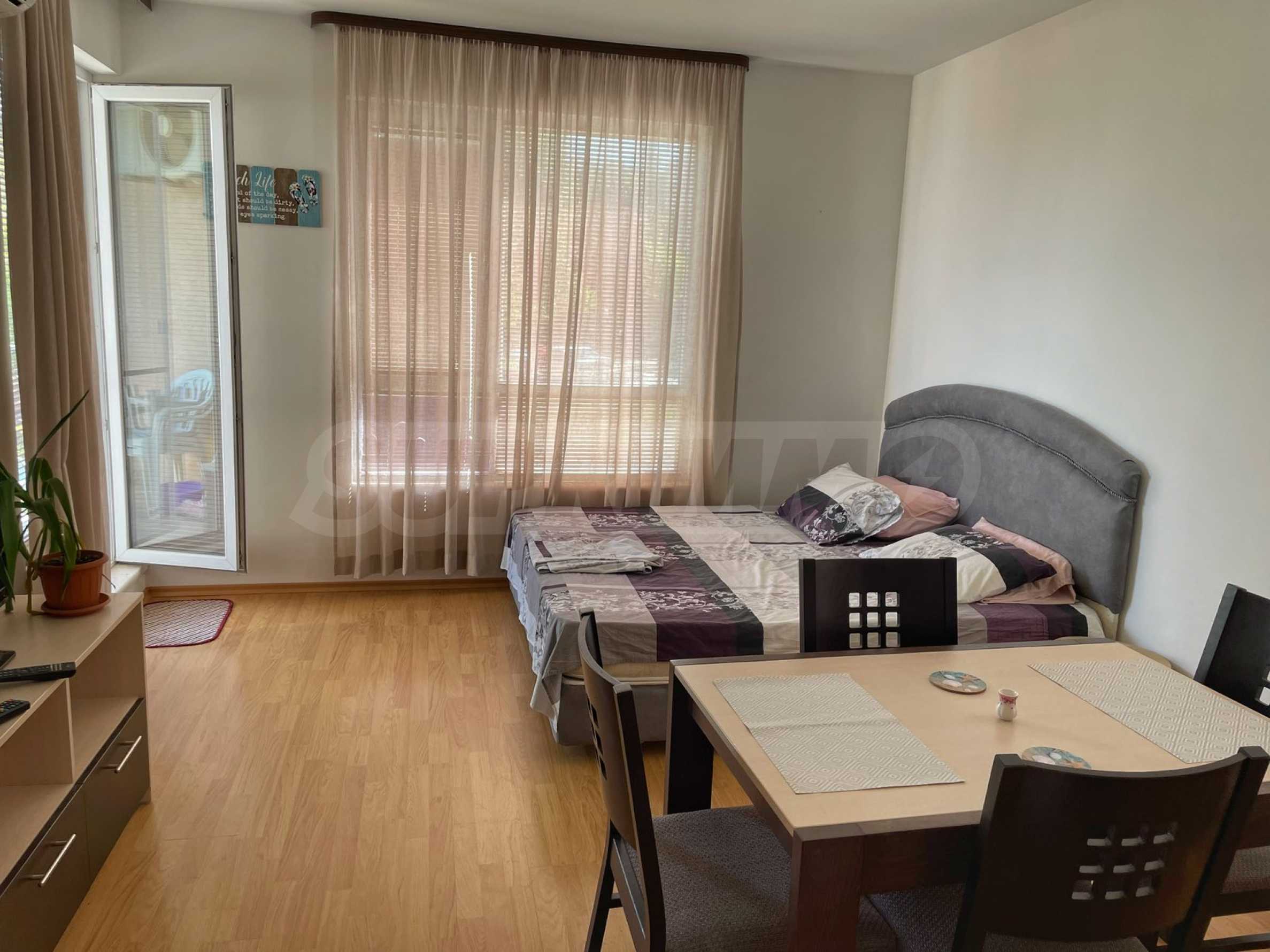 Имотът е с площ от 35.50 кв.м и е разположен на 2-ри етаж от 4. Състои се от дневна/спалня с кухненски бокс, баня с тоалетна и тераса с гледка към морето и града.