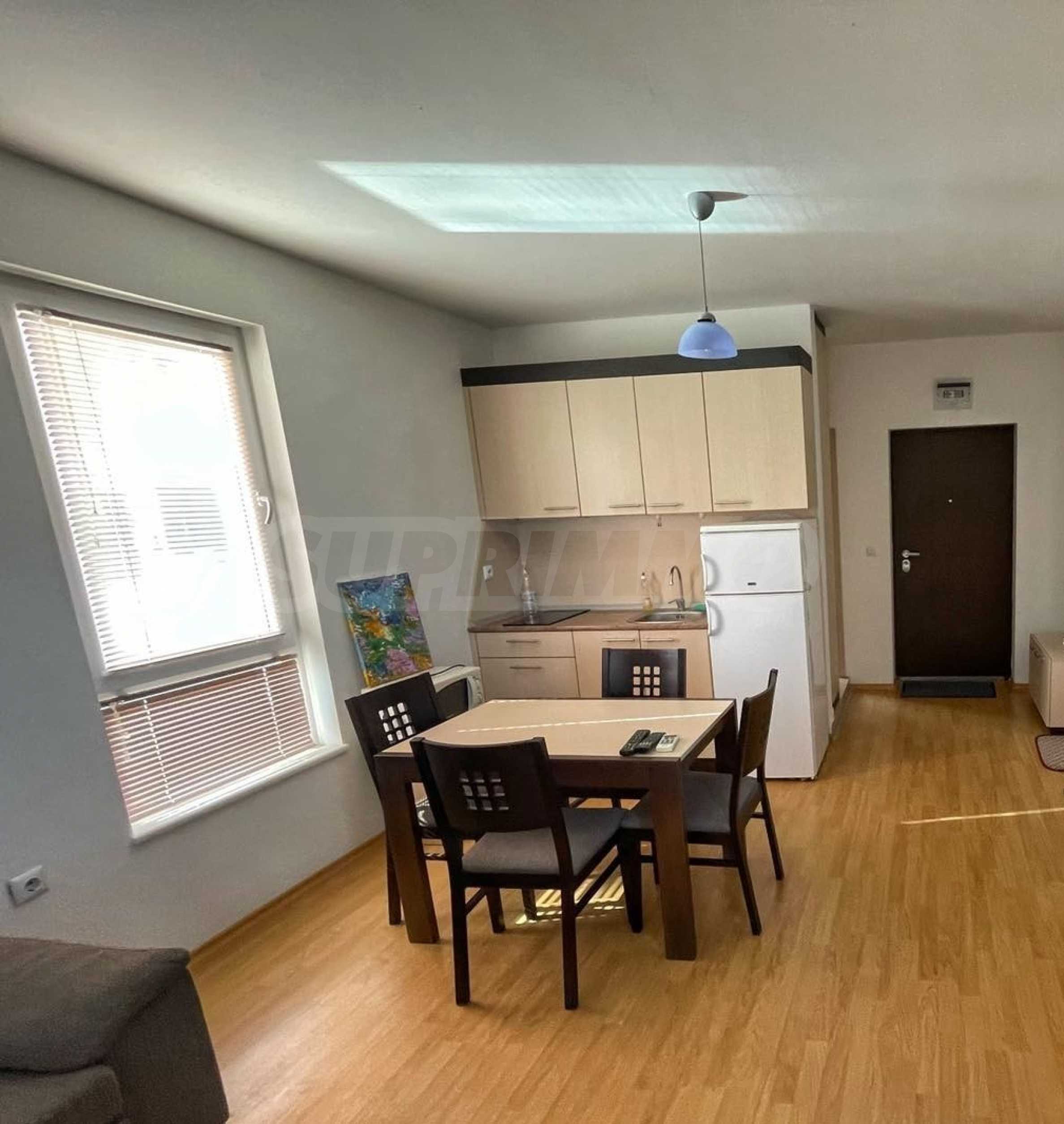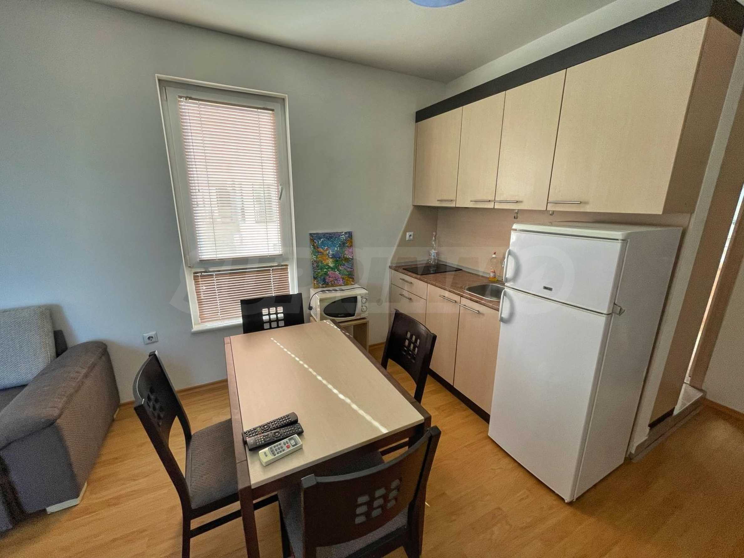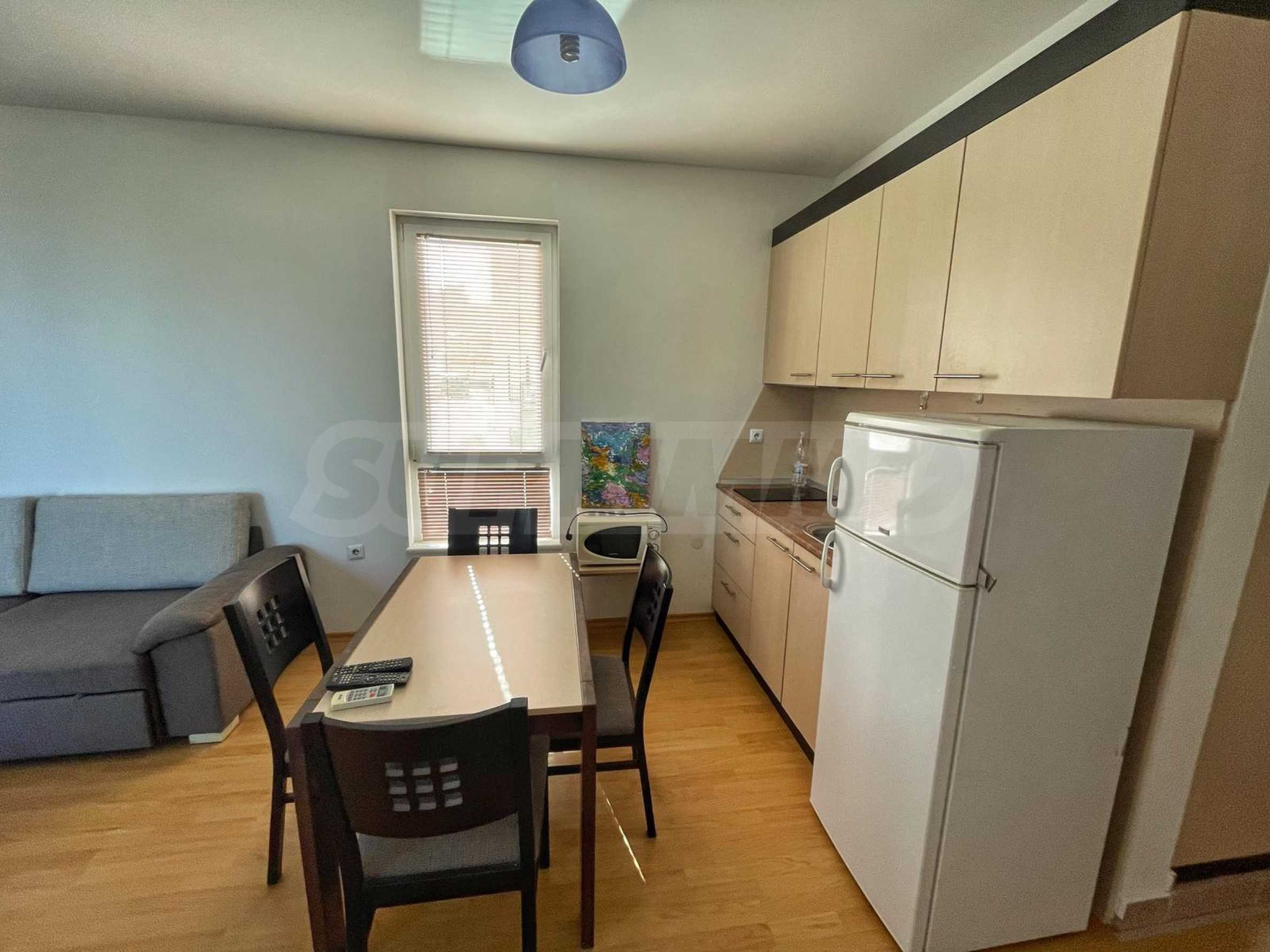 Жилището е обзаведено и оборудвано с всичко необходимо като мебели и ел. уреди.