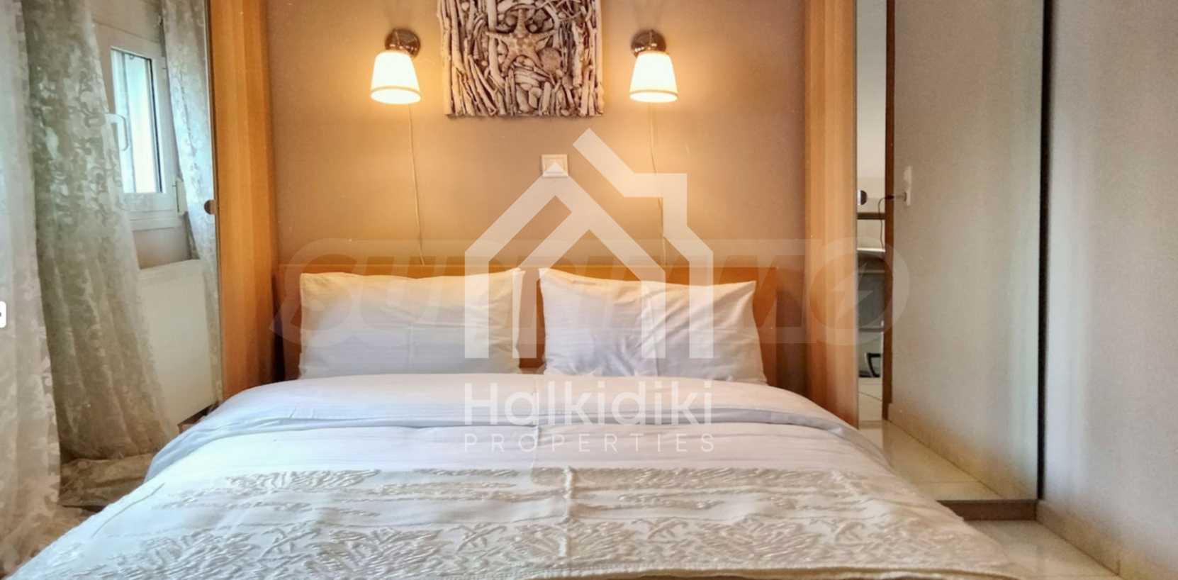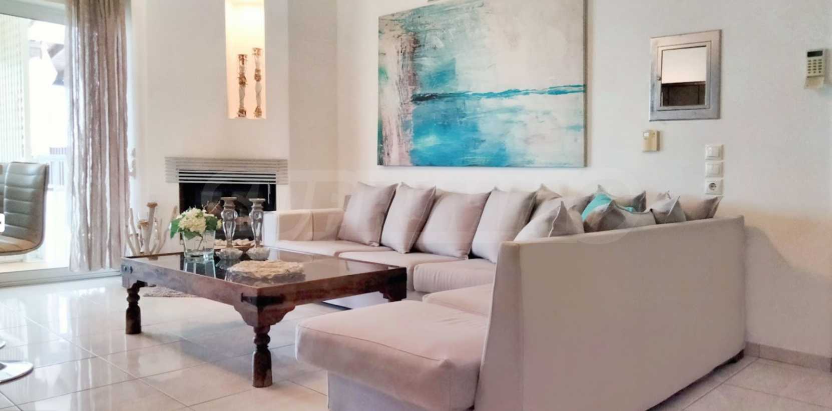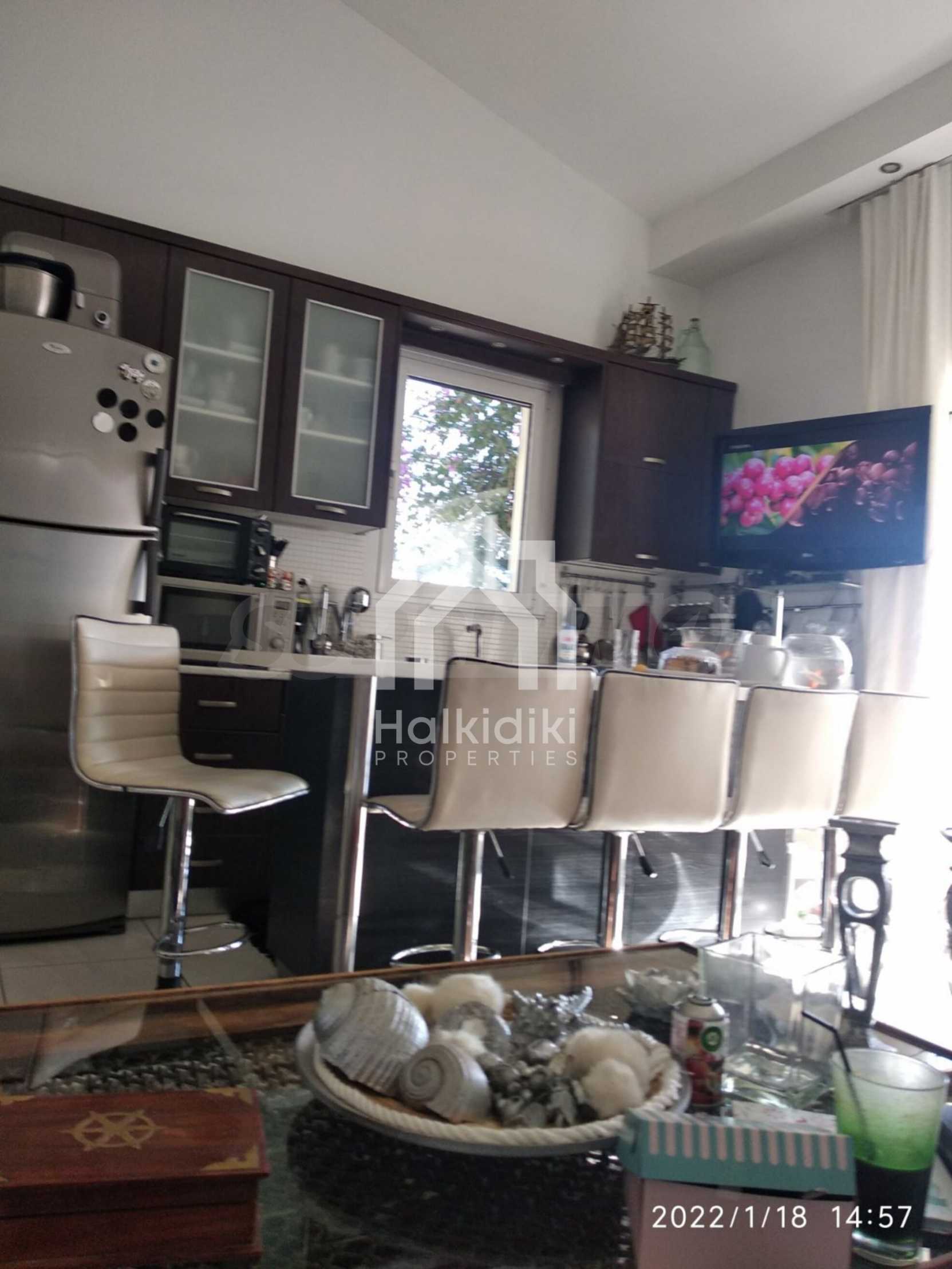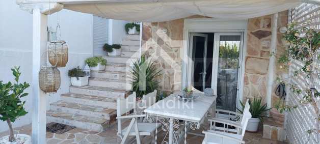 Красив мезонет на пешеходно разстояние от морето, на много красиво място в Ситония, в малкия рай на Халкидики. Имотът е разположен на площ от 552.68 кв.м. , с изключителна морска панорама, на 1.6 .км от центъра на селото Състои се от 2 нива с общо 150 кв.м. жилищна площ. Имотът включва 3 спални, склад и 2 бани