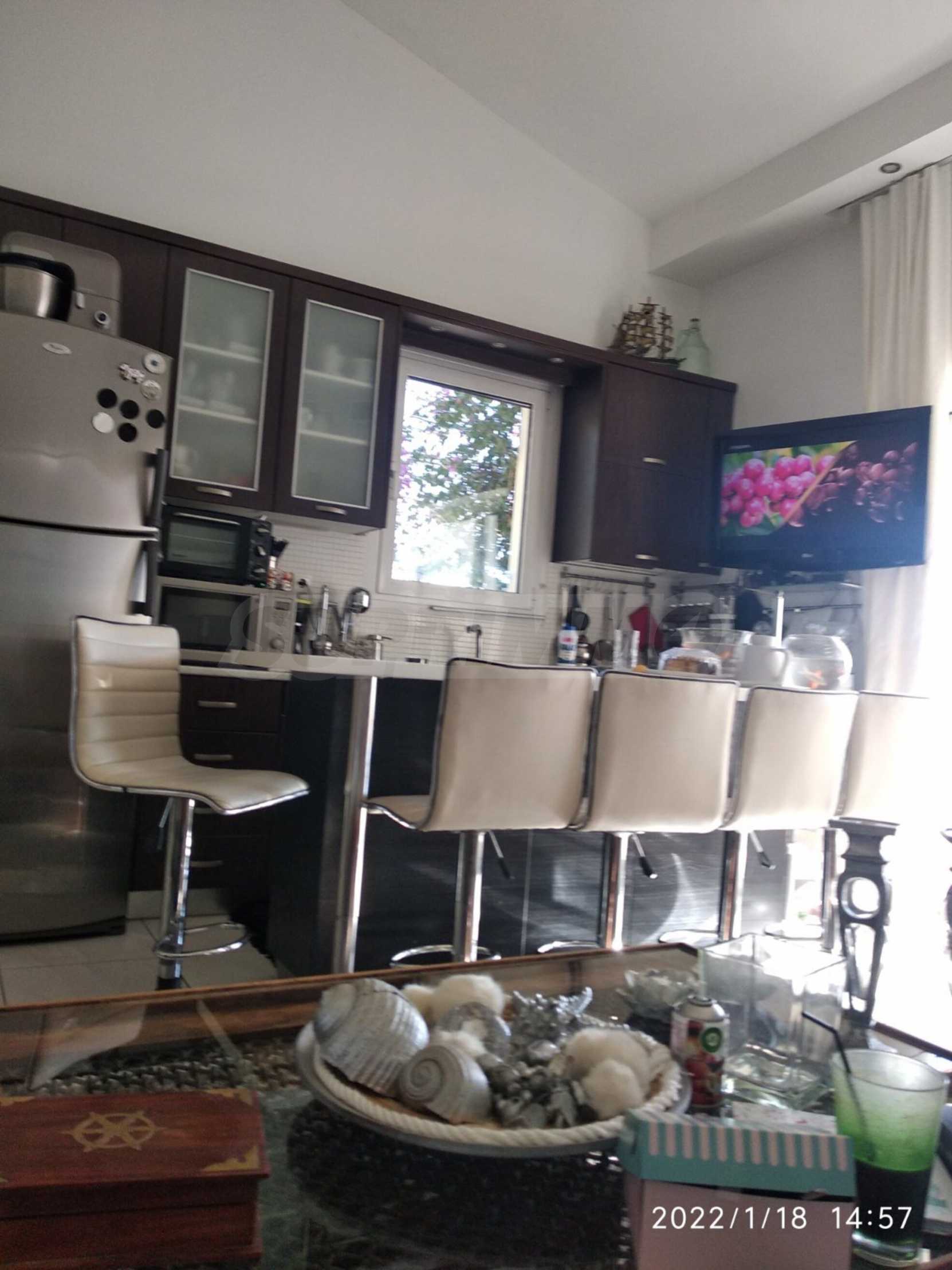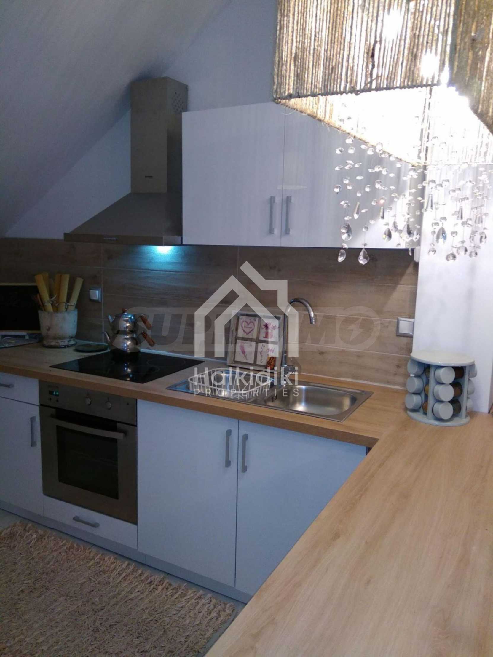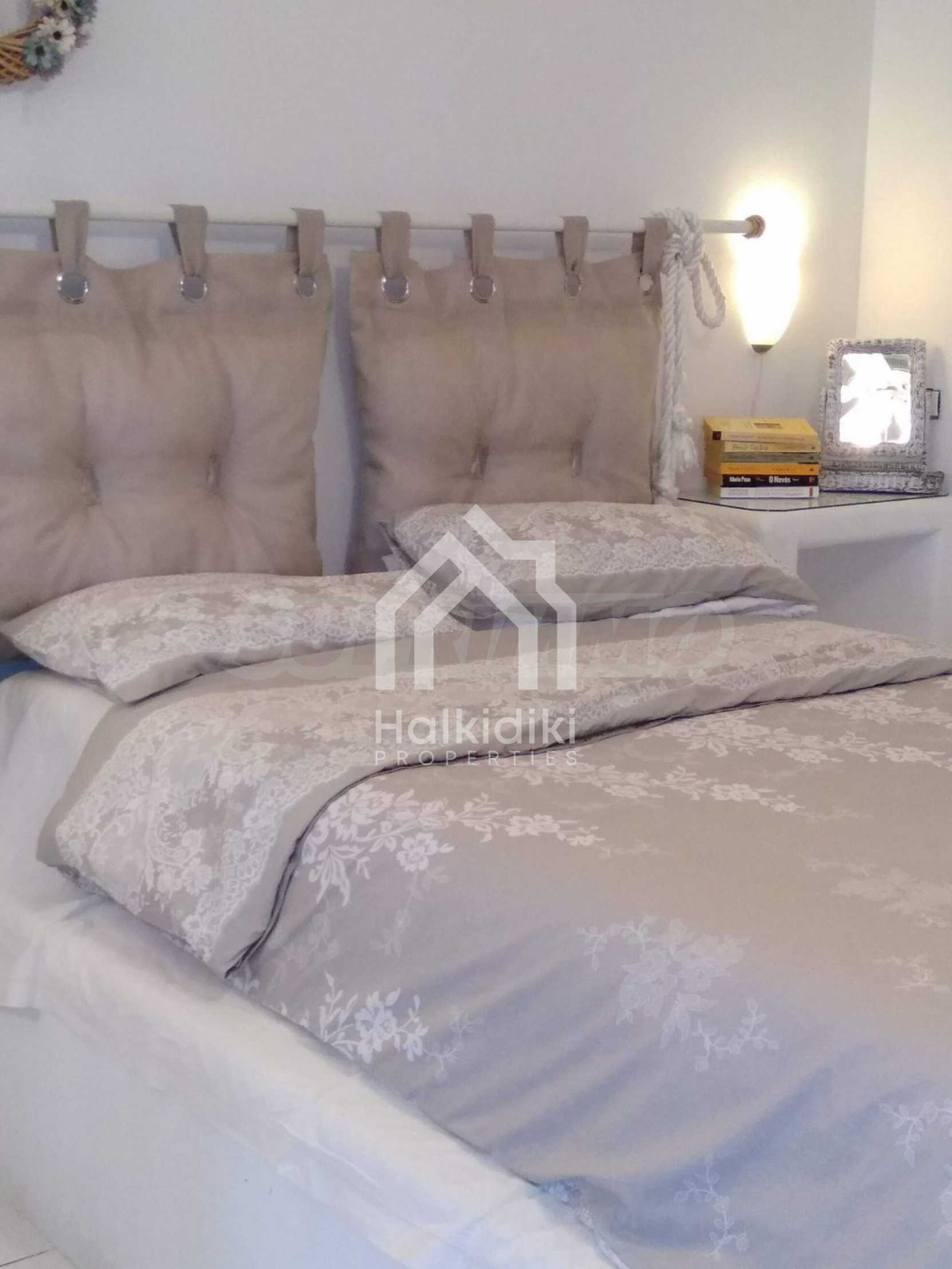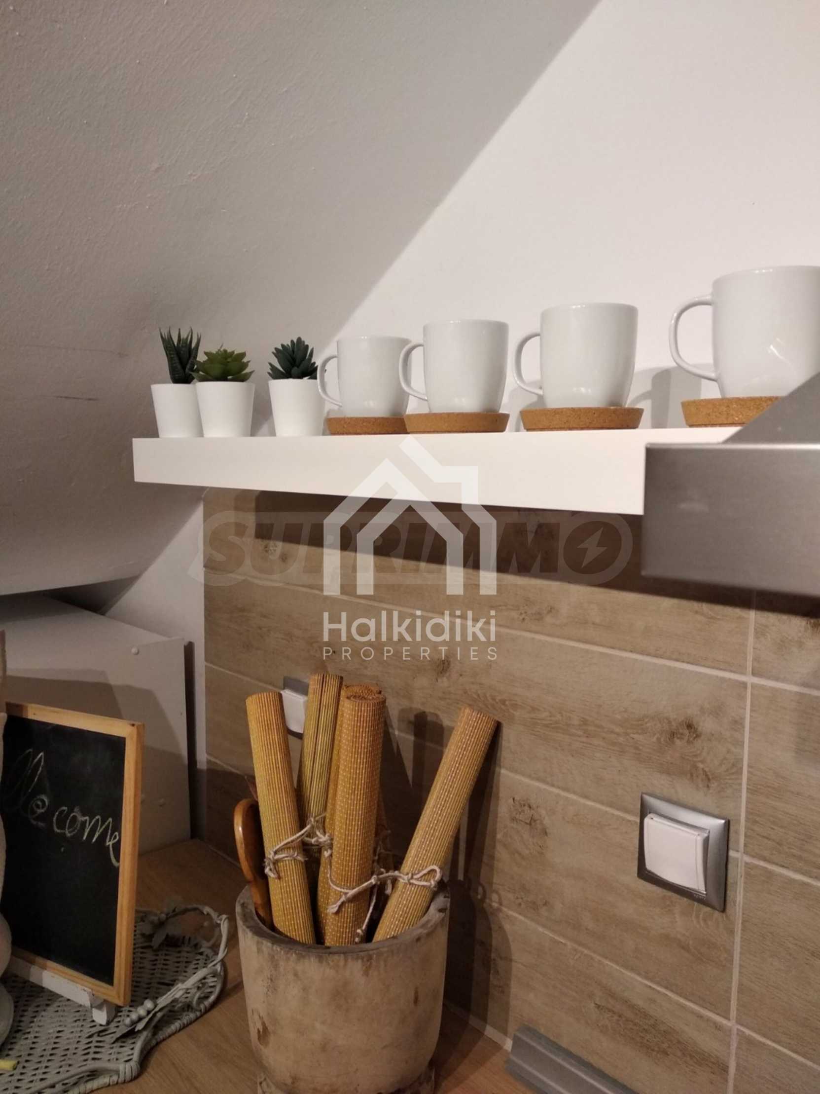Красив мезонет на пешеходно разстояние от морето, на много красиво място в Ситония, в малкия рай на Халкидики. Имотът е разположен на площ от 552.68 кв.м. , с изключителна морска панорама, на 1.6 .км от центъра на селото Състои се от 2 нива с общо 150 кв.м. жилищна площ. Имотът включва 3 спални, склад и 2 бани