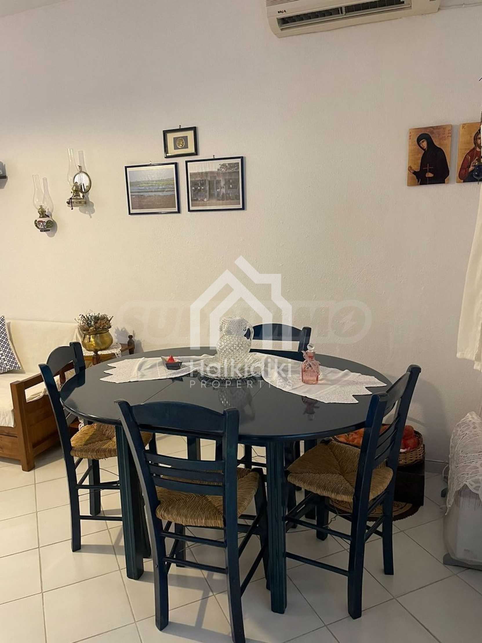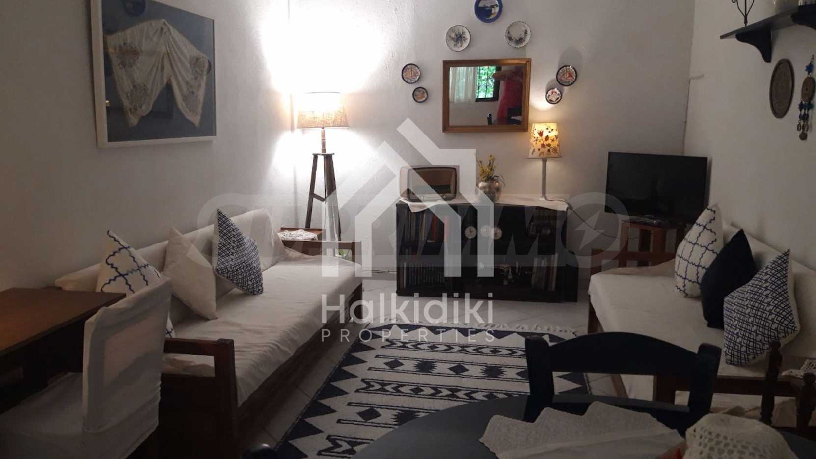 Уникален апартамент на забележително място в Касандра, в сърцето на Халкидики. Имотът е разположен на площ от 63.21 кв.м. на 500 .м от центъра на селото Състои се от 1 нива с общо 60 кв.м. жилищна площ. Имотът включва 2 спални и 1 бани