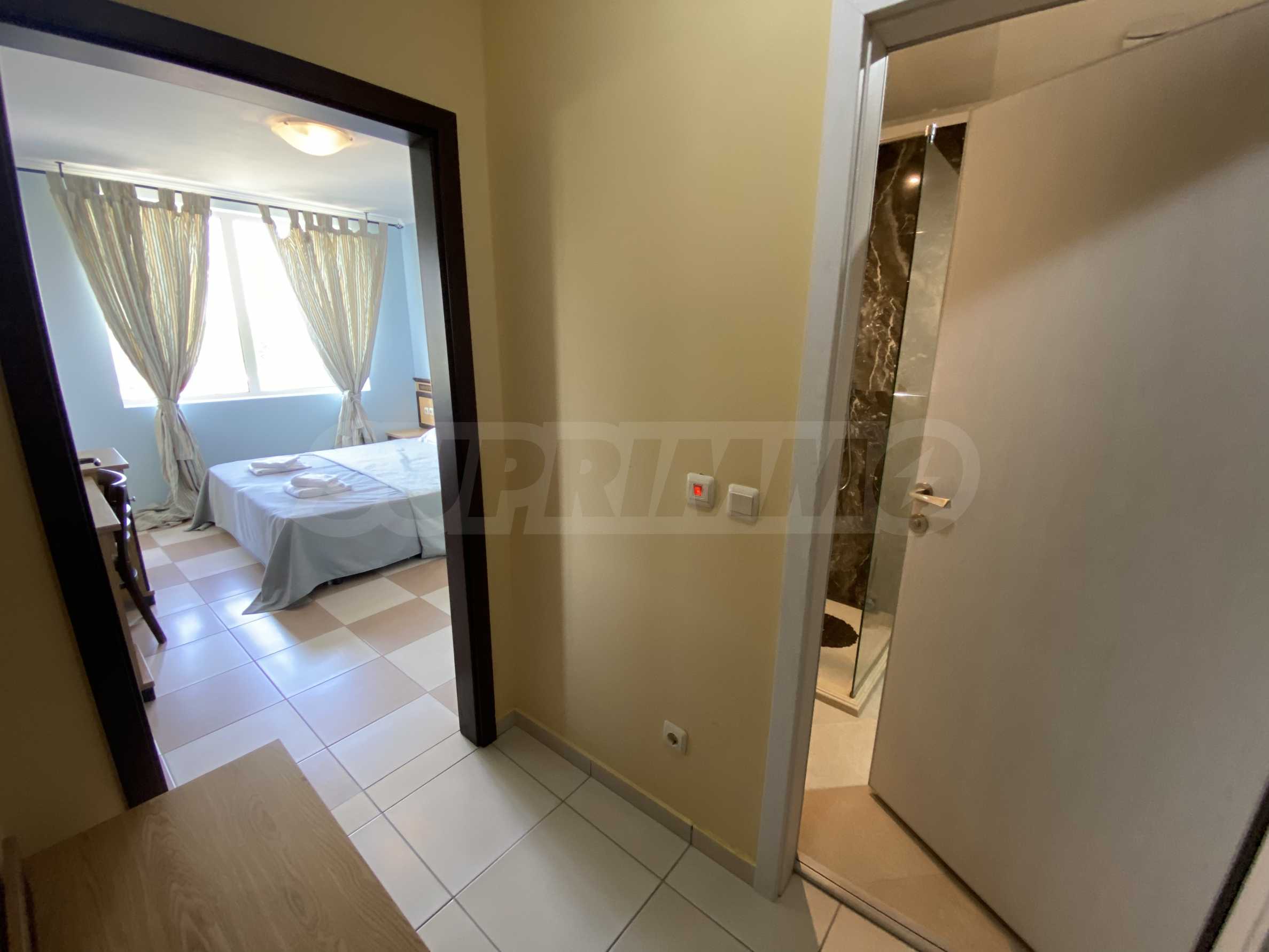 Апартаментът се продава с мебели и техника, интериорът е подбран в светли тонове, има нова кухня и климатици в двете стаи, спалнята е решена в хотелски стил. Подходящ вариант е както за лично ползване, така и за инвестиция.