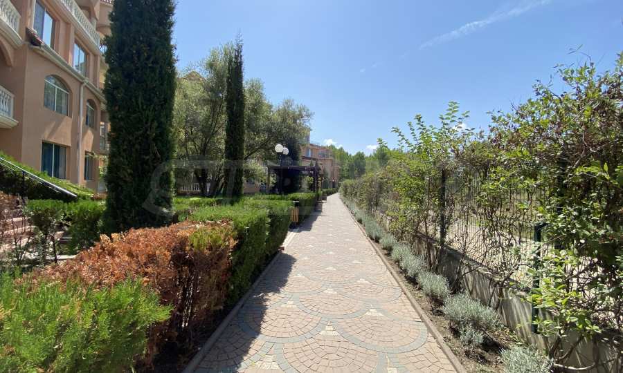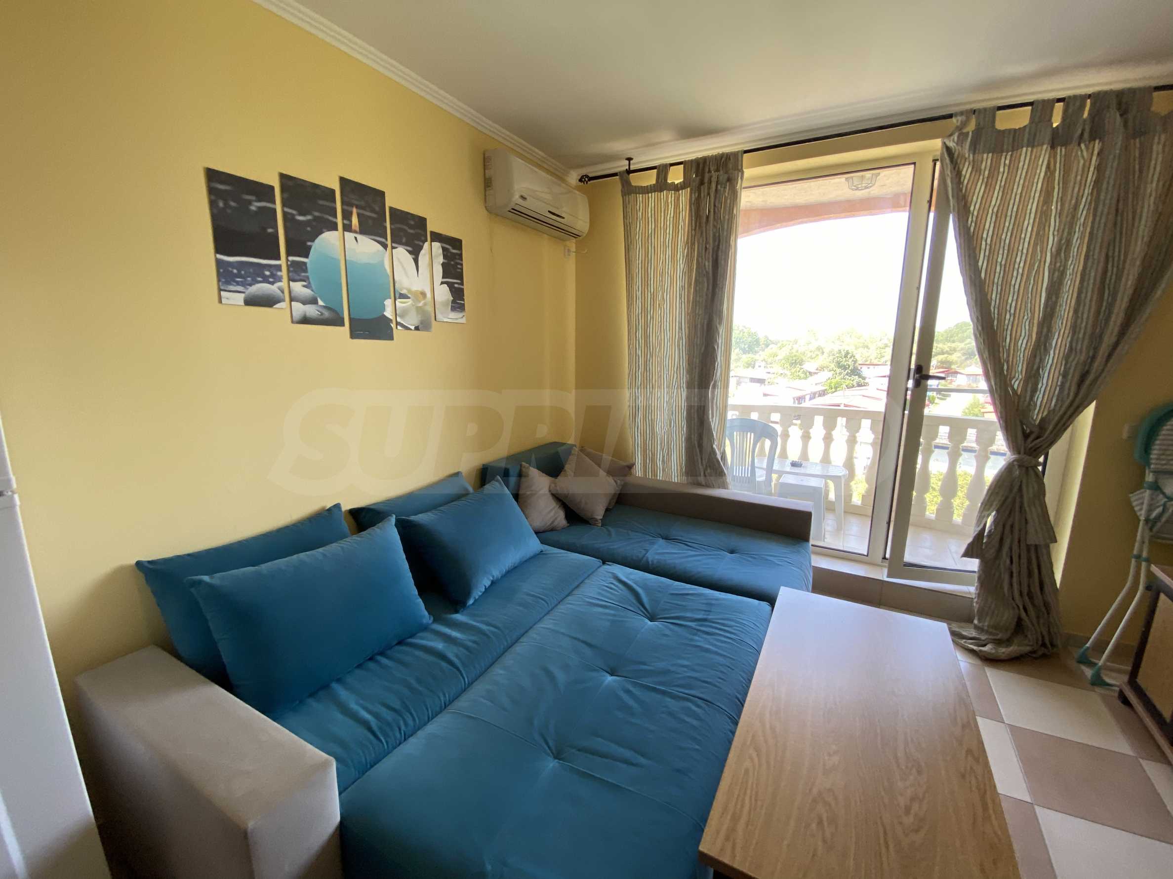Имотът е разположен на 3-ти етаж и има странична морска панорама. Част е от елитен комплекс с удобства, разположен непосредствено до залива и плажа "Златна рибка", р-н Градина, с удобен достъп от главния път Бургас-Созопол. До Созопол е само 5 мин с автомобил.